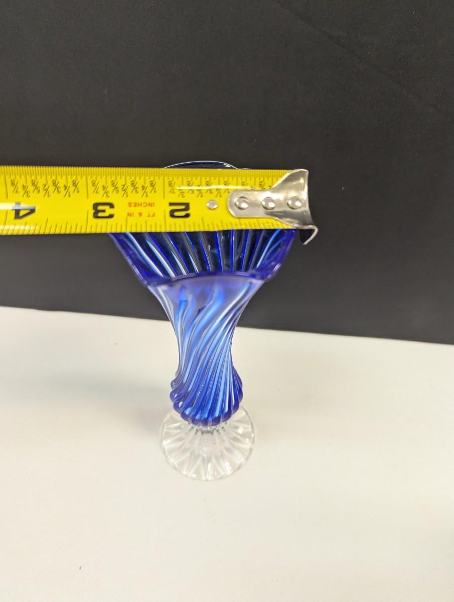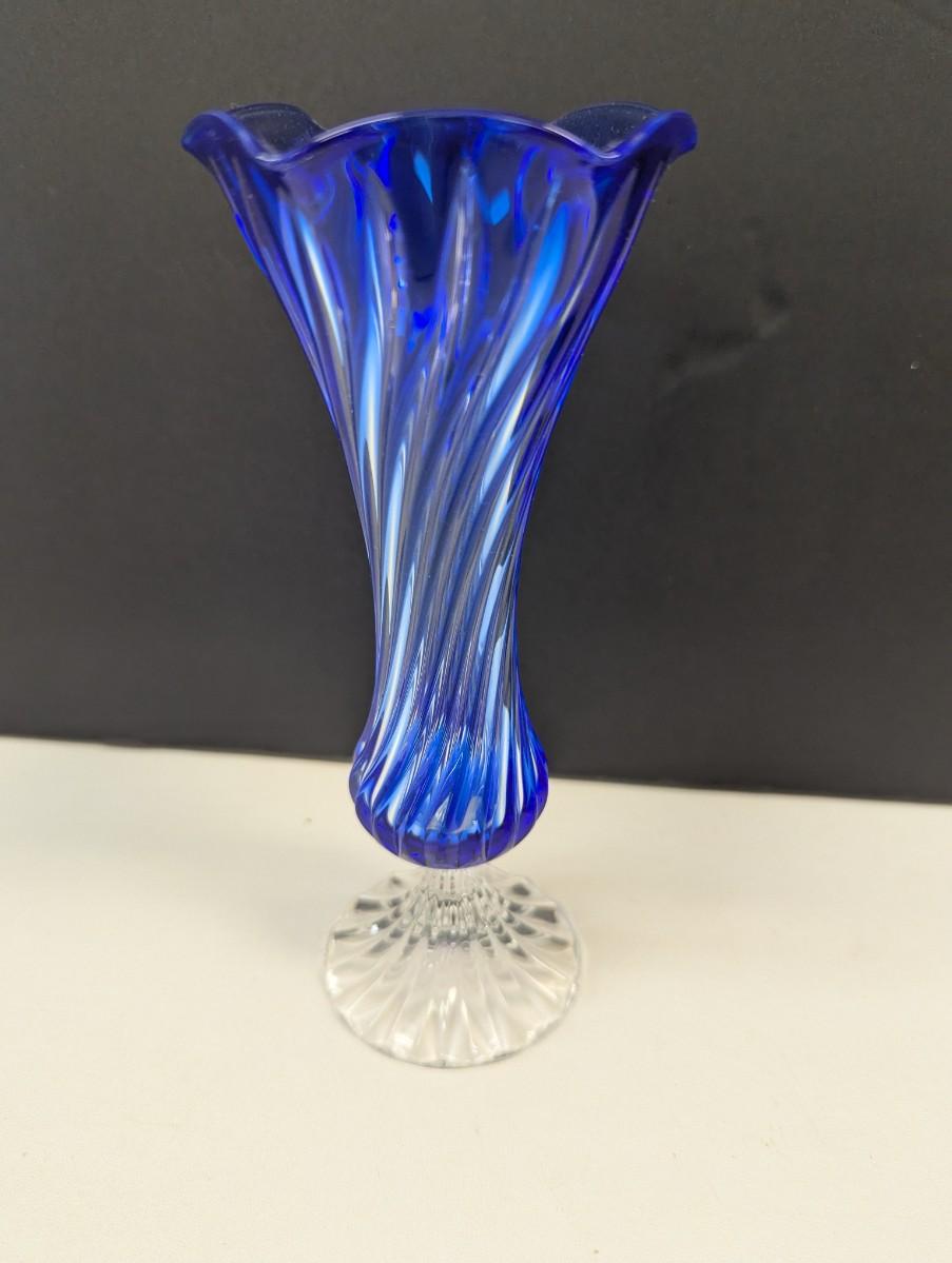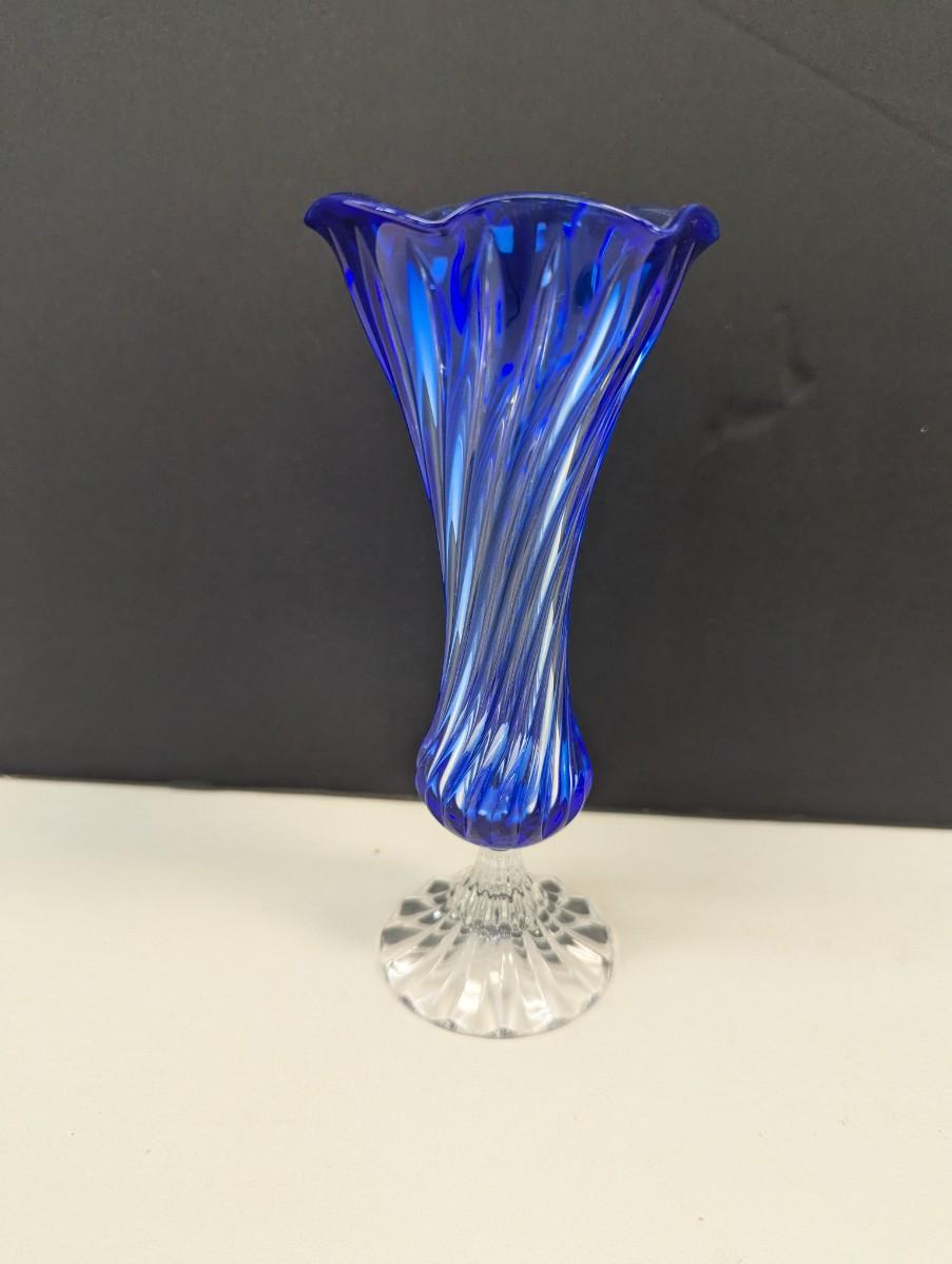 Cristal D'Arques Crystal Cobalt Blue Cut To Clear Pedestal Vase Swirl Pattern