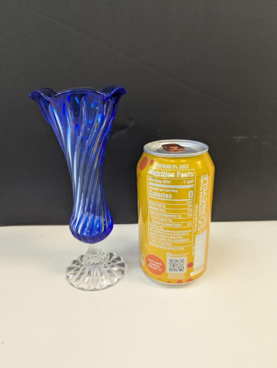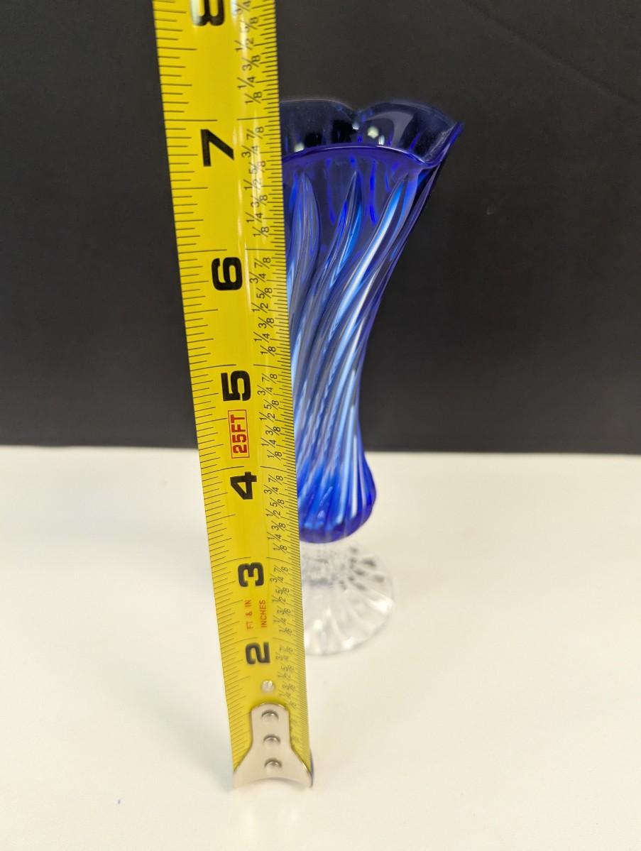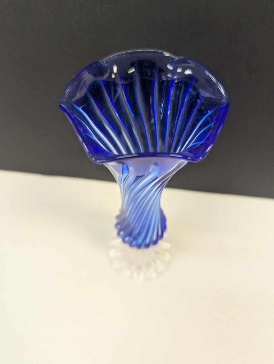 Cristal D'Arques Crystal Cobalt Blue Cut To Clear Pedestal Vase Swirl Pattern