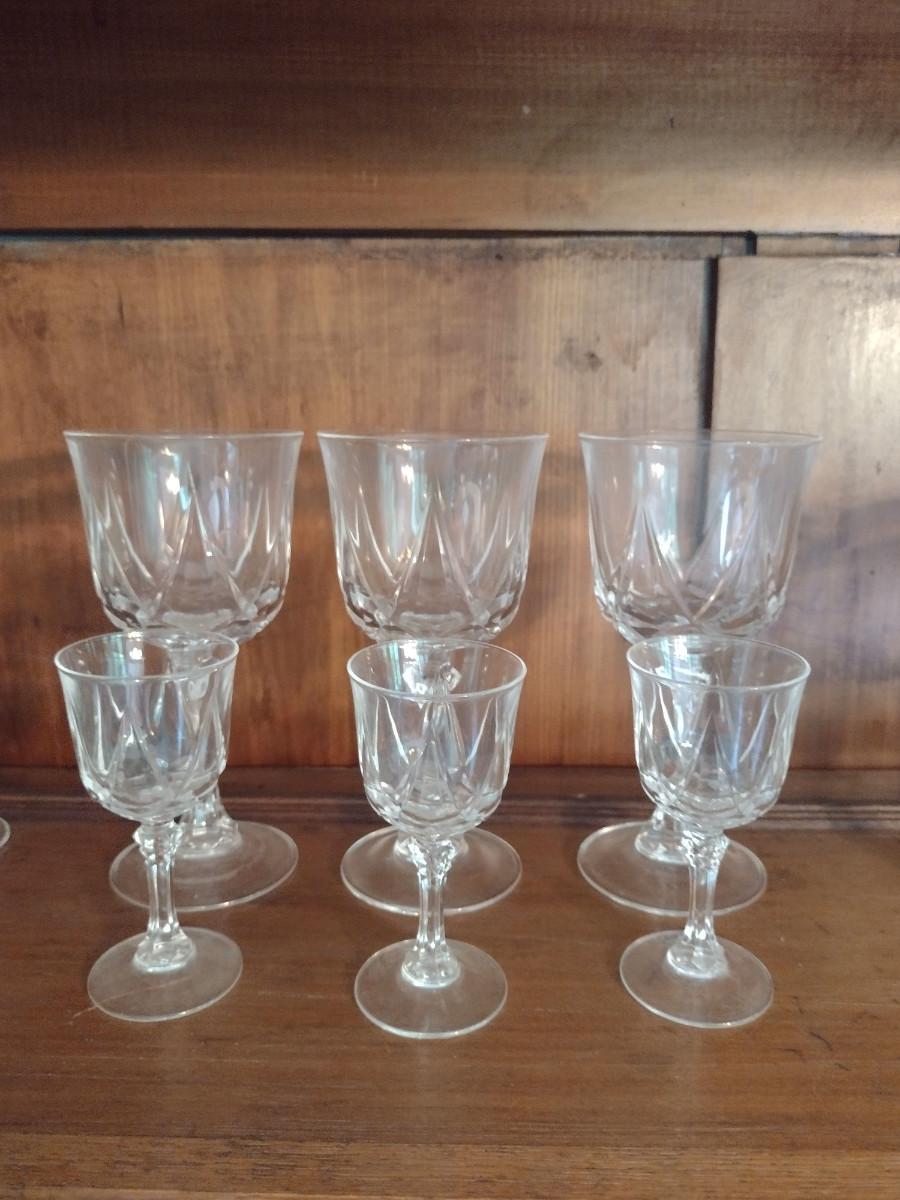 Cristal D'Arques Durand Water Goblets and Cordial Glasses- Auteuil Pattern- 3 of Each