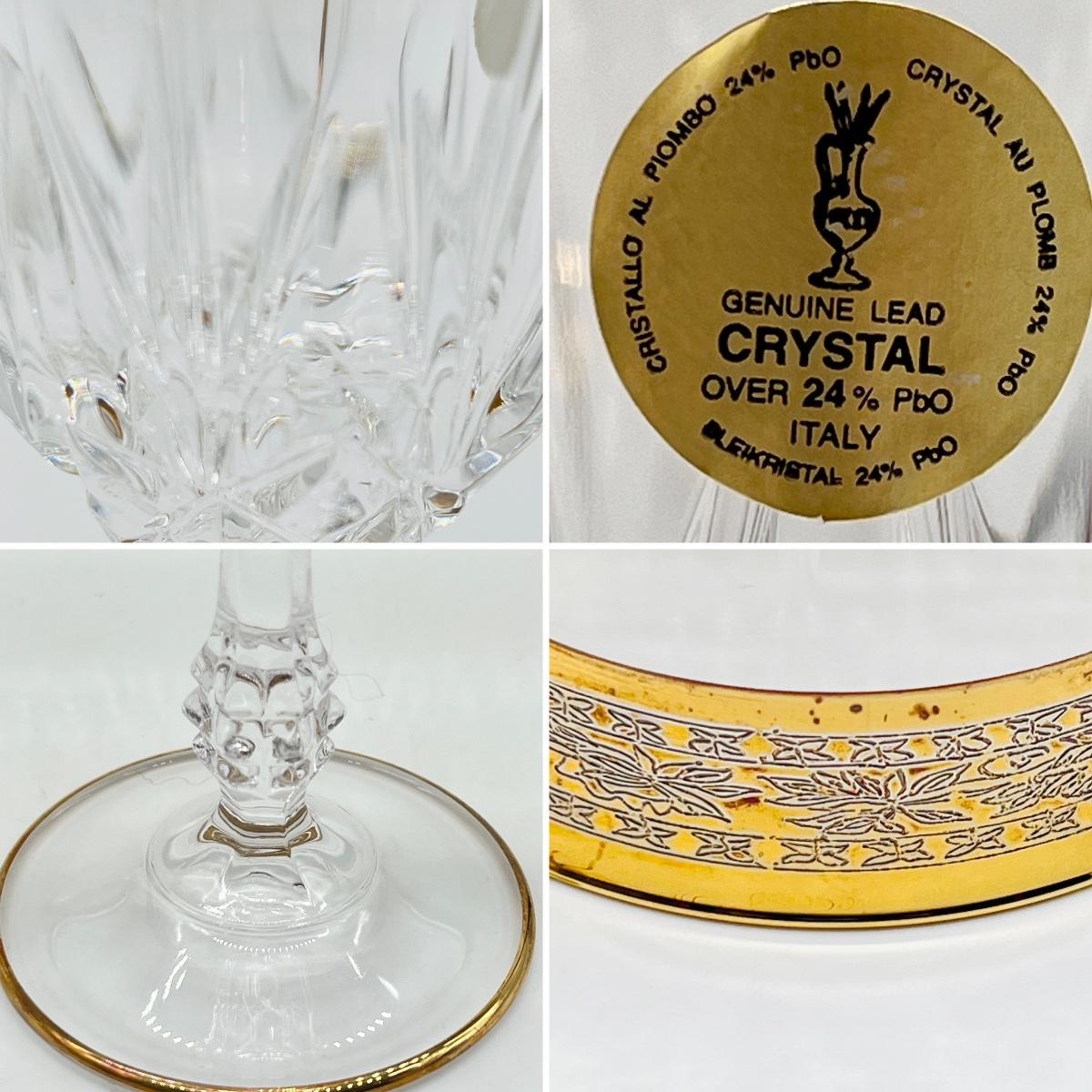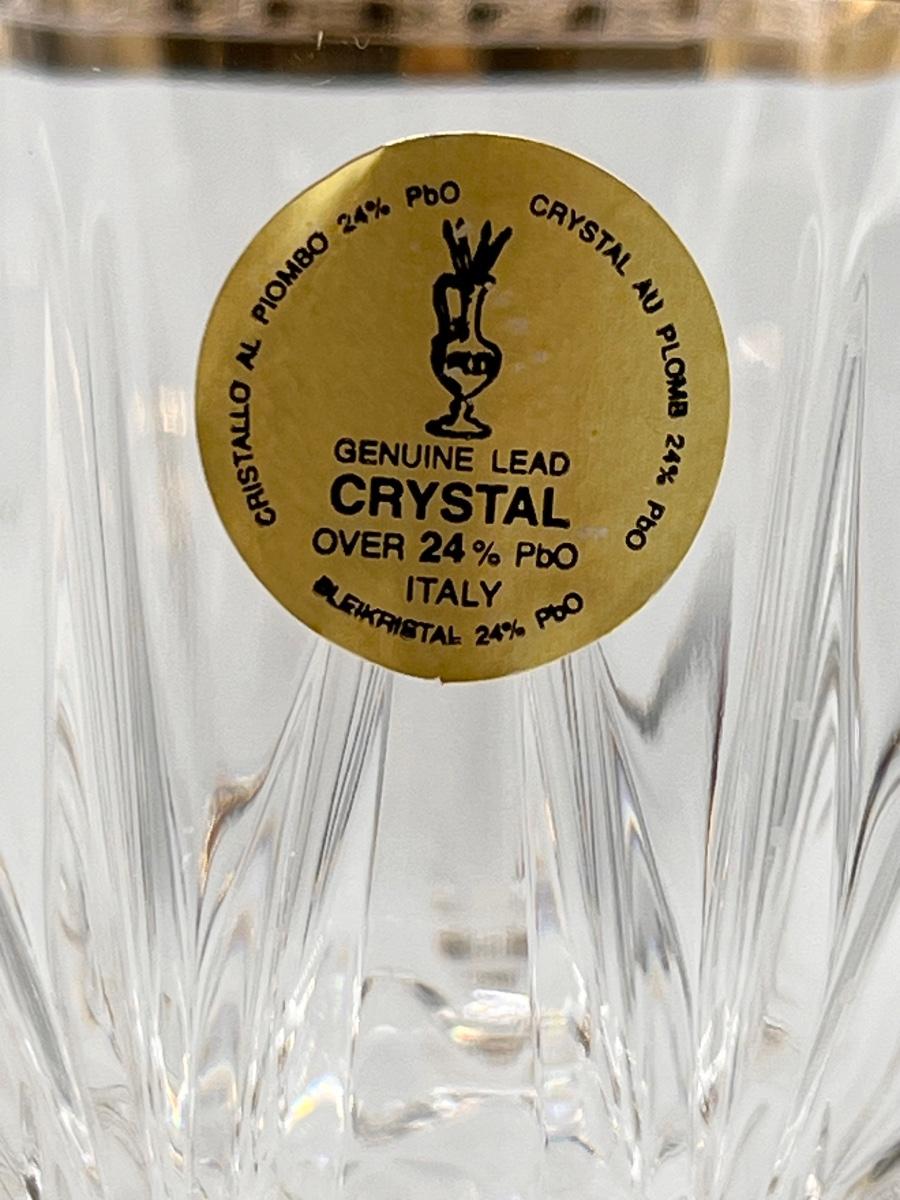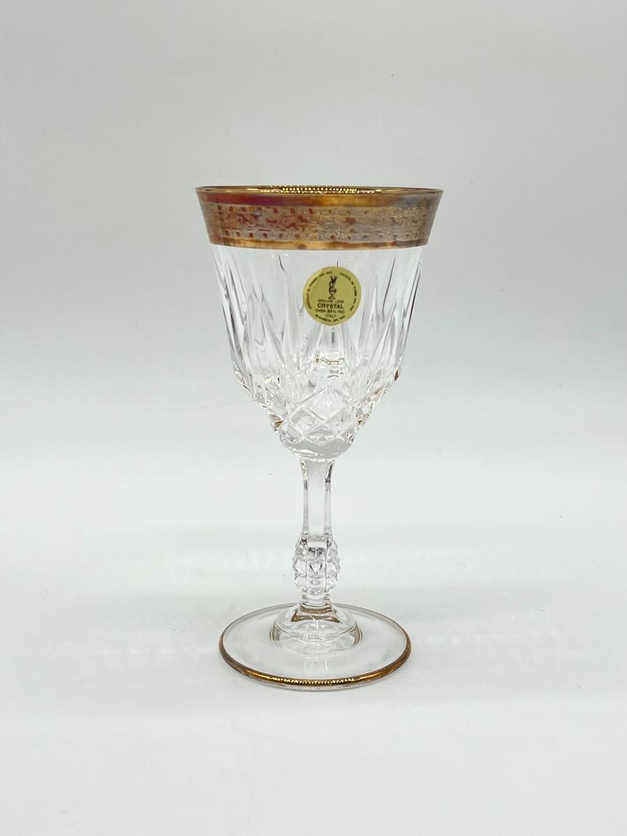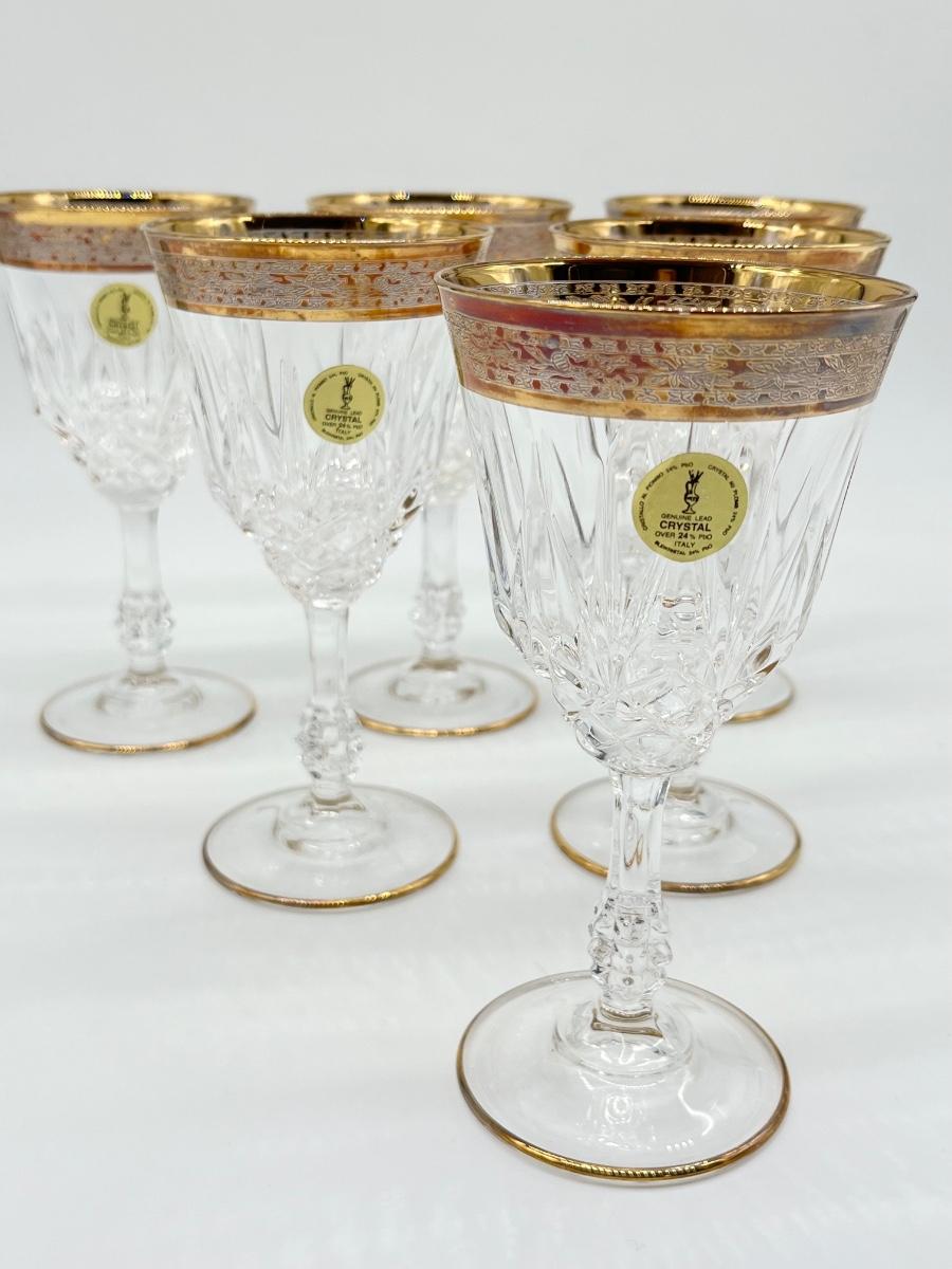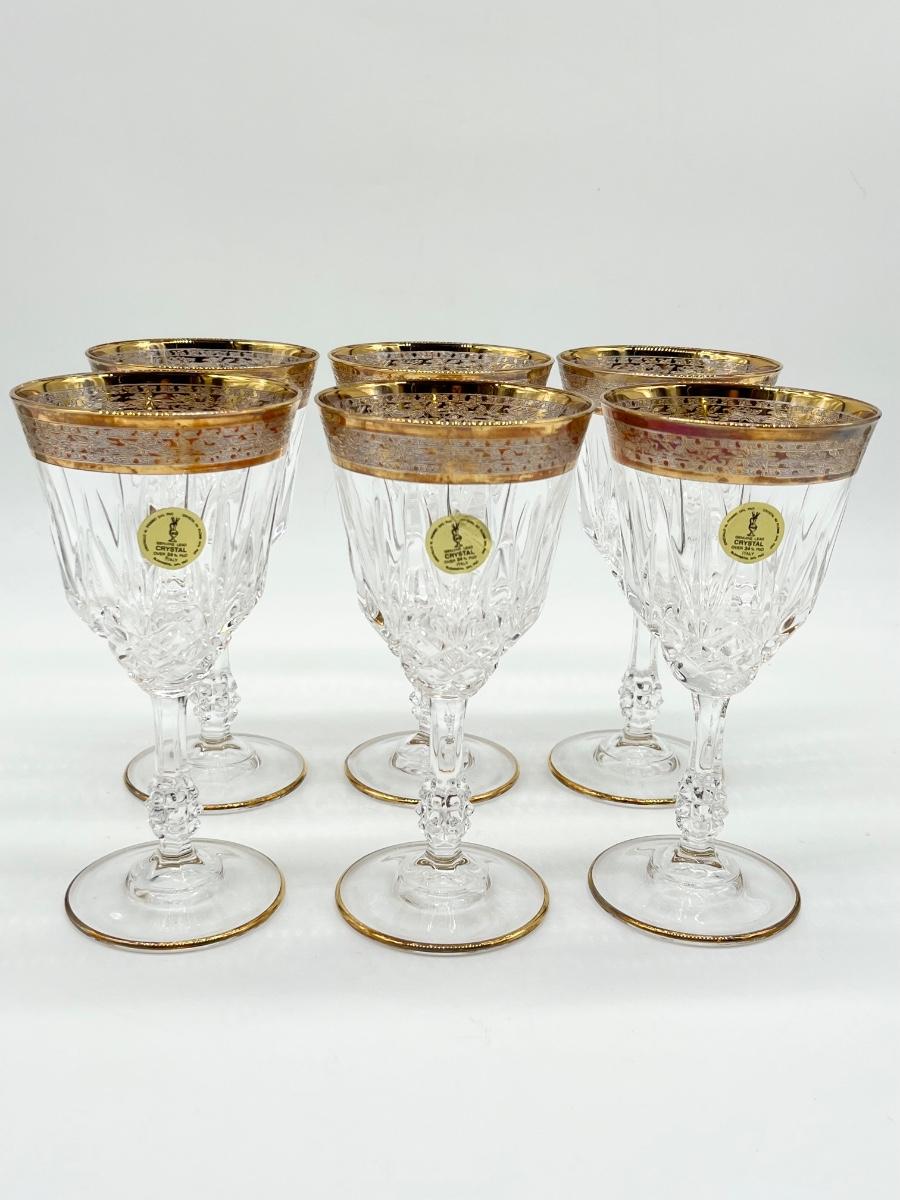CRISTALLO AL PIOMBO ~ Set Of Six (6) ~ Genuine Lead Crystal Gold Rim Wine Glasses