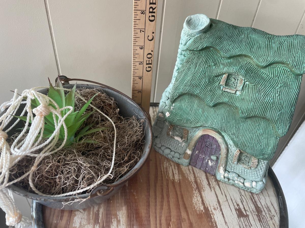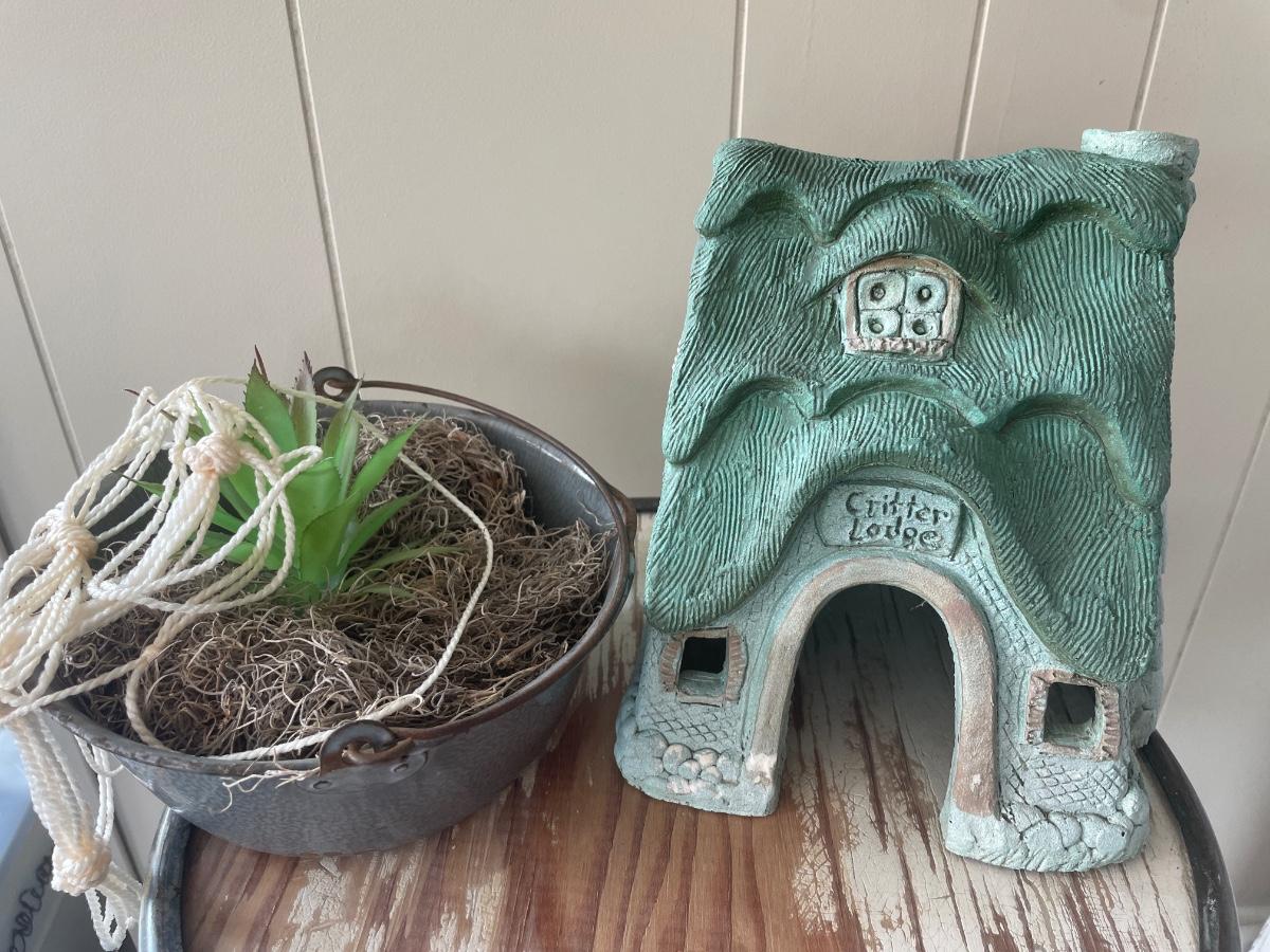 Critter lodge garden decor and faux succulent