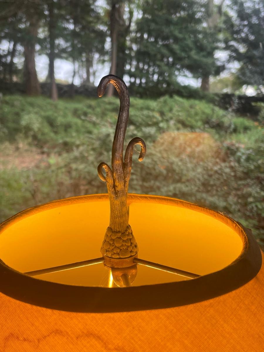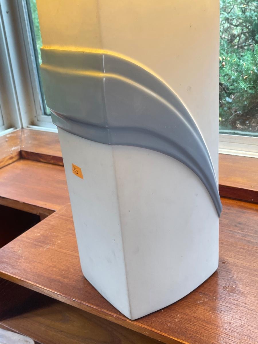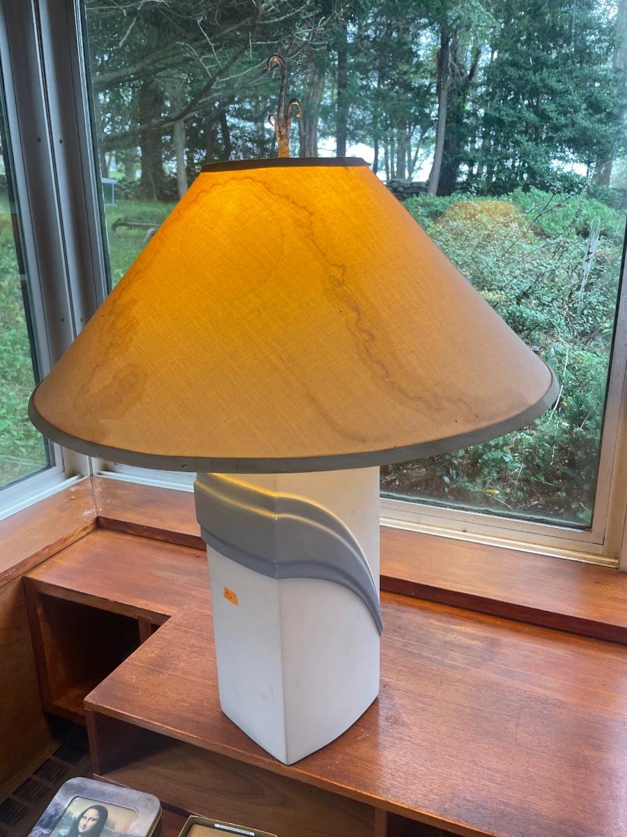 Crème & Blue Gray Lamp with Altimira Finnial - there is another one just like this in a later lot. Needs new shade.
