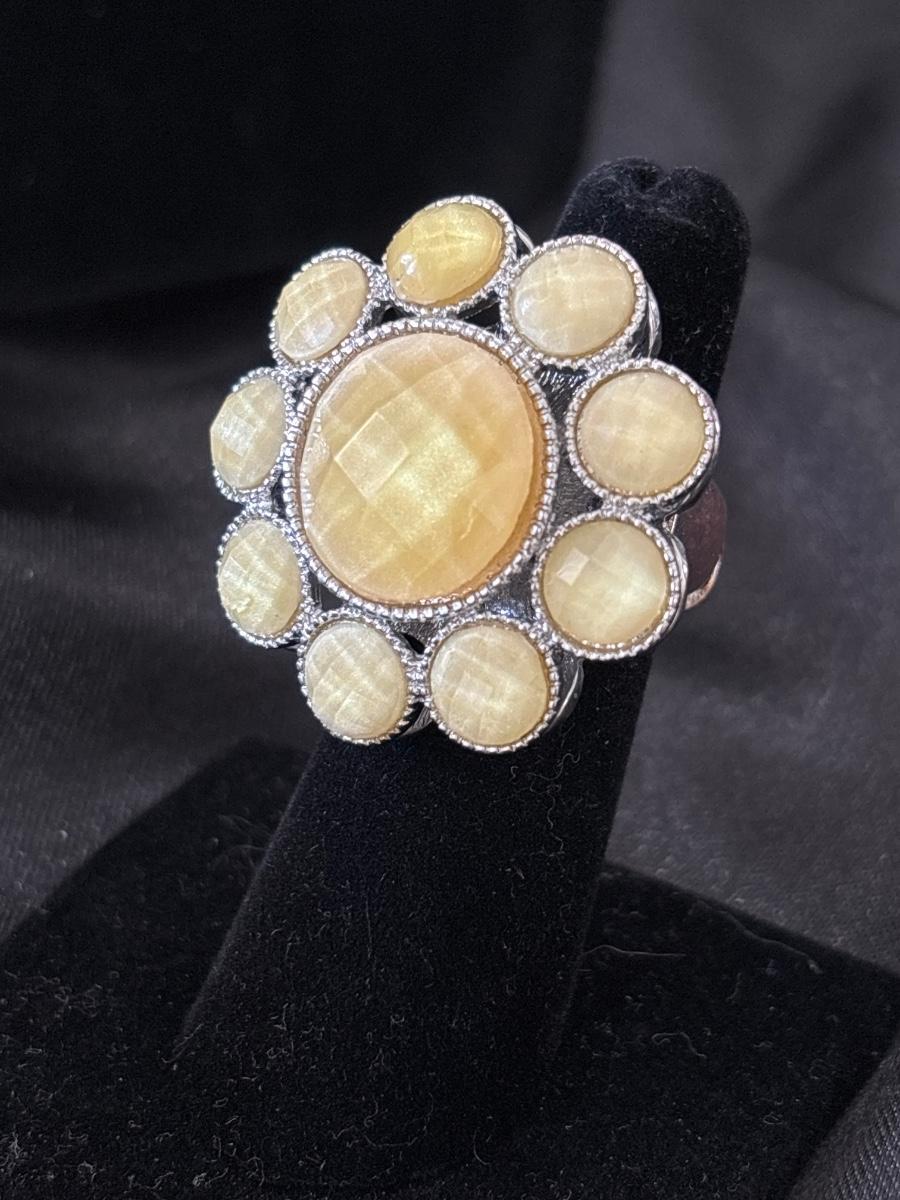 Crème colored flower adjustable costume ring