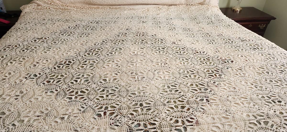 Crochet King Size Bed Cover 1, Minor pull damage in places.