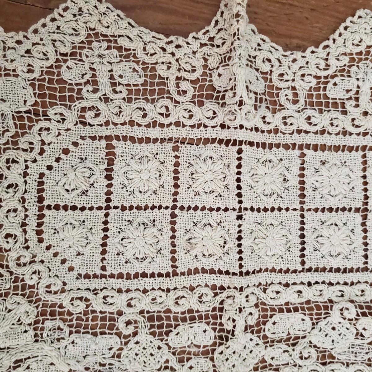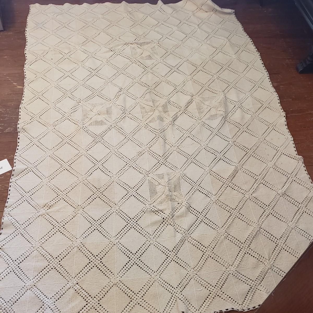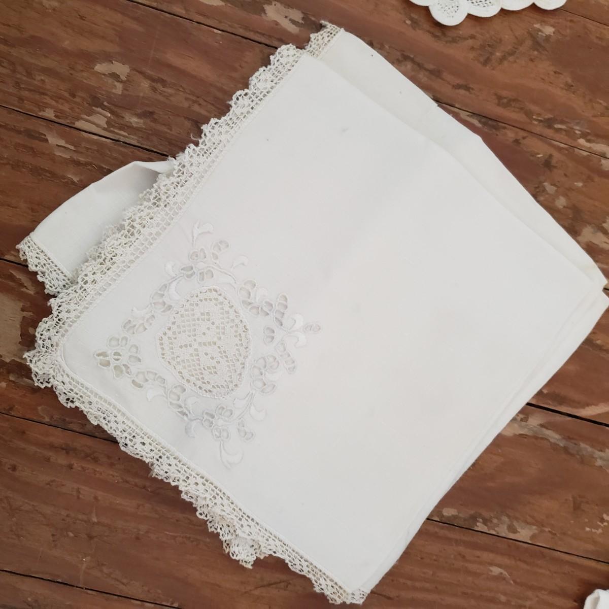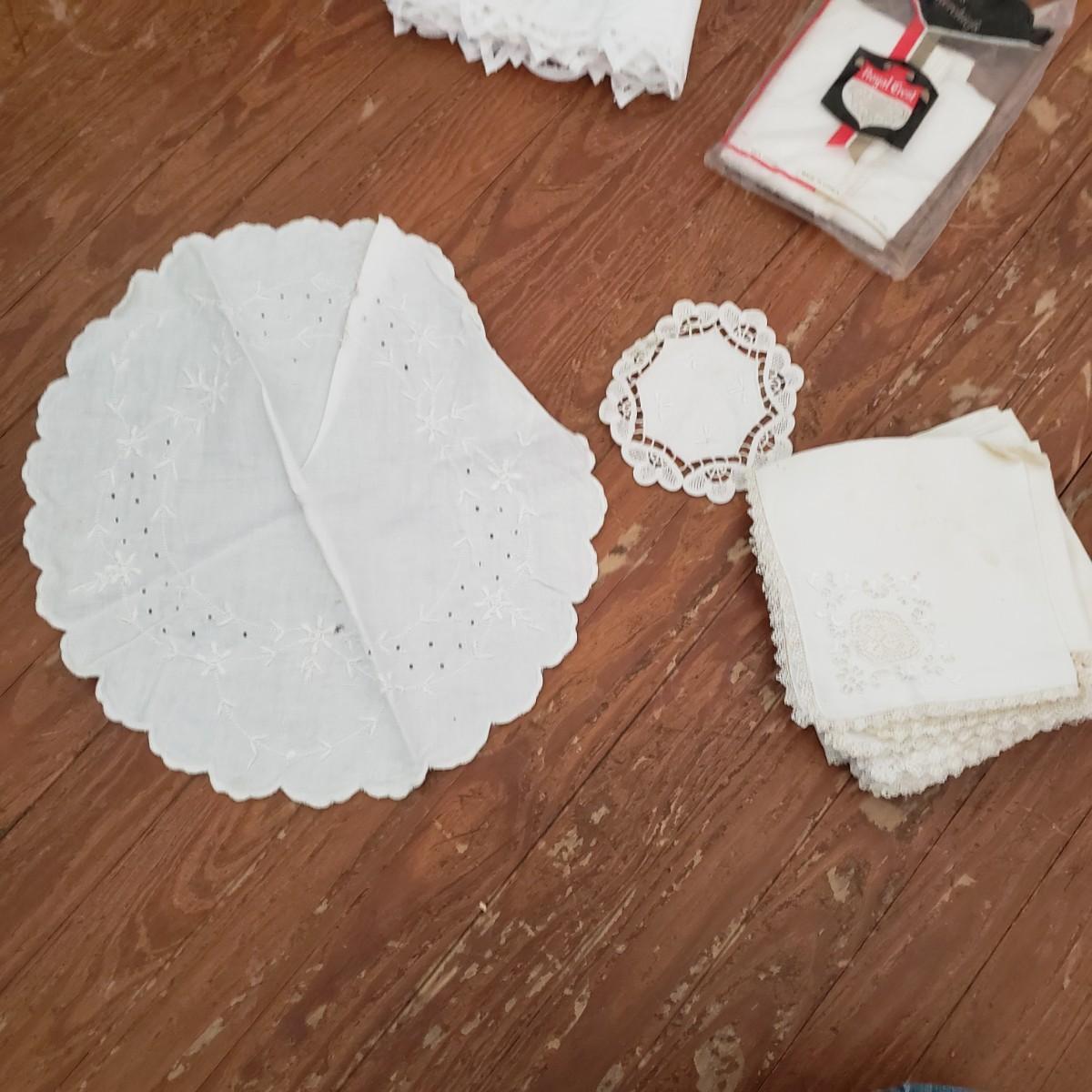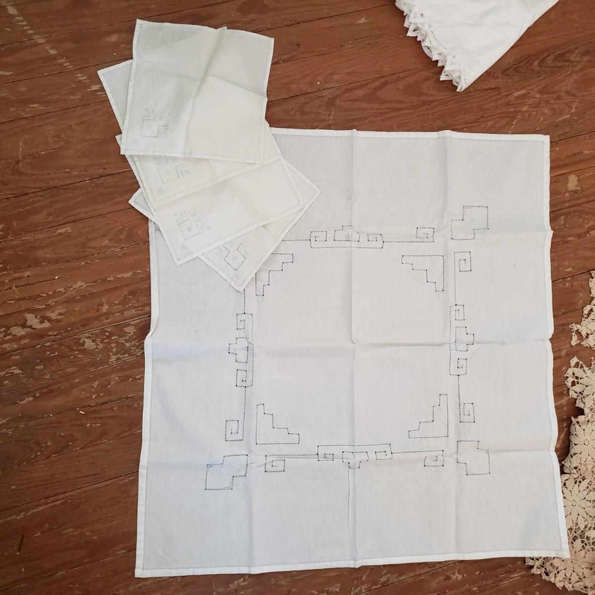 This vintage linen lot has such sweet pieces to adorn your home! The white runner with colorful embroidery measures 35" x 15". The white circular battenburg table cloth measures 68". There are multiple runners and square table cloths with matching napkins. The rectangular all floral crocheted table cloth measures 53" x 38". Finally is the gorgeous twin sized (88" x 58") bed spread. It has edging around three sides and decorative five squares in the middle. Some overall wear due to age. Please see photos for details.