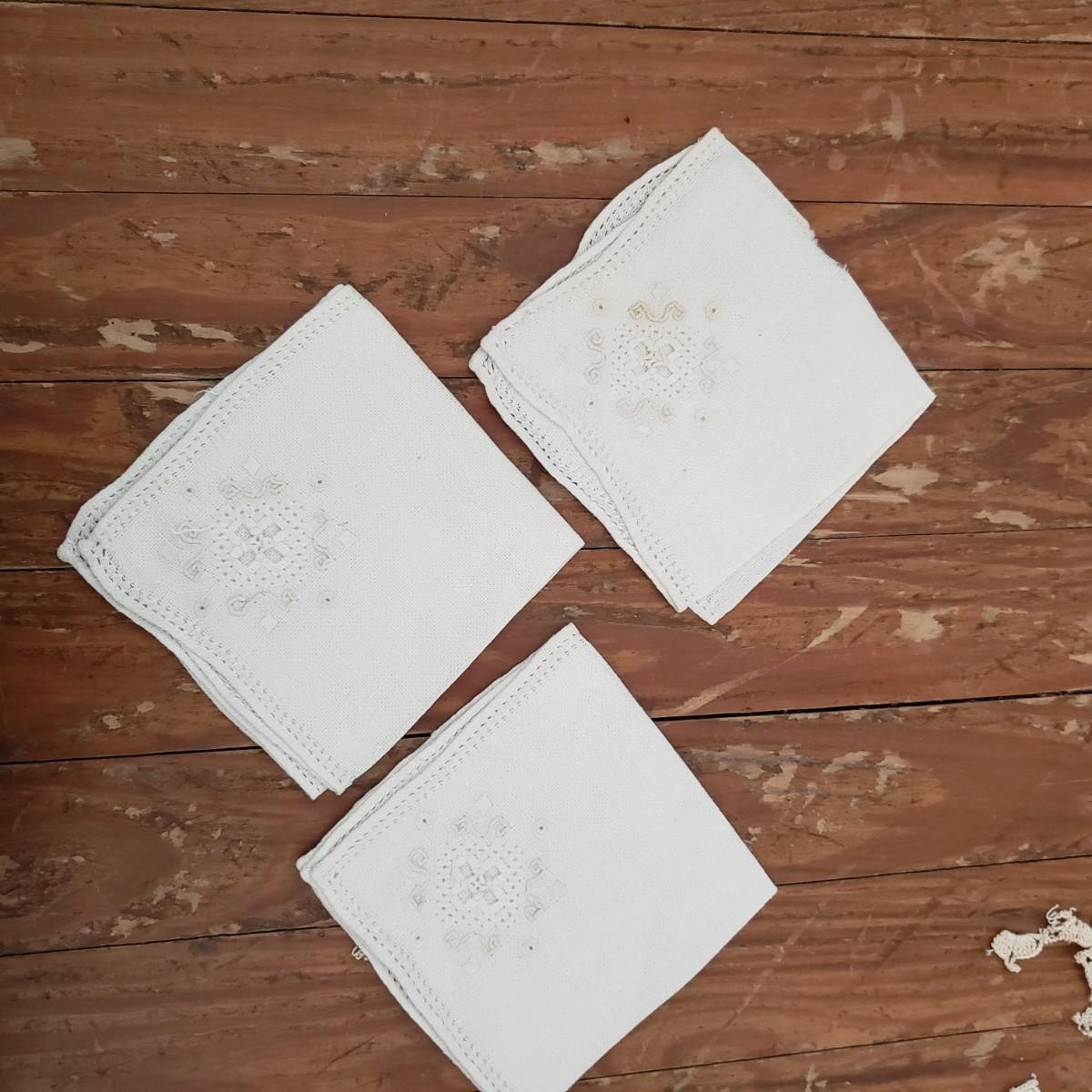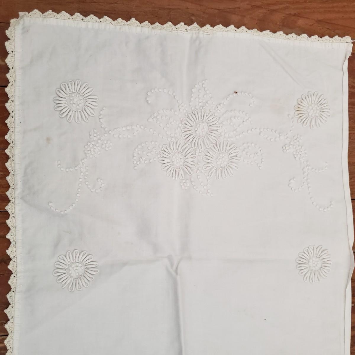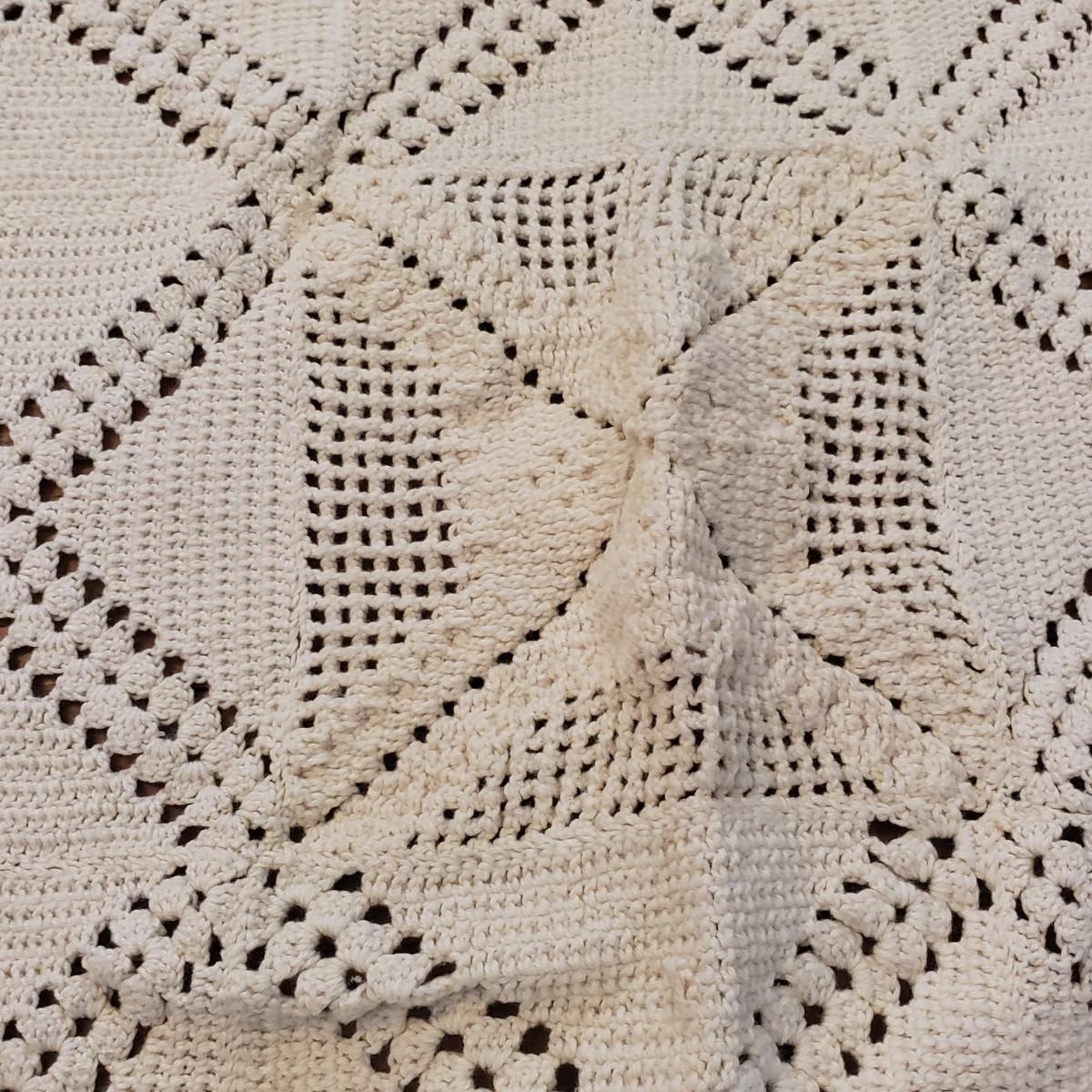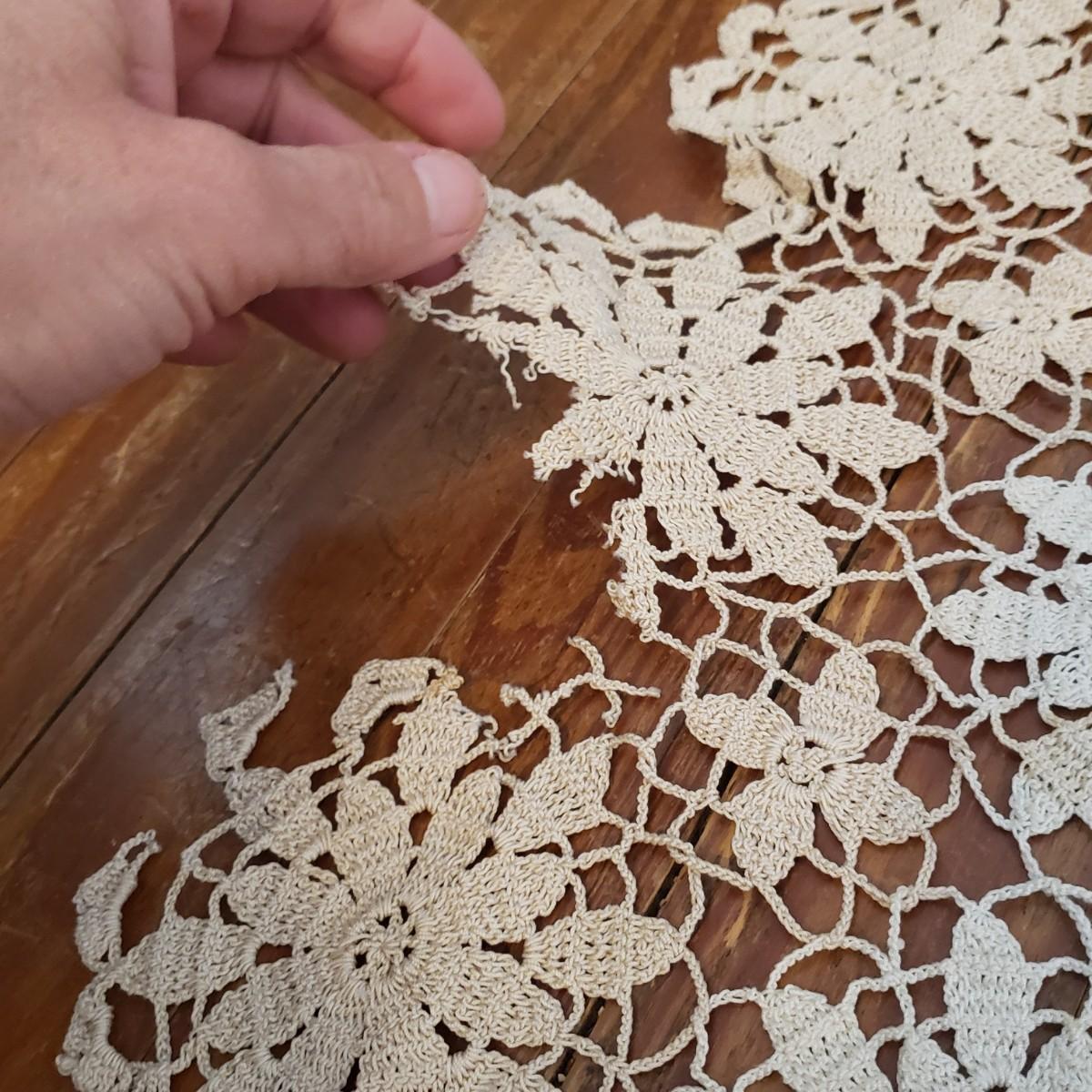 This vintage linen lot has such sweet pieces to adorn your home! The white runner with colorful embroidery measures 35" x 15". The white circular battenburg table cloth measures 68". There are multiple runners and square table cloths with matching napkins. The rectangular all floral crocheted table cloth measures 53" x 38". Finally is the gorgeous twin sized (88" x 58") bed spread. It has edging around three sides and decorative five squares in the middle. Some overall wear due to age. Please see photos for details.