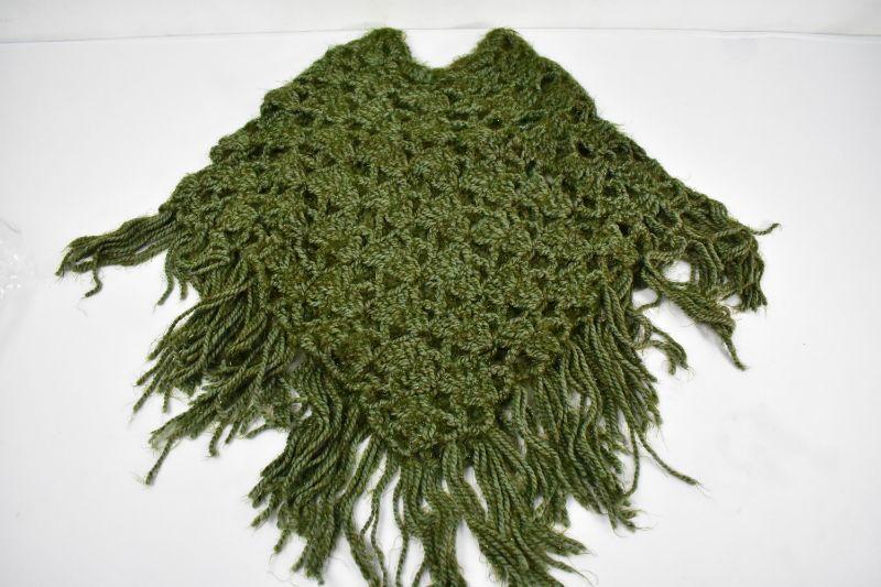 Crochet Poncho/Shawl, Green, Child Large/Adult Small - New