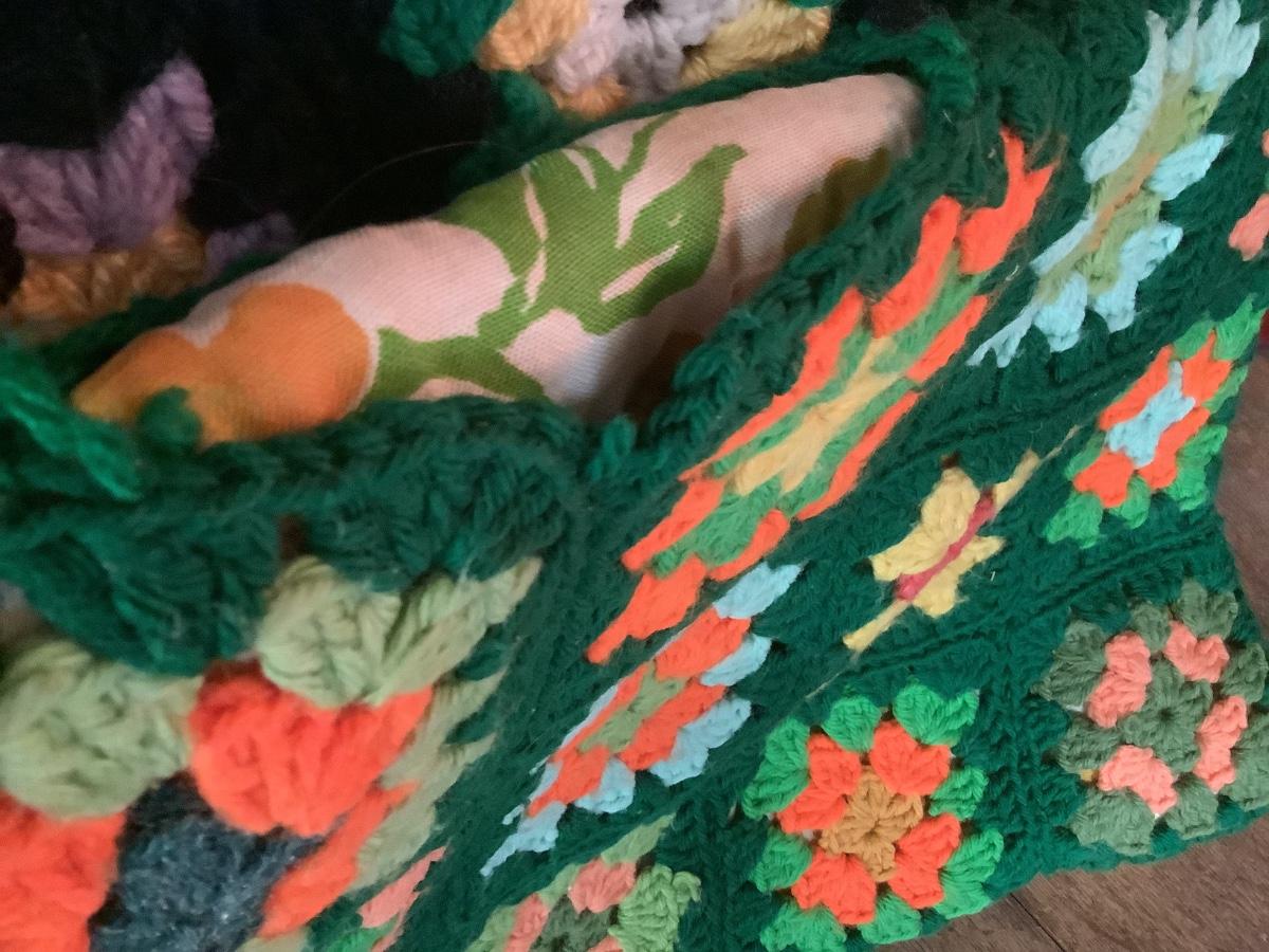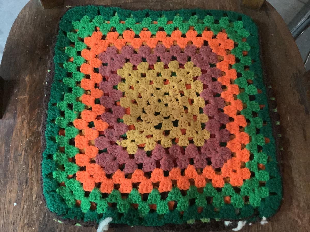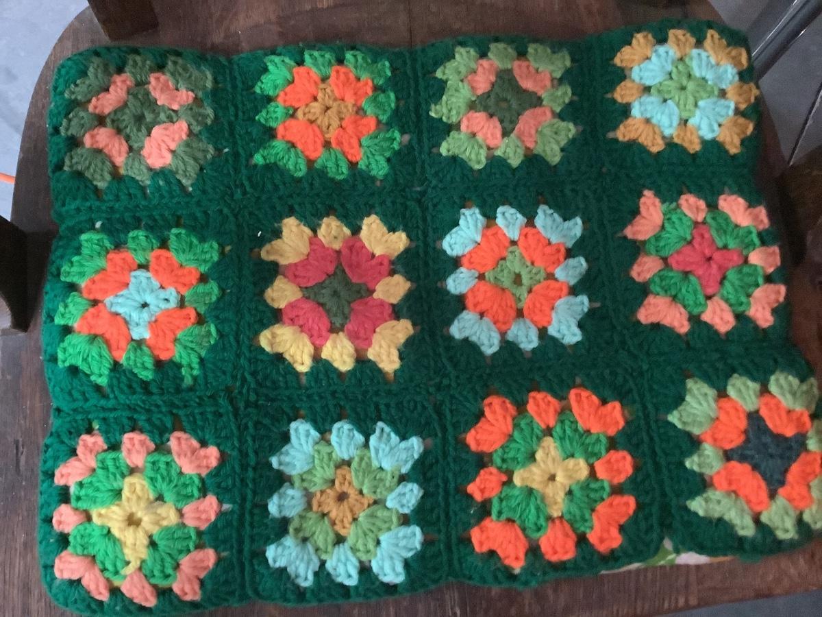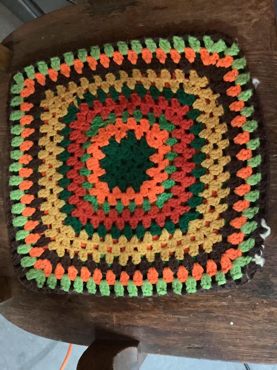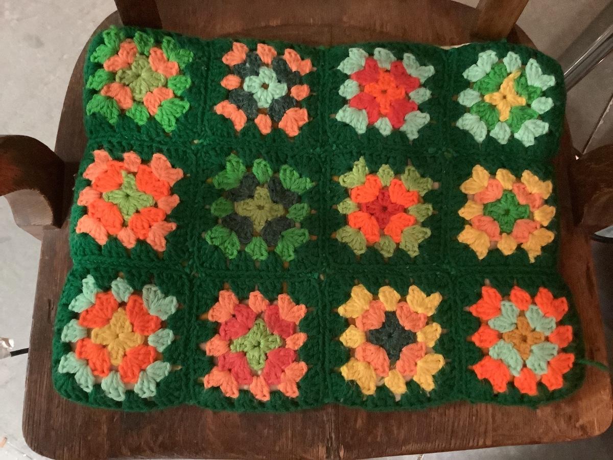 Crocheted Pillowcases -2. Green rectangular with pillow 18" x 14", square pillow cover brown and fall colors 14" x 14"