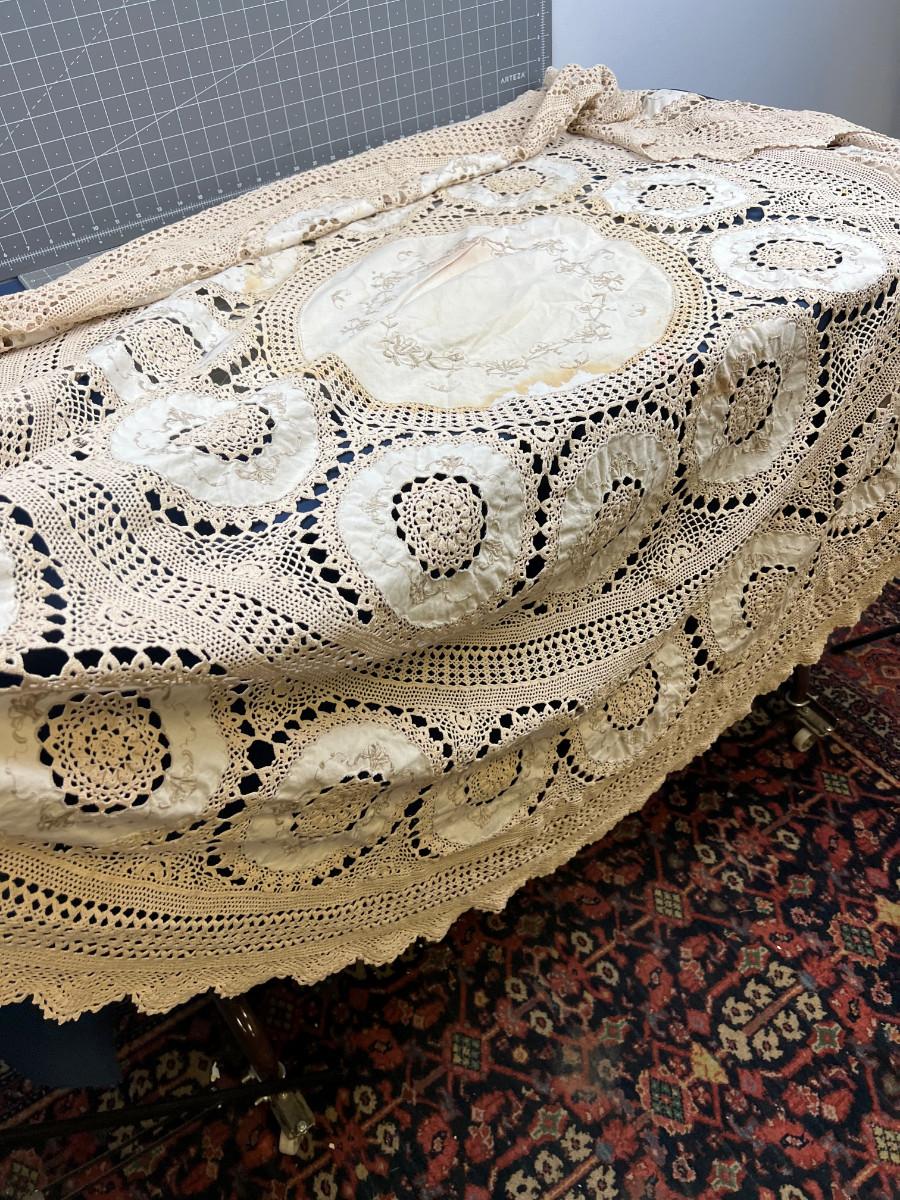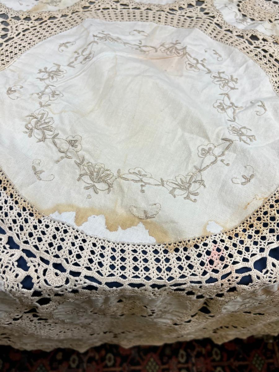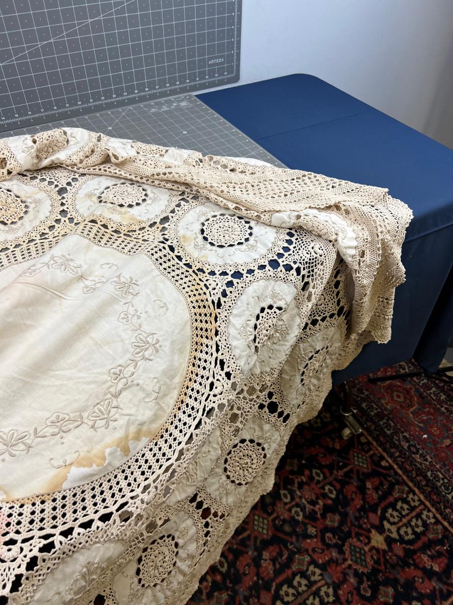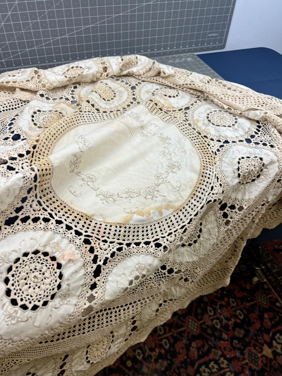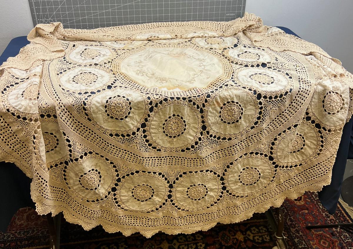 Has a stain. Incredible amount of Hand Work!! ART !!