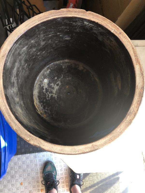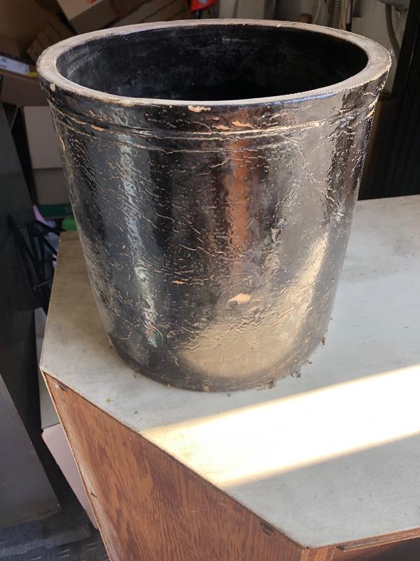 Large black painted crock. Weathered vintage condition.
