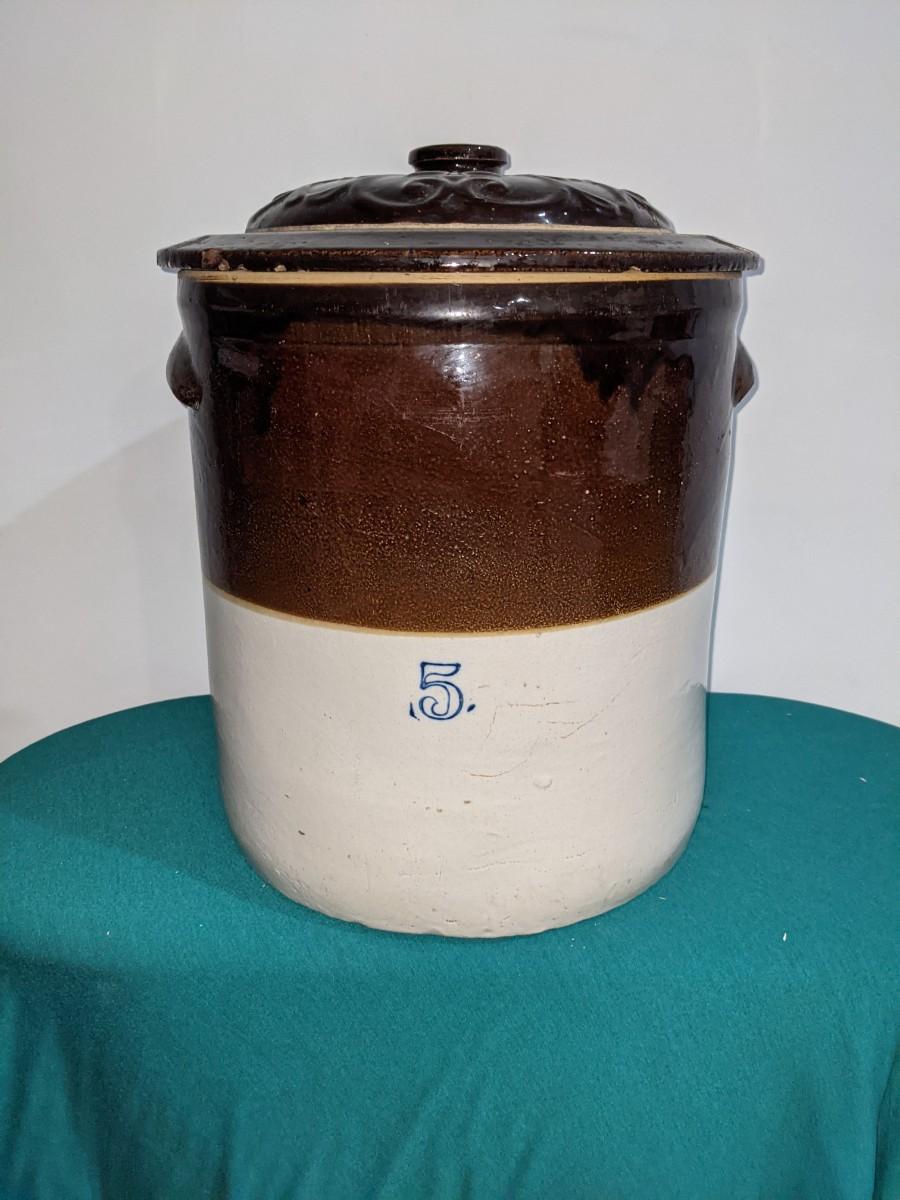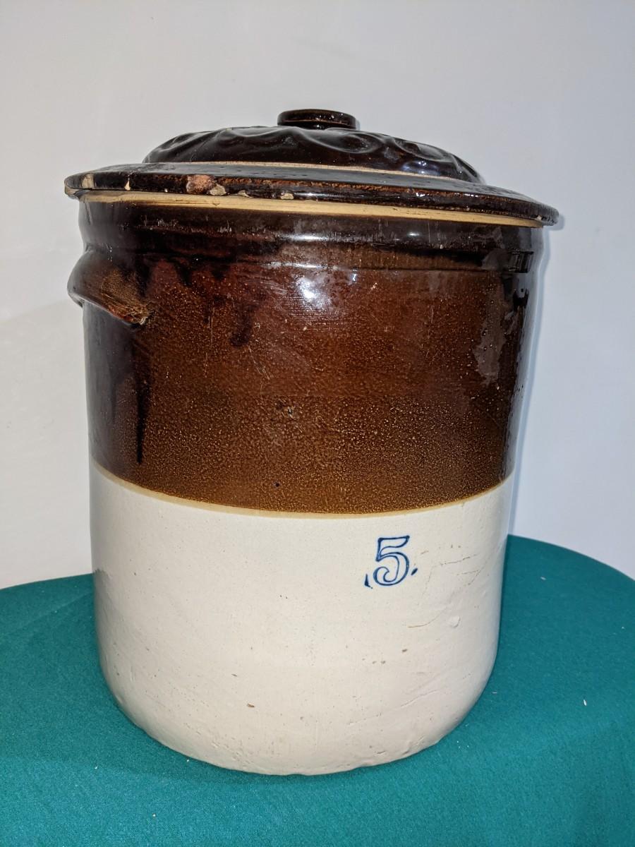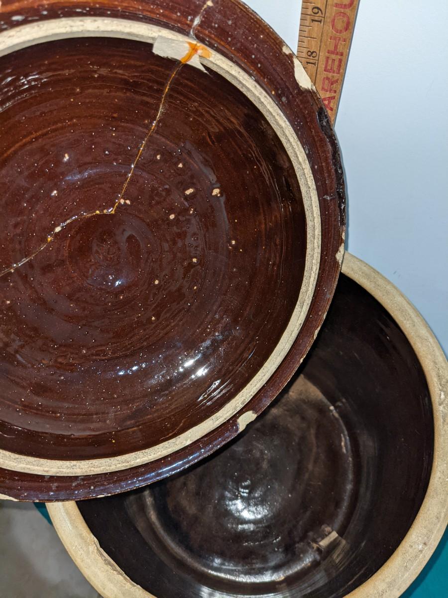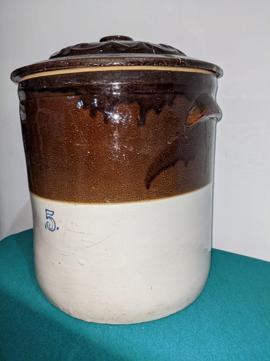 No cracks in the crock. The lid has been glued and repaired, as pictured.