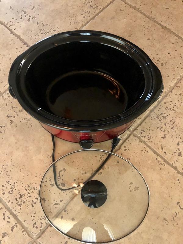 6-quart Crock Pot model SCV603-R, red with glass lid. Excellent, near-new condition.