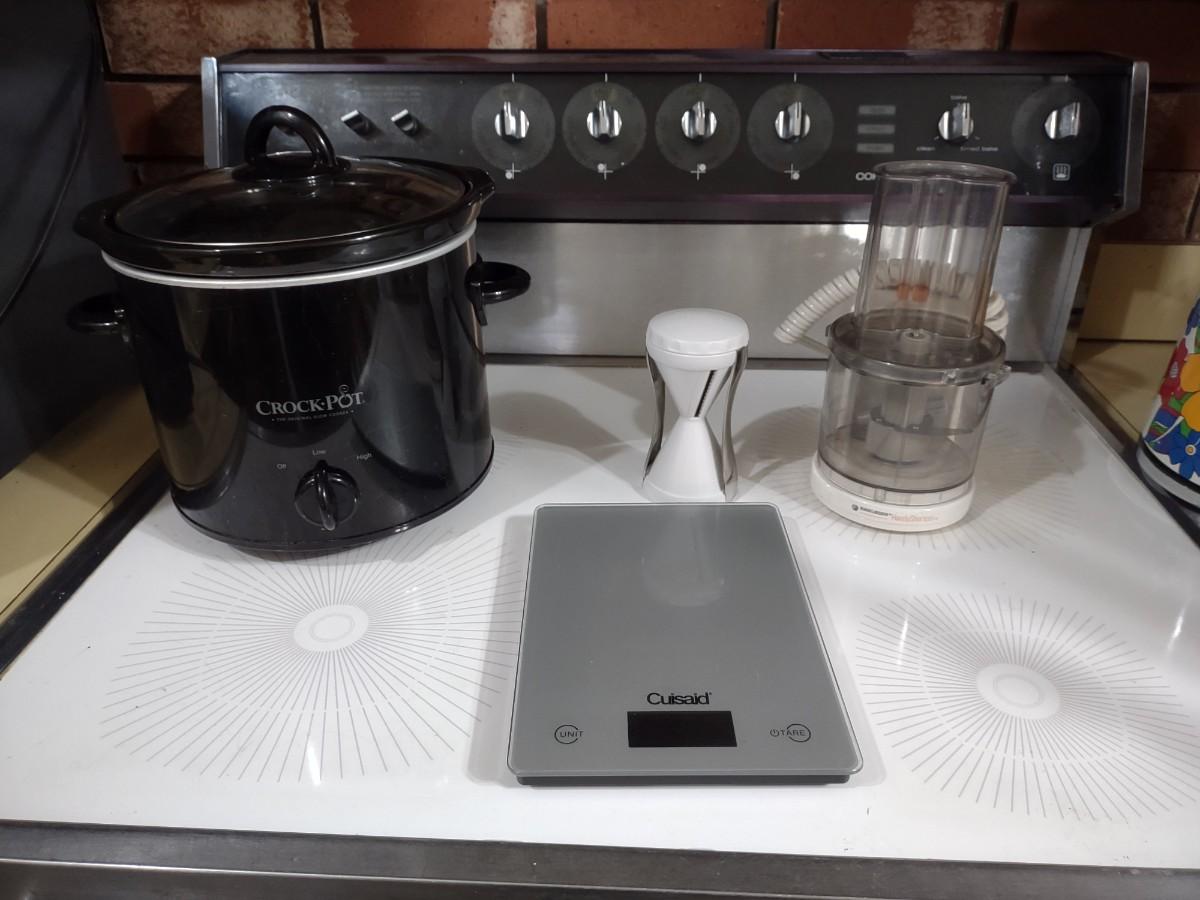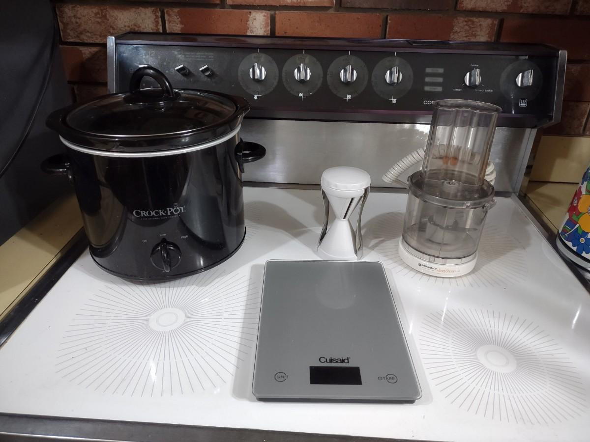 CROCK POT, KITCHEN SCALE, SLICER AND HANDY SHORTCUT ELECTRIC FOOD PROCESSOR