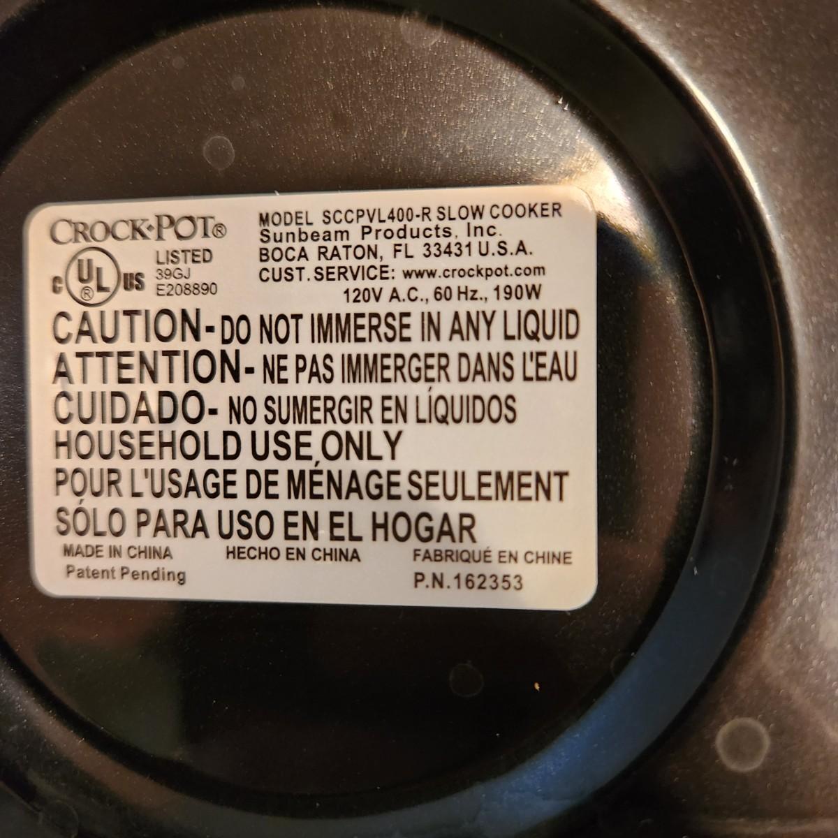 Crock Pot Slow Cooker SCCPVL400-R 4 qt.