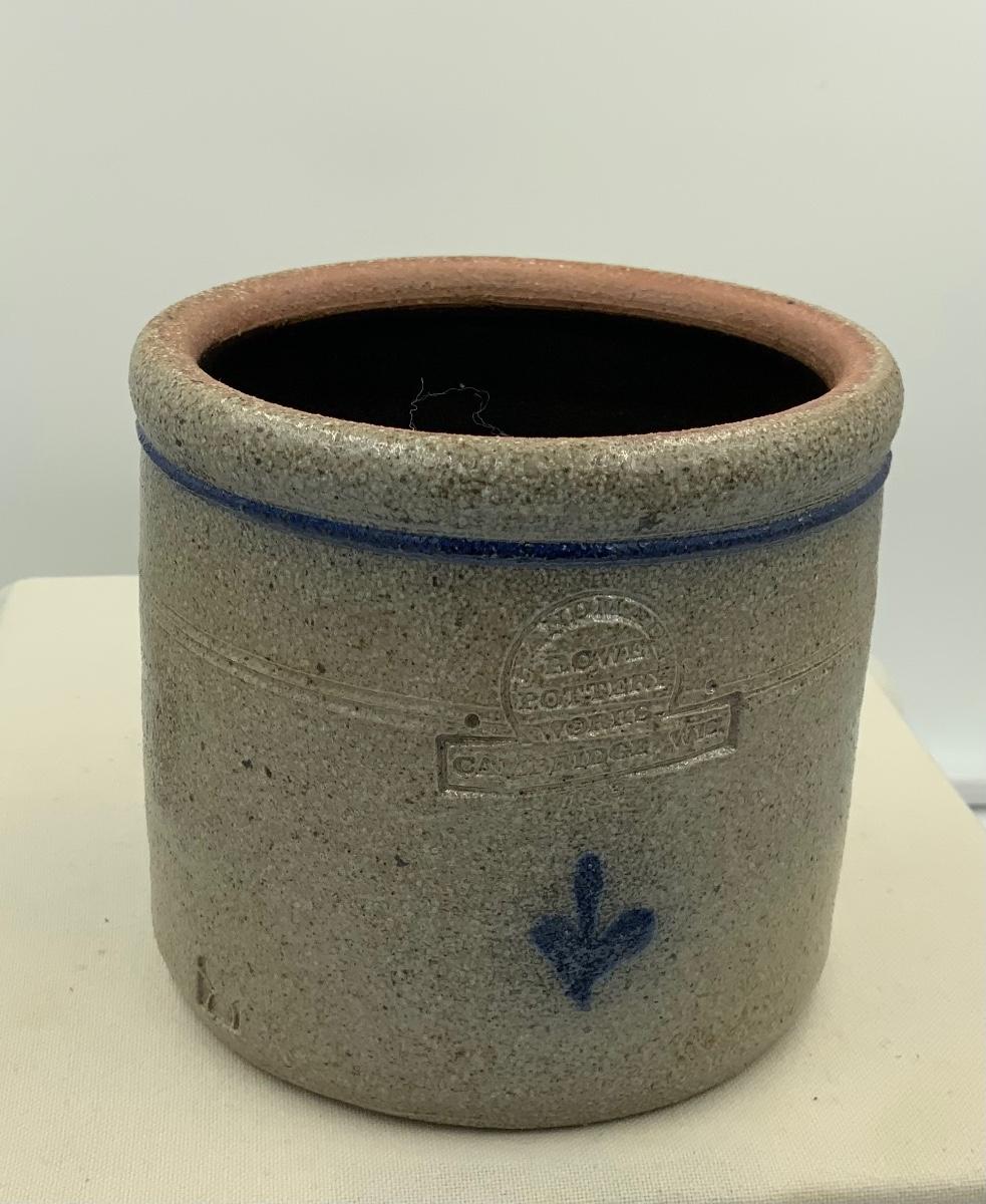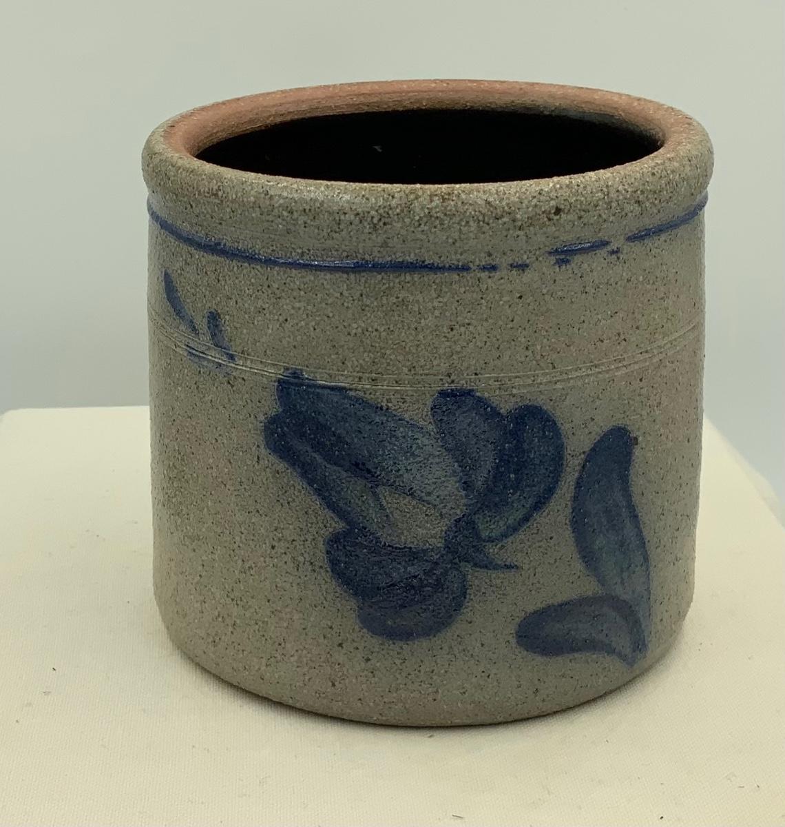 Great 4” x 4” crock with cobalt rose pattern in excellent condition!