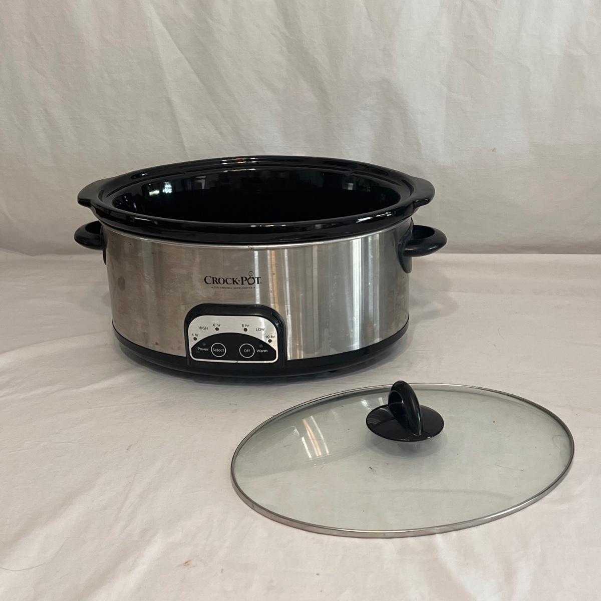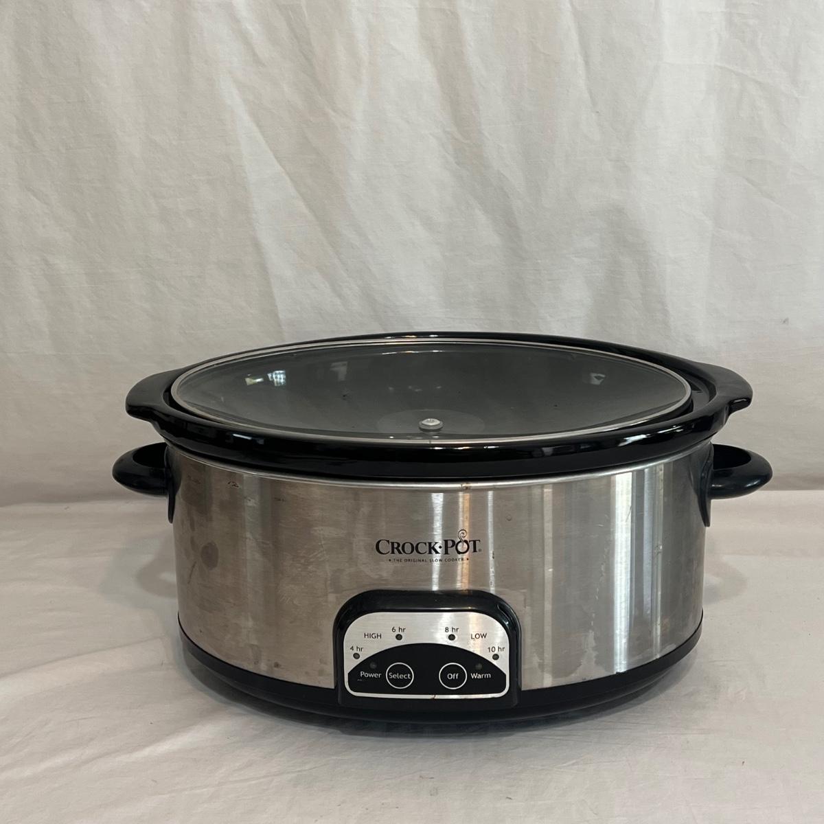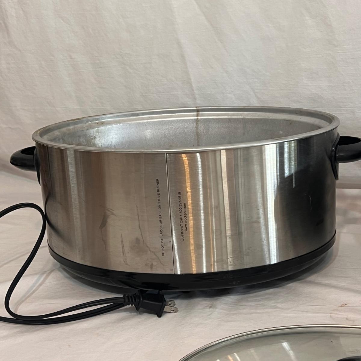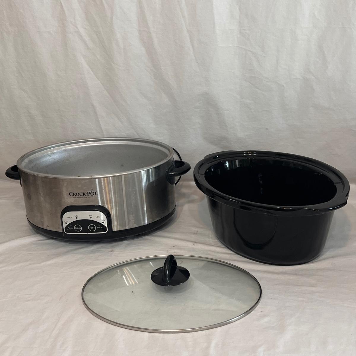 This lot includes three Crockpots of various sizes and a handful of cookbooks with recipes for slow cookers. The largest Crockpot measures 16” x 12”H. All three Crockpots powered on when plugged in. Shipping available. Local pickup only.