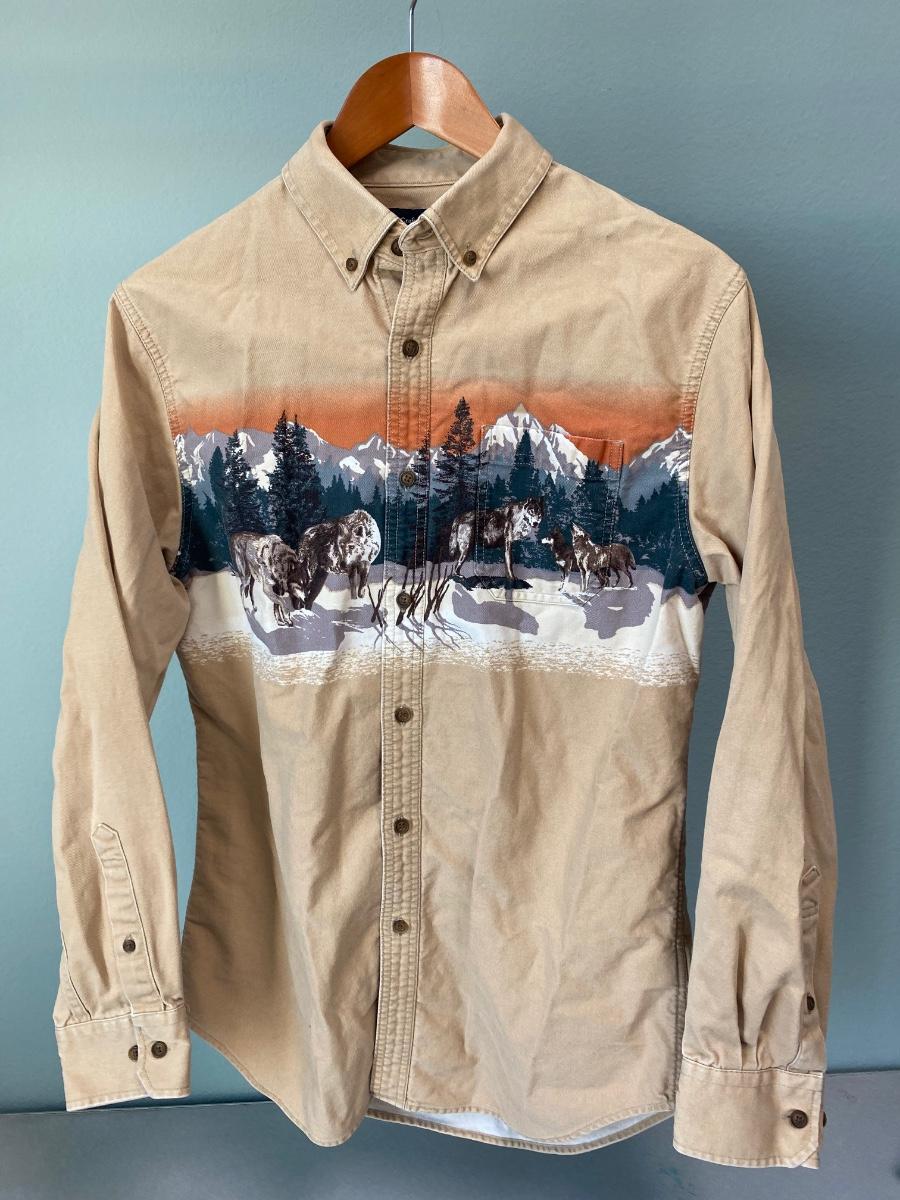 Croft & Barrow Long Sleeve Wolves in Forest Button Front Shirt Medium. Good condition.