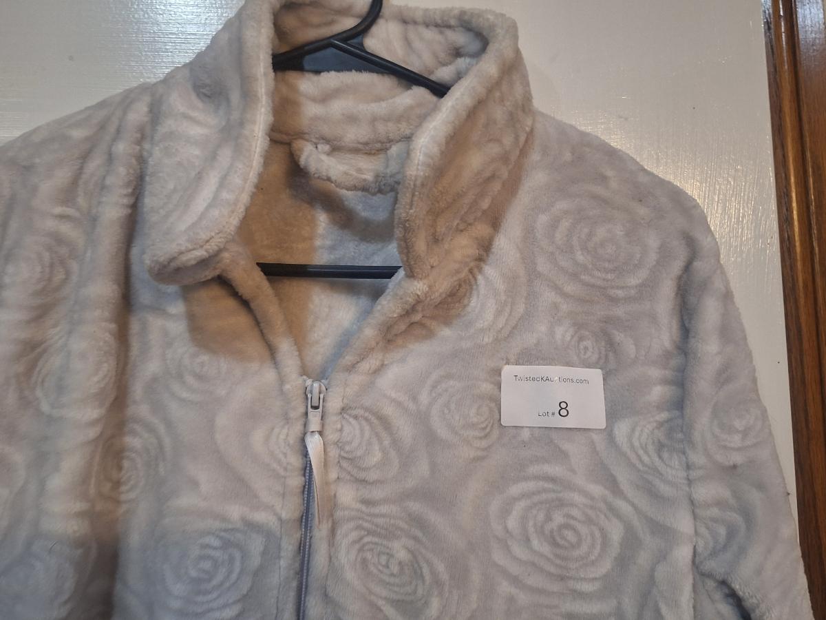 Croft & Barrow women's full-zip fleece housecoat robe with a sculpted rose pattern