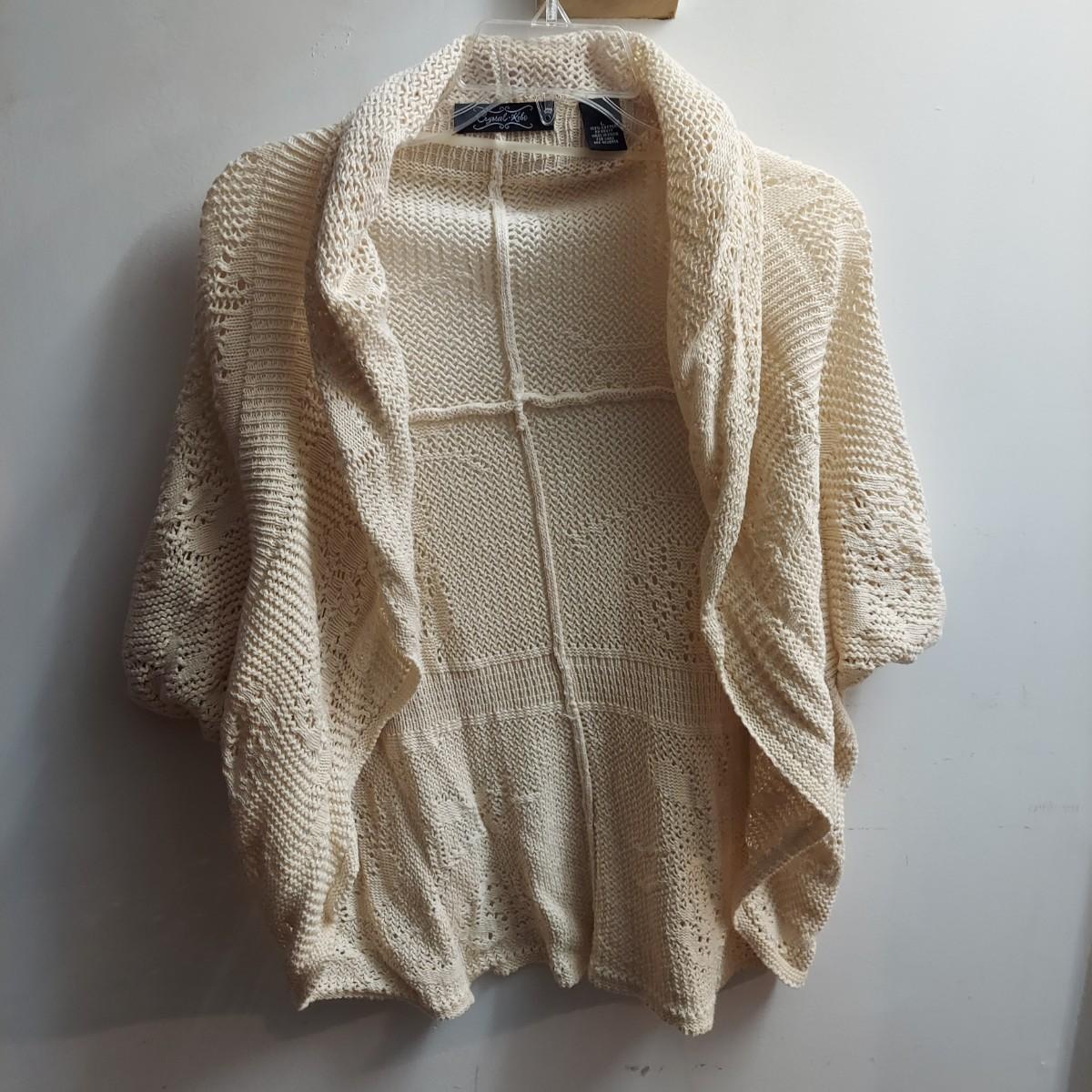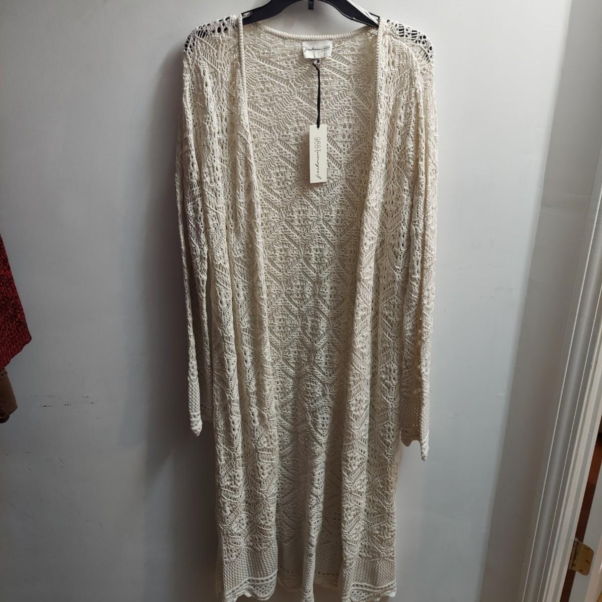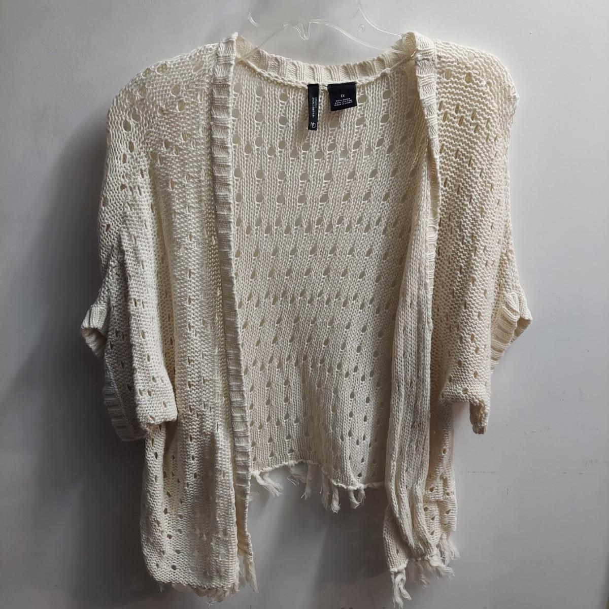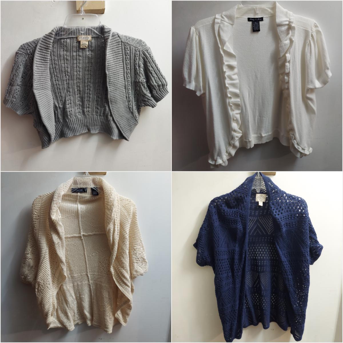 Lot includes 30+ lightweight cardigans, cover-ups and cropped shrugs. Most pieces have an open knit and no closures. Some items are new with tags. Please see photos for brands and details. The sizes marked vary but the overall average fit is large to extra large. Shipping available
