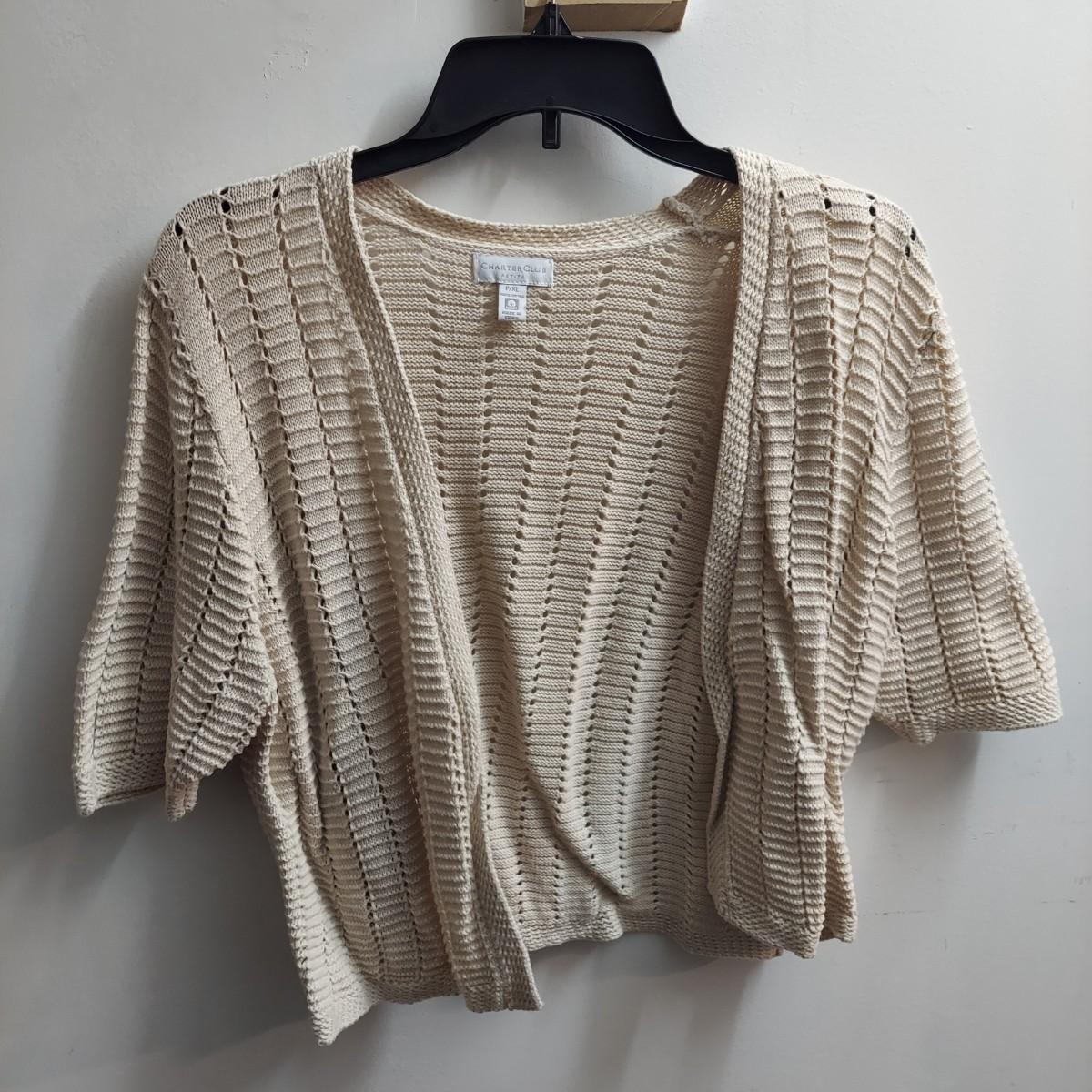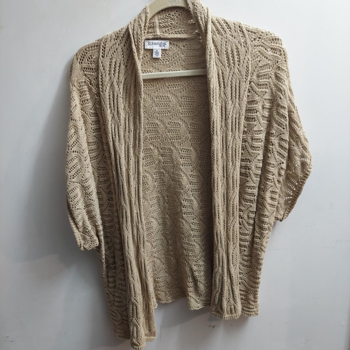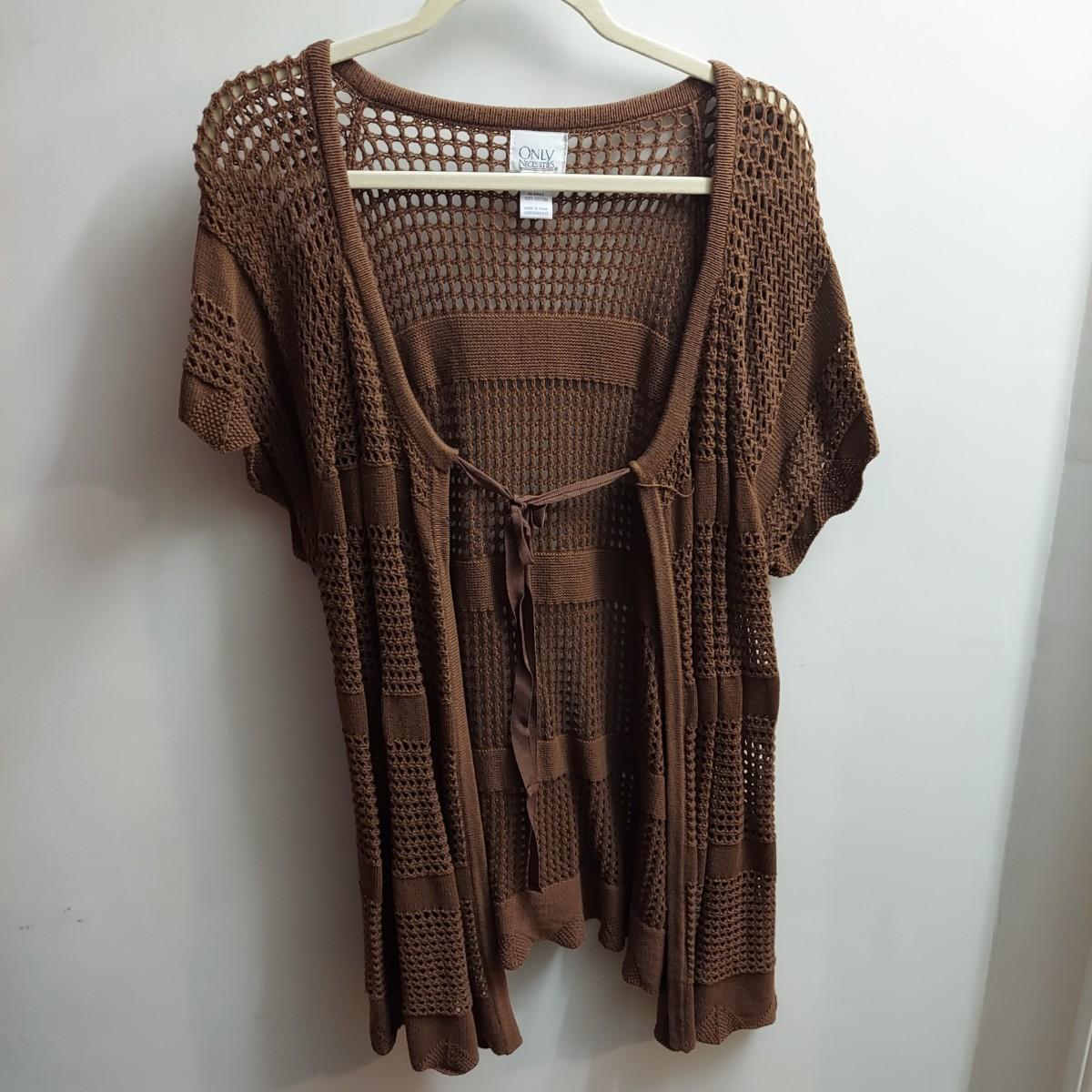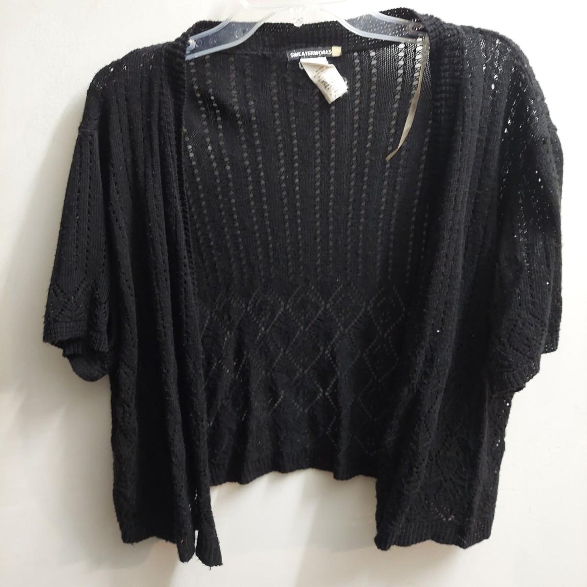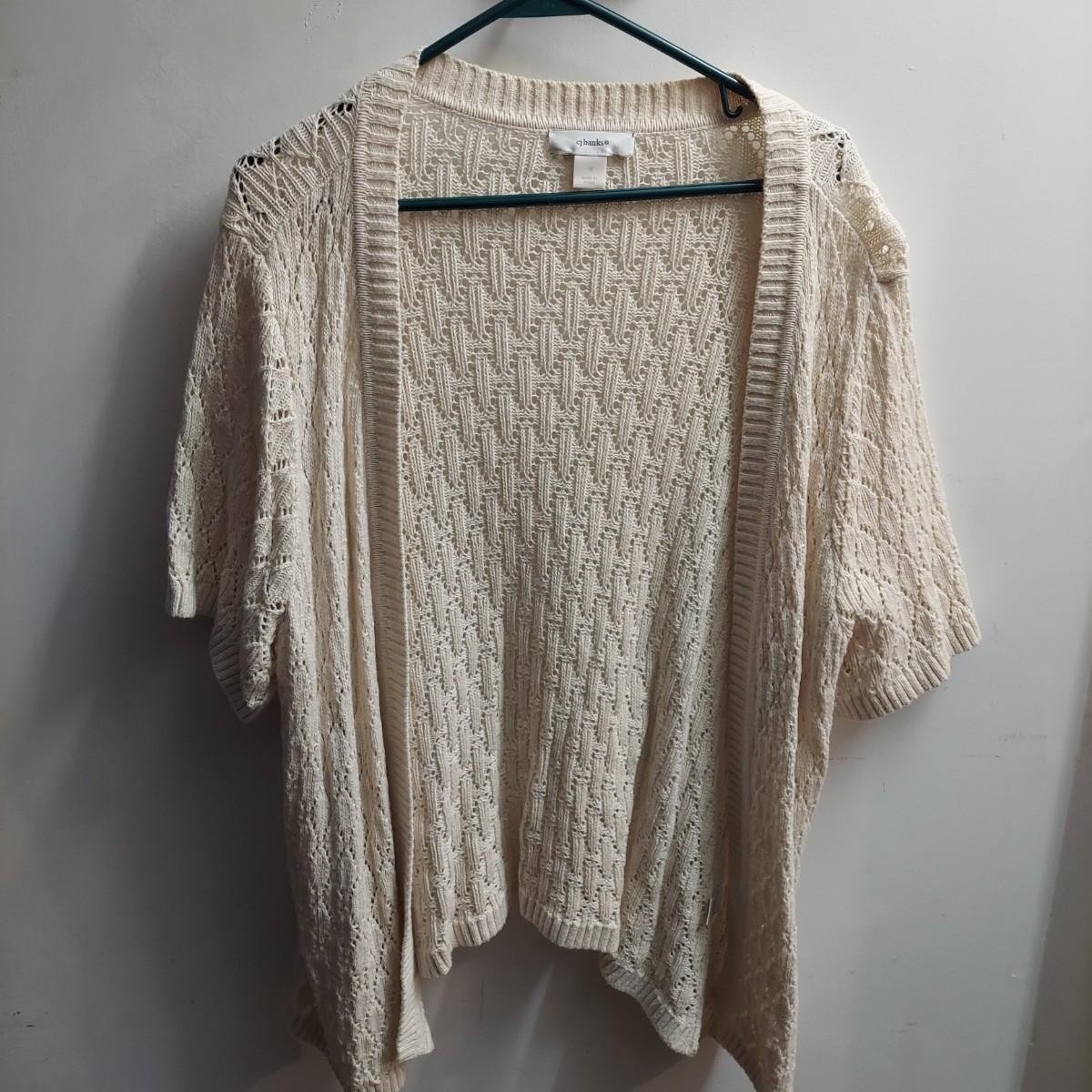 Lot includes 30+ lightweight cardigans, cover-ups and cropped shrugs. Most pieces have an open knit and no closures. Some items are new with tags. Please see photos for brands and details. The sizes marked vary but the overall average fit is large to extra large. Shipping available