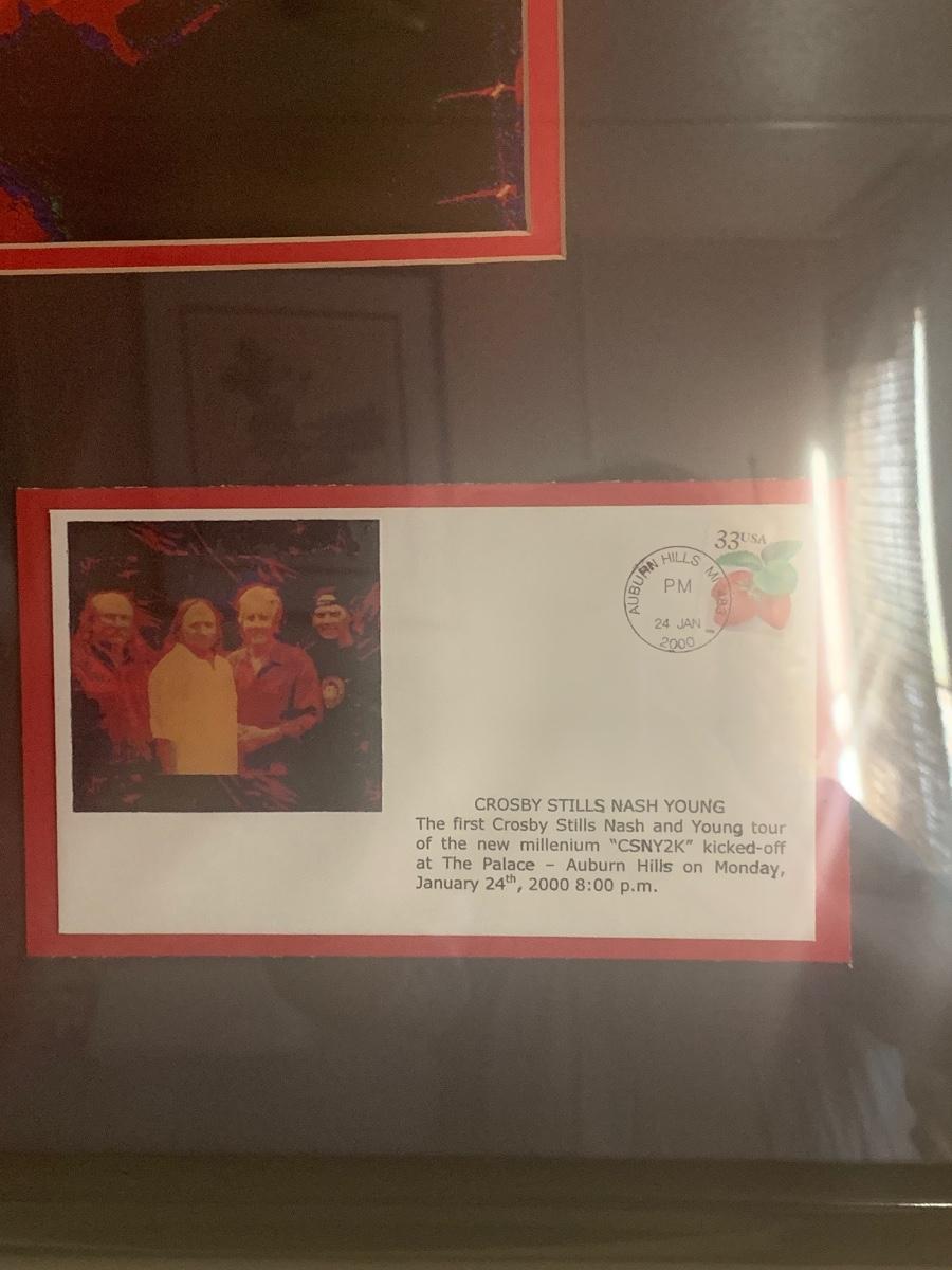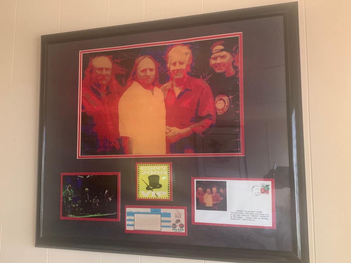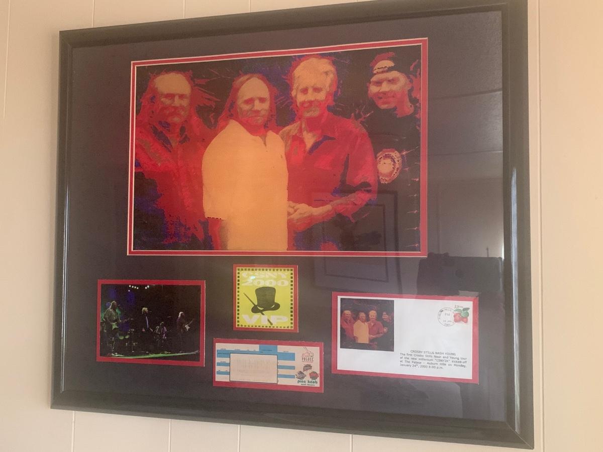 Crosby, Stills, and Nash framed picture and catalog 26"W 22"H