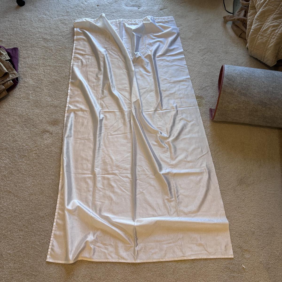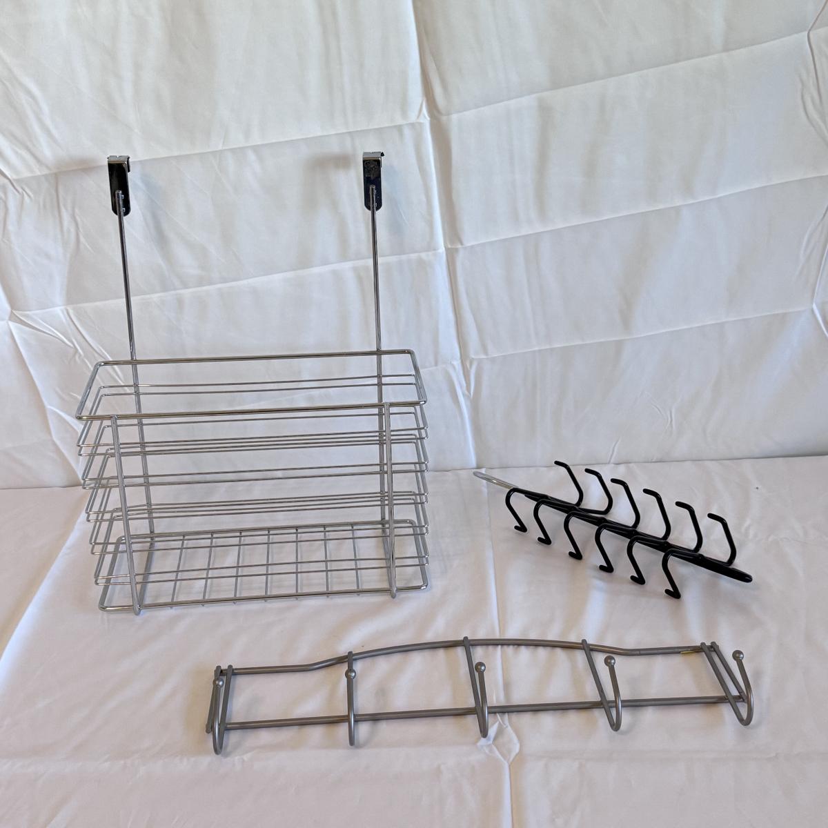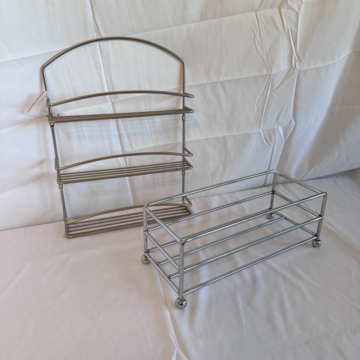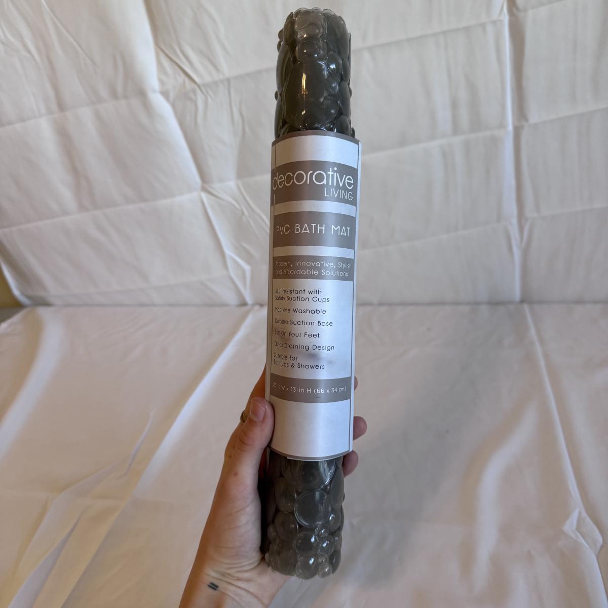 This lot includes five shower curtains (2 NIB) from Croscill Home, Watershed, and unlabeled brands. You’ll find a NIB bath mat, several metal storage racks, and three boxes of shower hooks. Please see photos for measurements of the two NIB shower curtains. Shipping available.