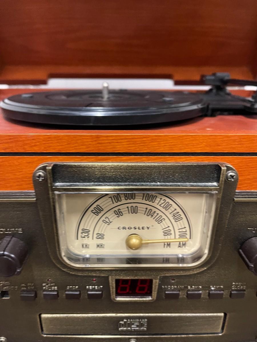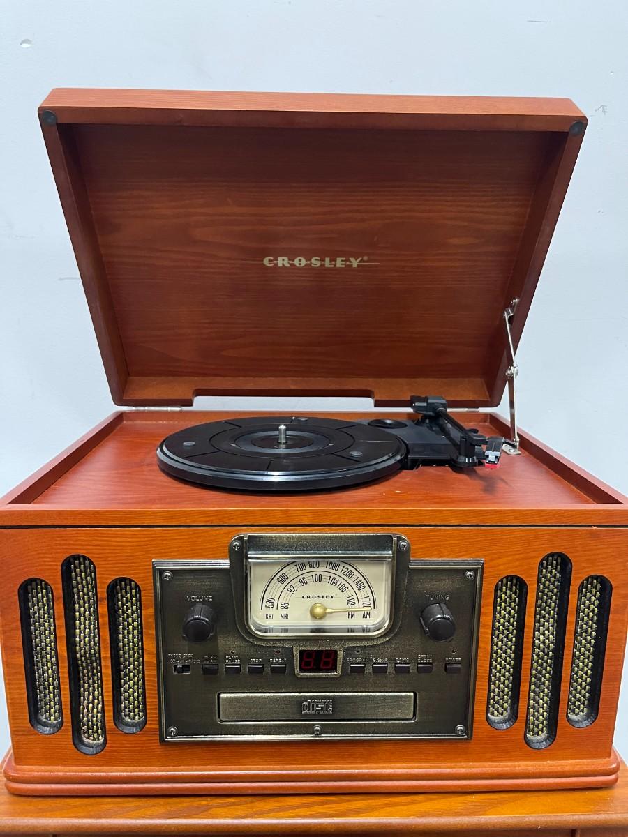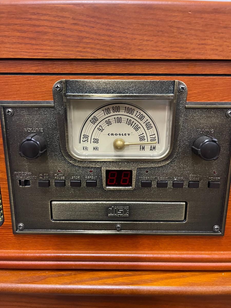 Crosley Reproduction Radio with Turntable and Wooden Base with Album Storage