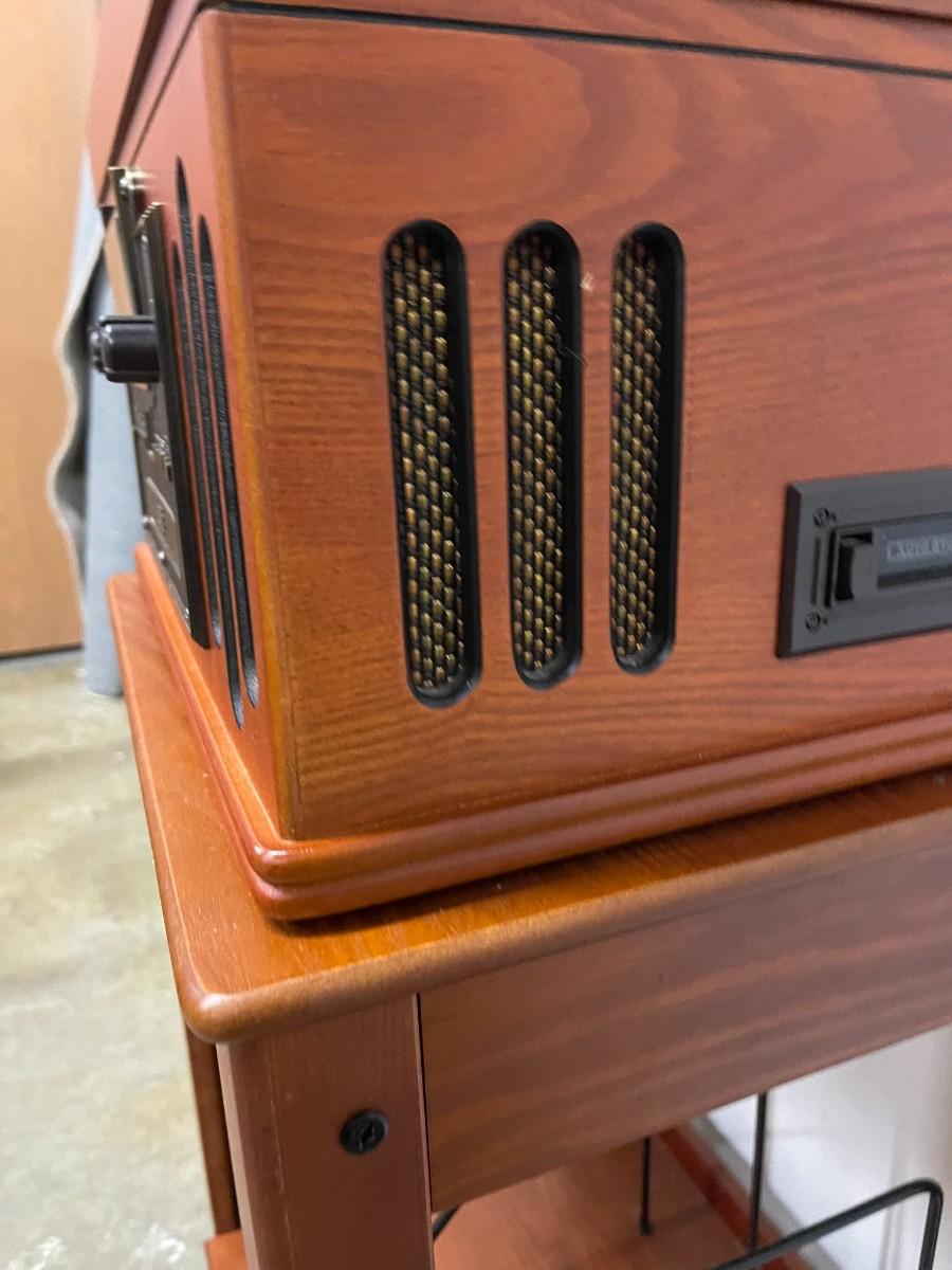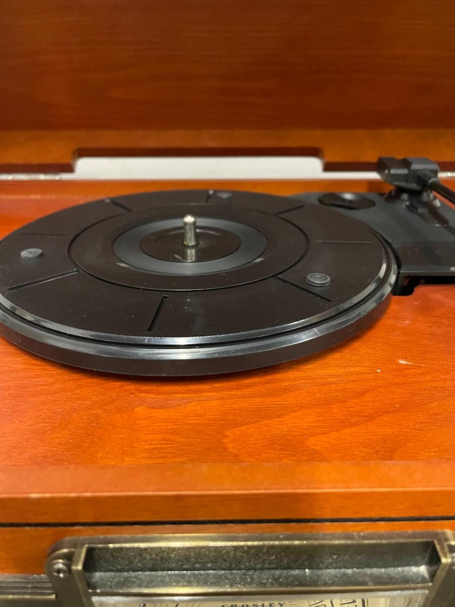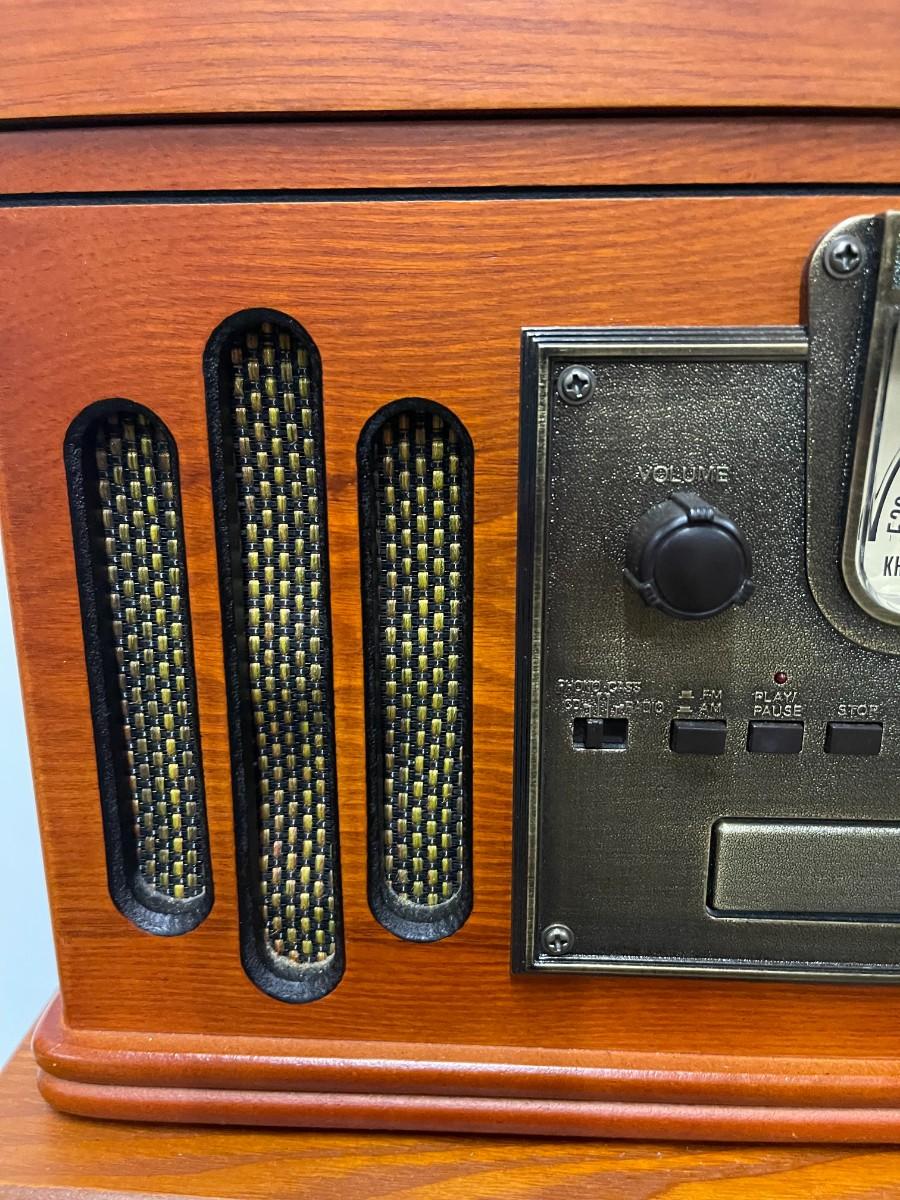 Crosley Reproduction Radio with Turntable and Wooden Base with Album Storage