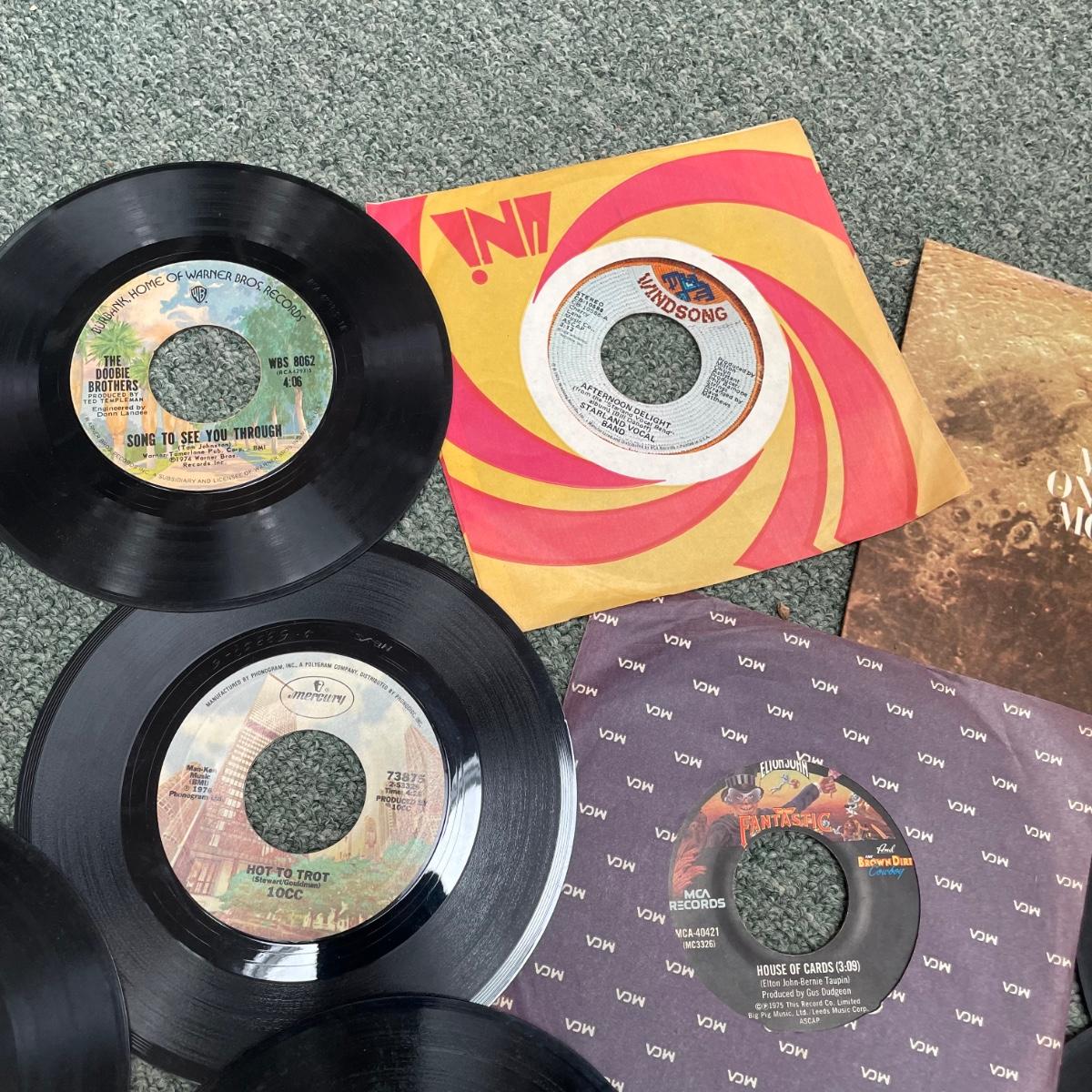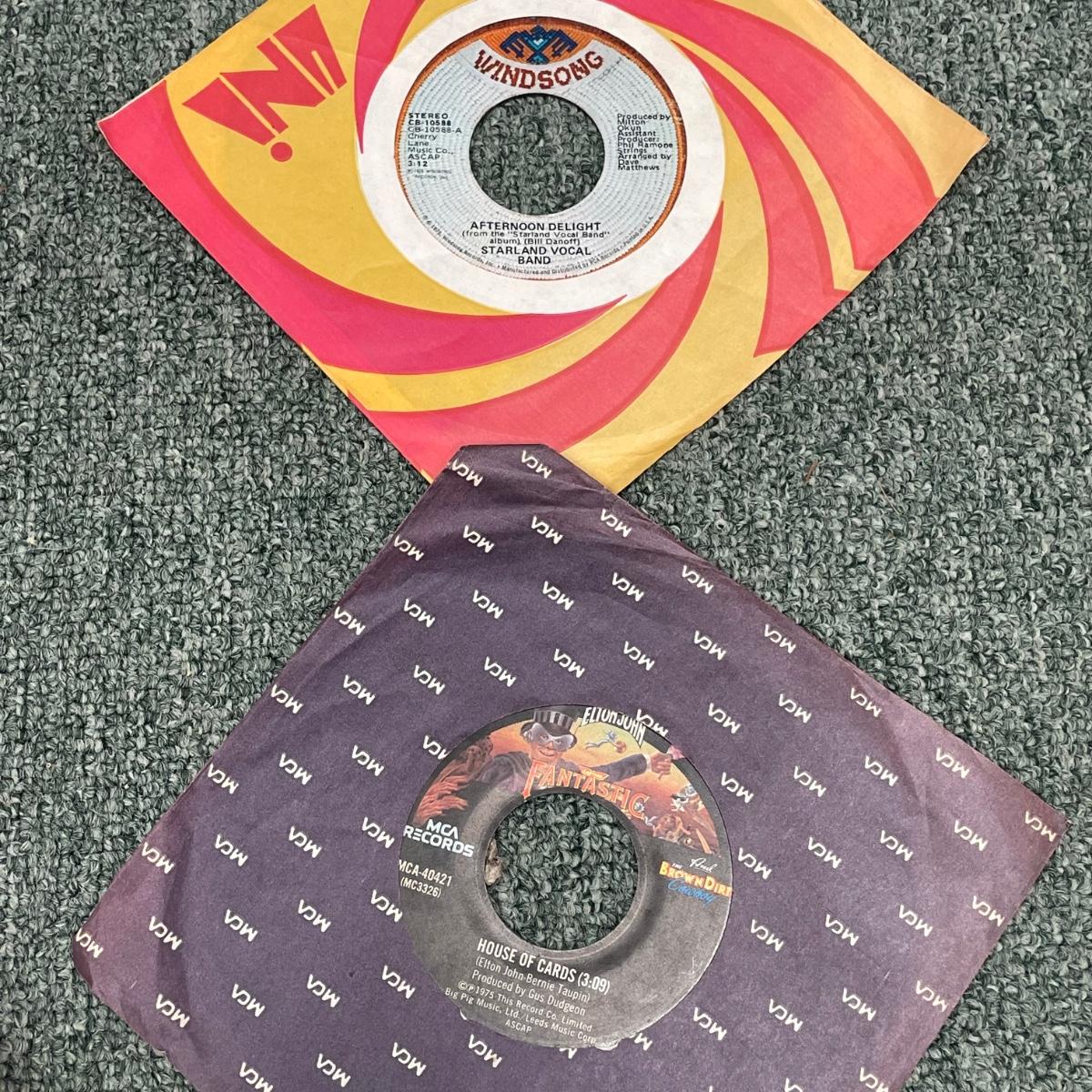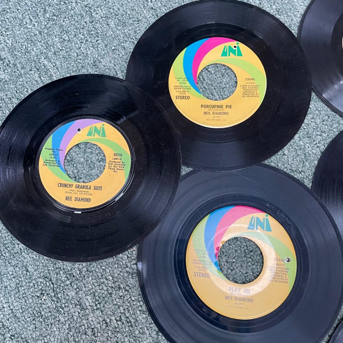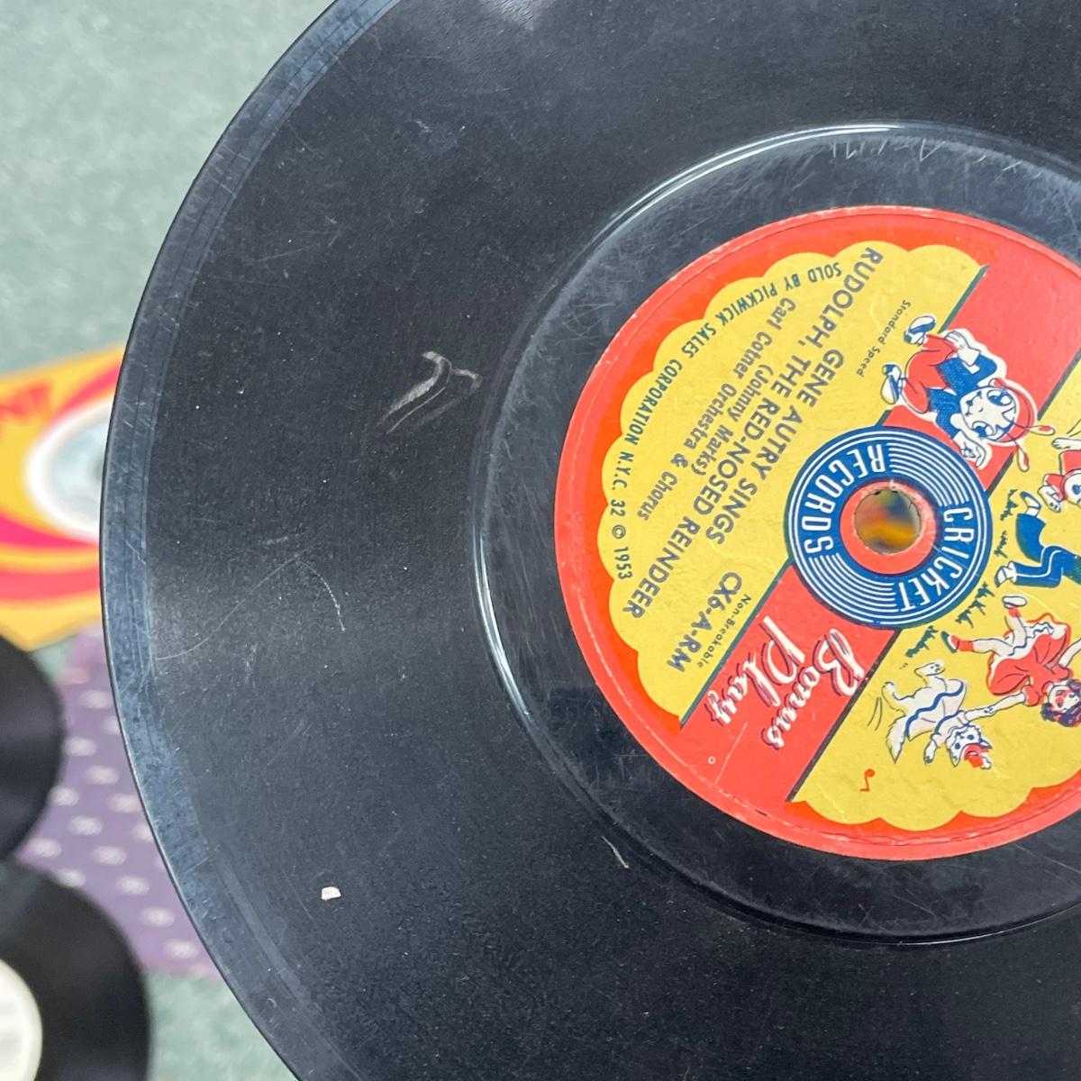 This Crosley unit plays vinyl, CD’s plus cassettes, as well as is a radio. However only vinyl was tested and the sound is great. Model CR 78CD. A good assortment of 45’s are included, see images for titles and note that most do not have sleeves and show scratches. Crosley measures 16.5” x 13” x 9”. The cabinet that it sits on is not included in this lot but is found in this sale.