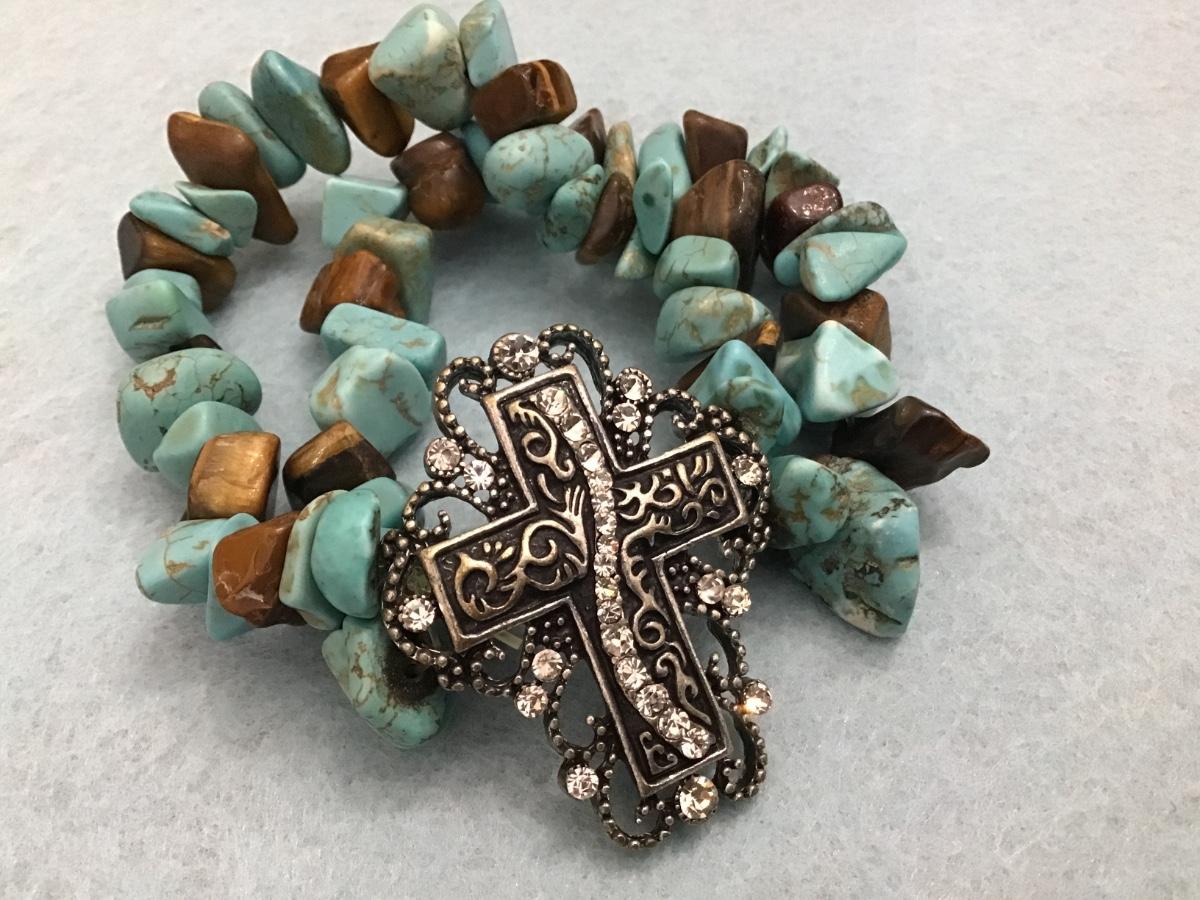 Cross Bracelet Double Strand stone Type
