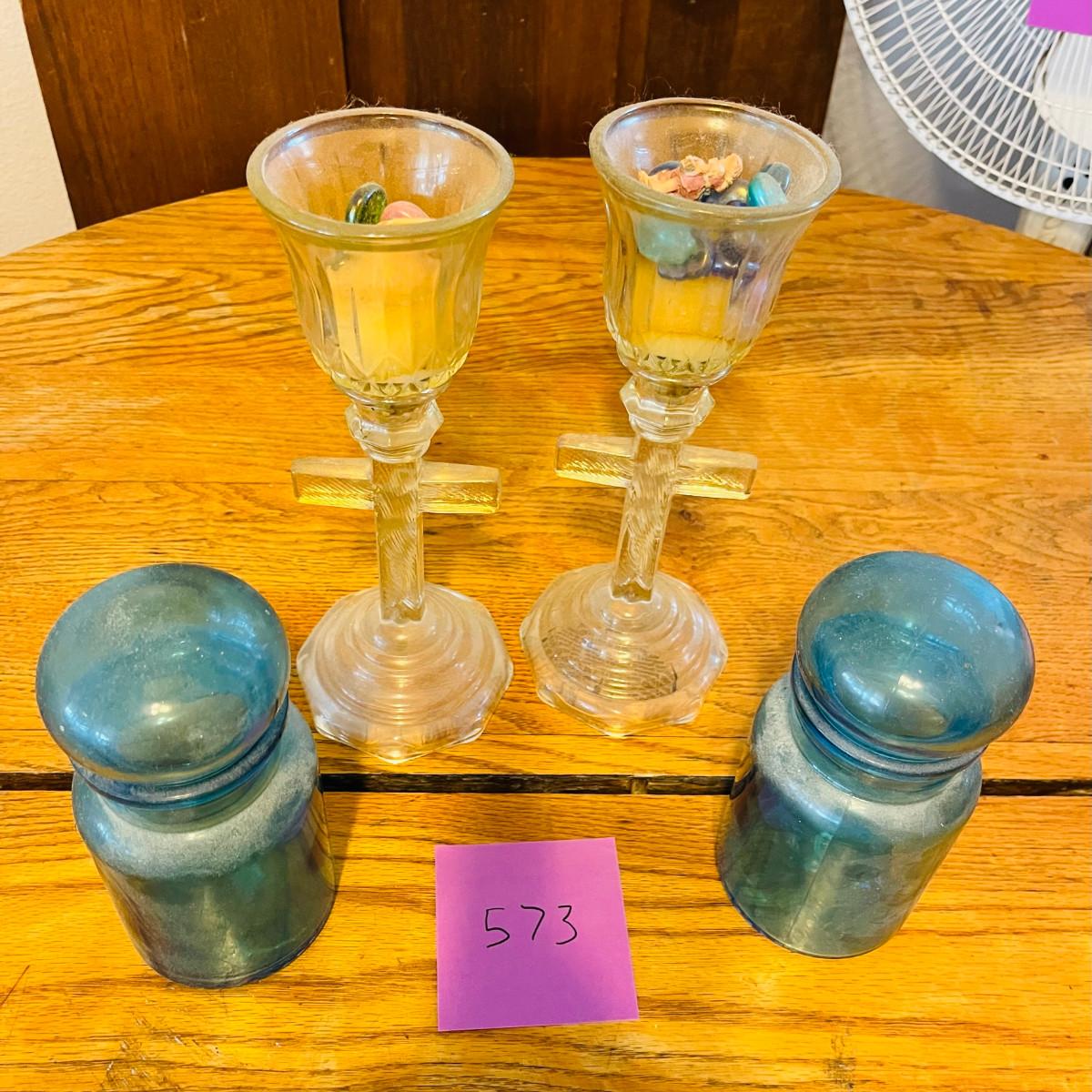 Cross candlesticks & Jars