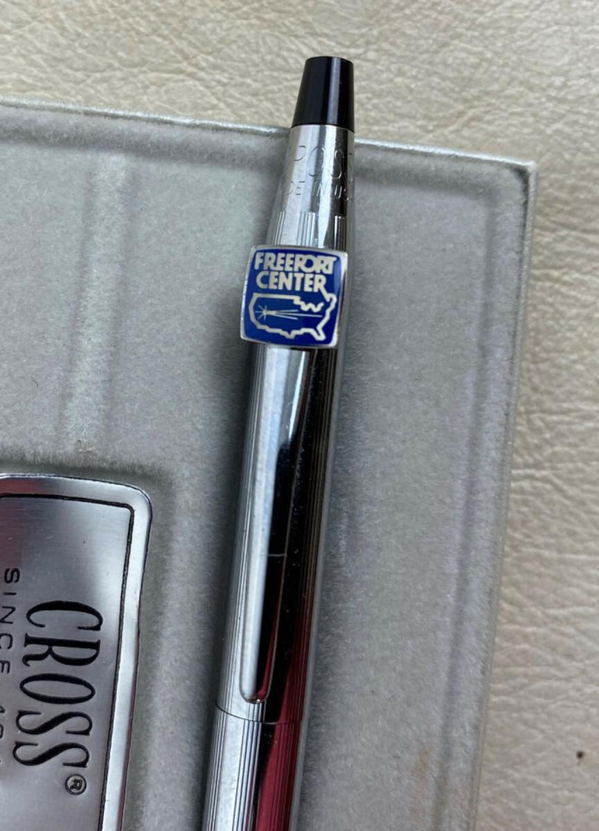 n excellent condition here is a Cross Chrome Ball Pen #3502 with an advertising tag for the FREEPORT CENTER...a manufacturing, warehousing, and distribution center located in Clearfield, Utah. It was originally built in 1942 as the Clearfield Naval Supply Depot...As shown...Made in USA...with presentation box.