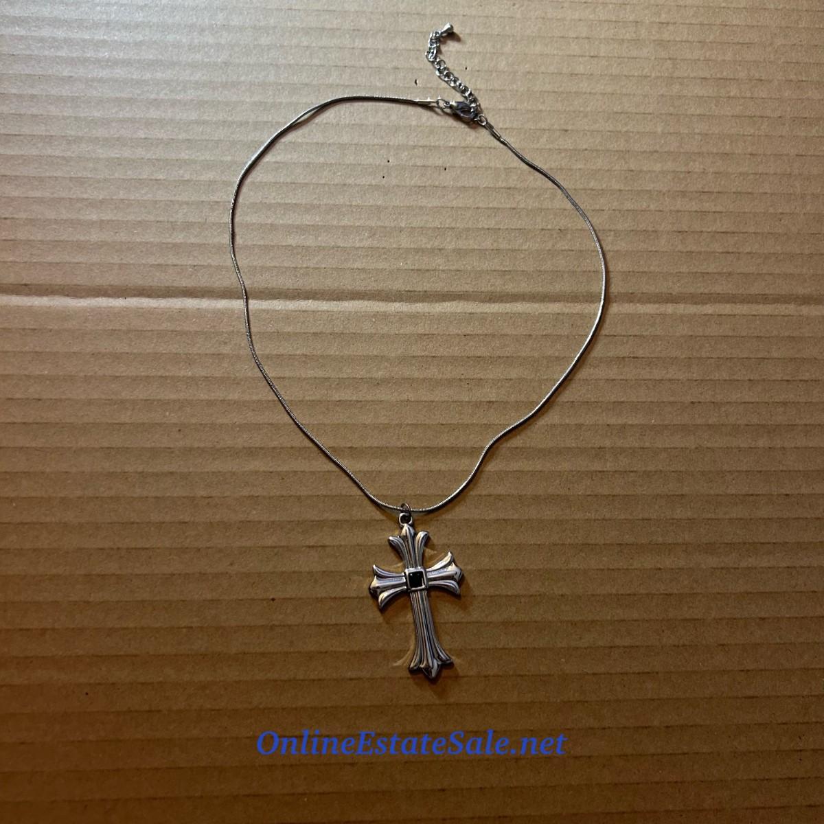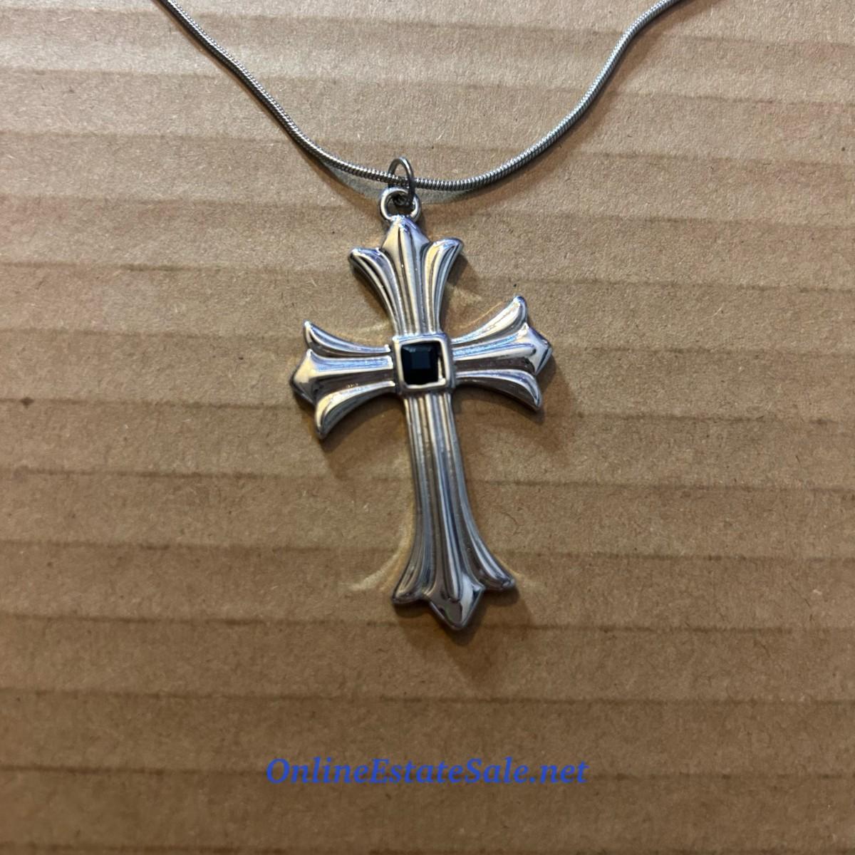 17in Silver Colored Chain with Cross Pendant and Lobster Claw Clasp