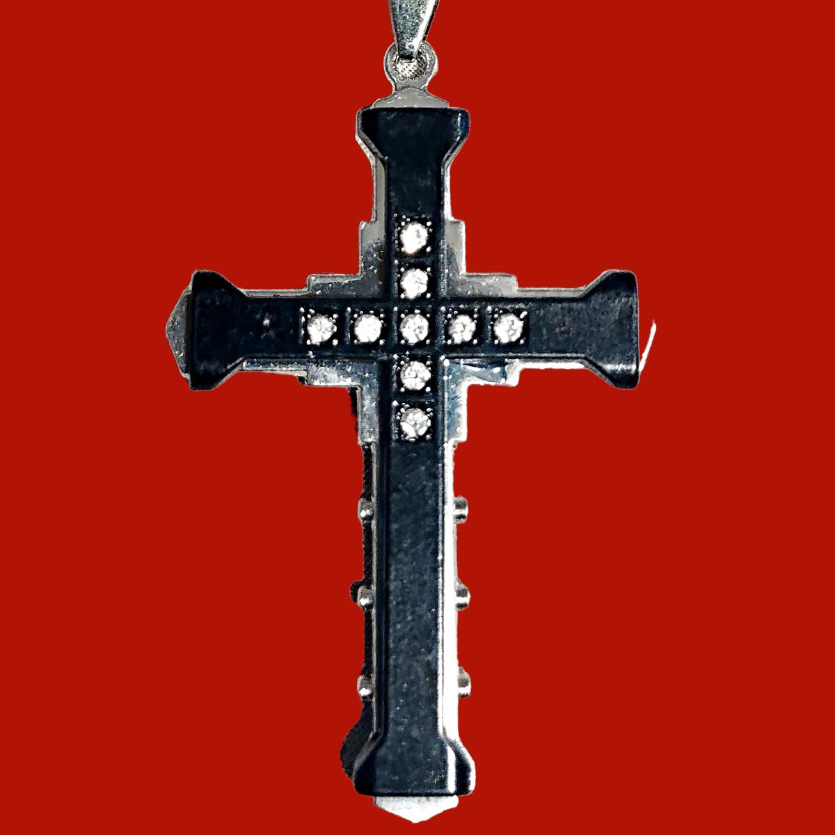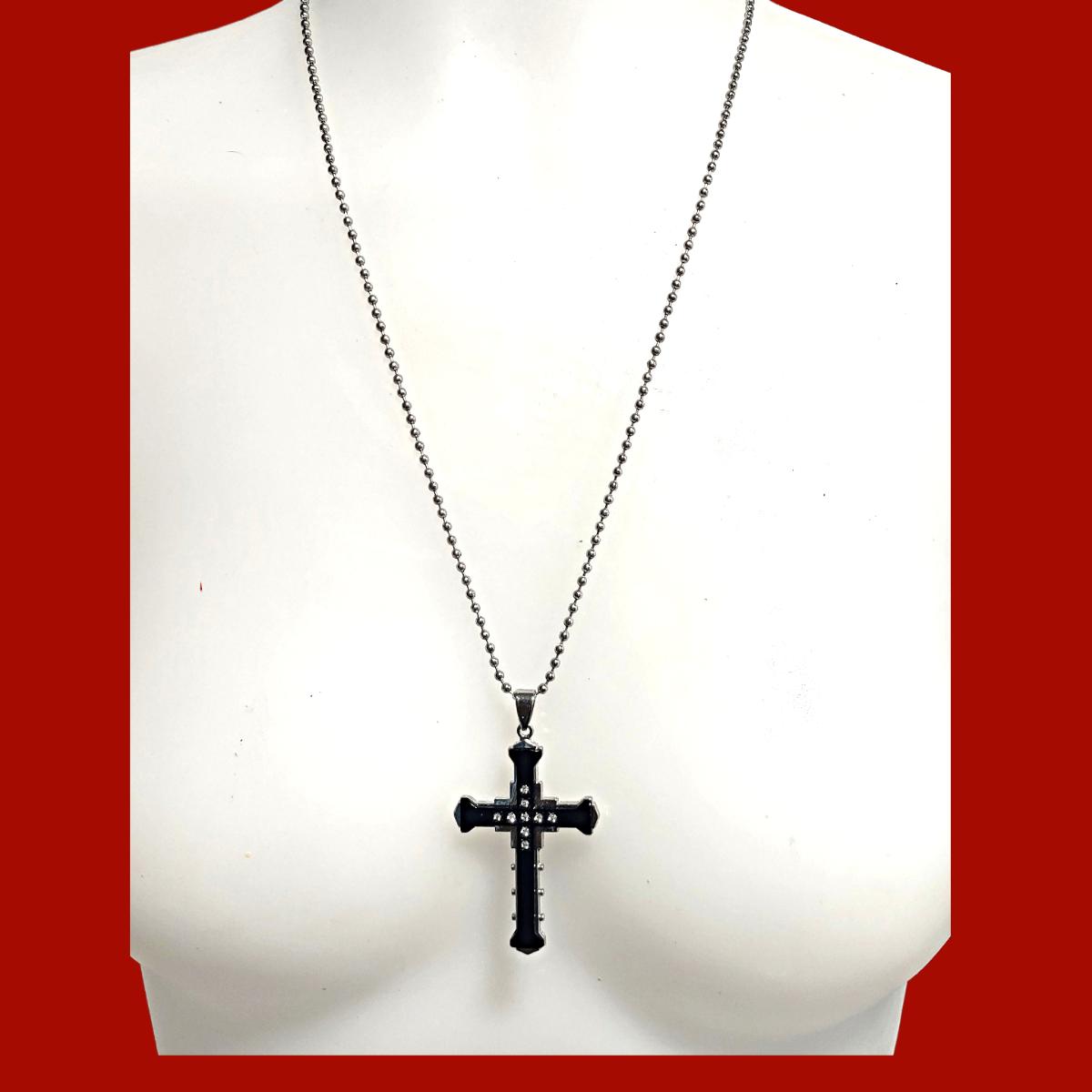 24" Stainless Steel Chain & Black Cross Pendant w/ Rhinestones