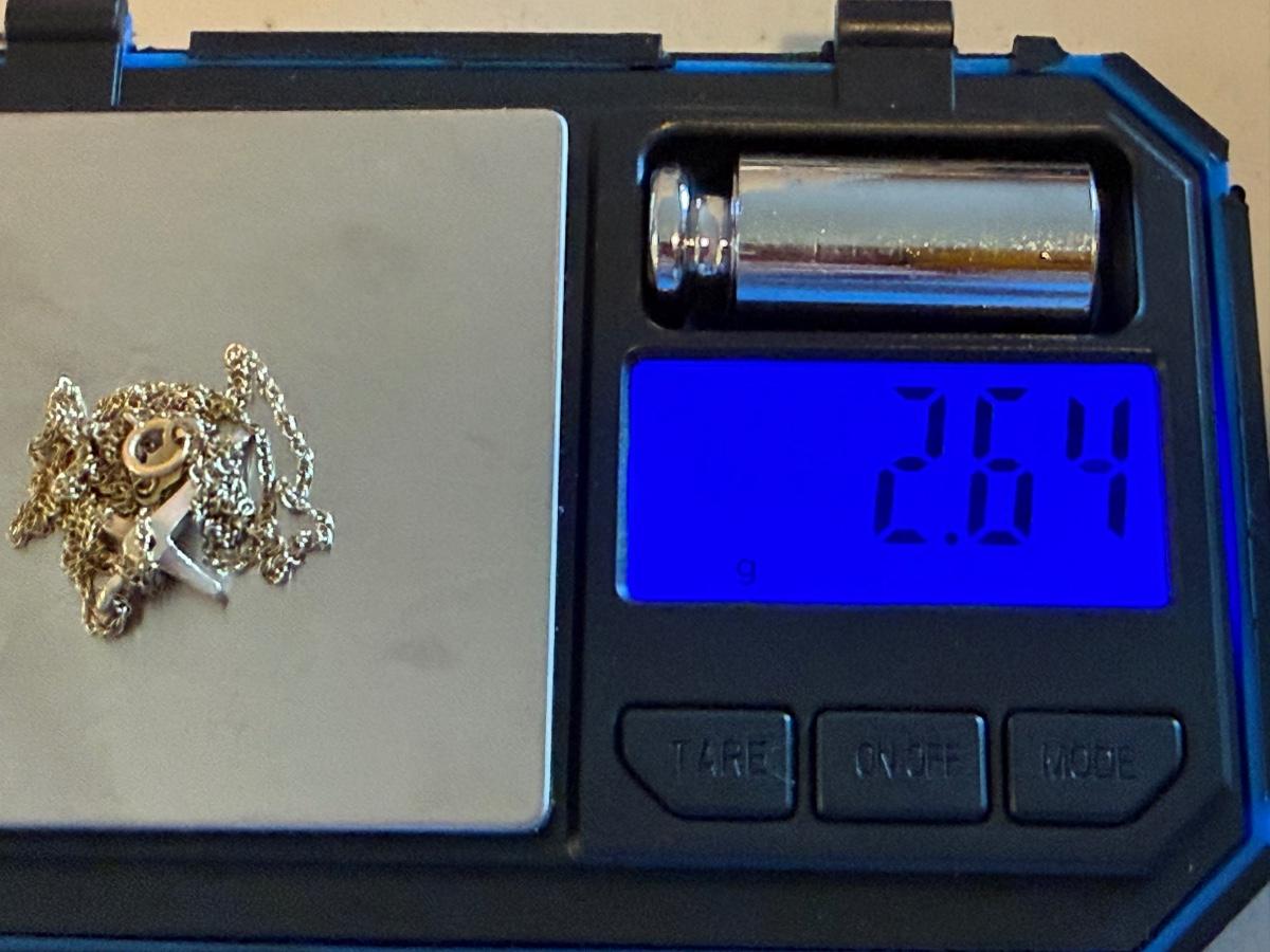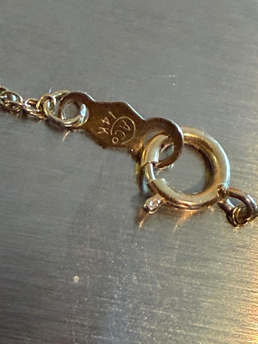 Necklace is 14k / Pendant is not marked and tests Inconsistent. Total weight : 2.64 grams.