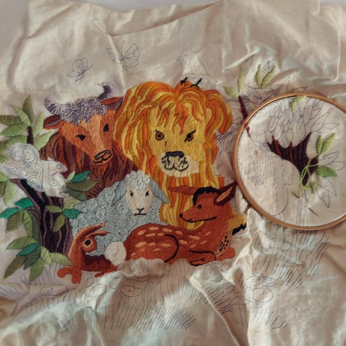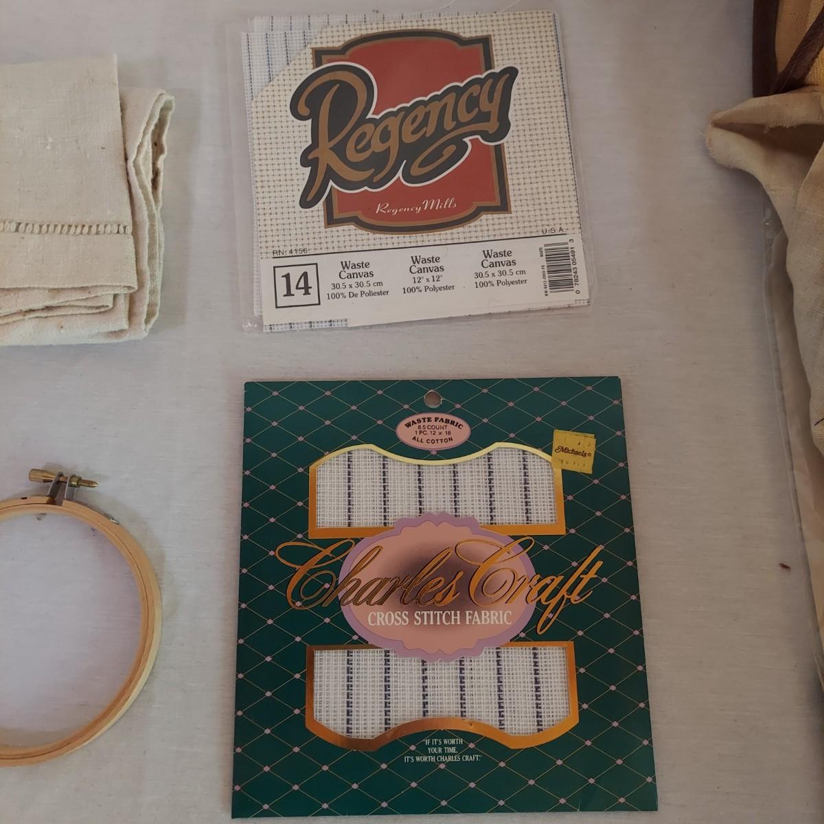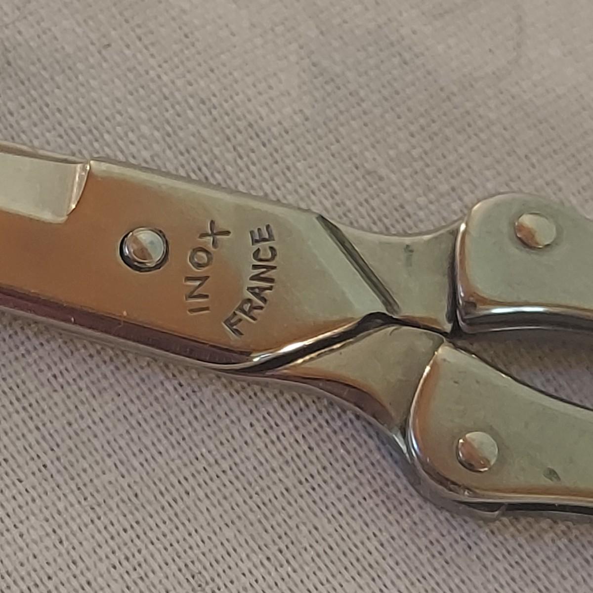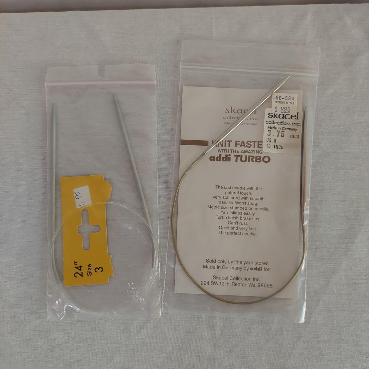 Lot includes four books, several skeins of yarn, different sizes of knitting needles, embroidery thread, hoops and more. There are two unfinished projects with the supplies to finish them. Plus a pair of vintage INOX France fold up pocket scissors with case. Please see photos for details. Shipping available