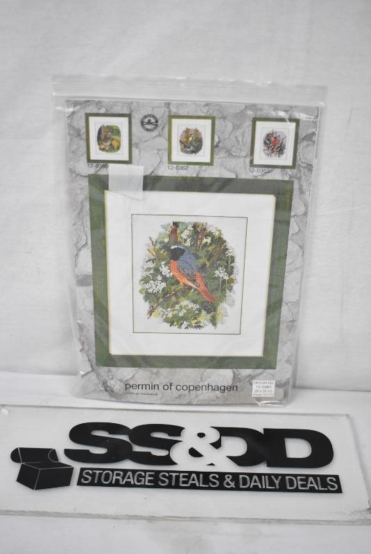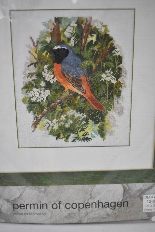 Cross Stitch Kit Bluebird & Flowers, by Permin of Copenhagen, Complete - New