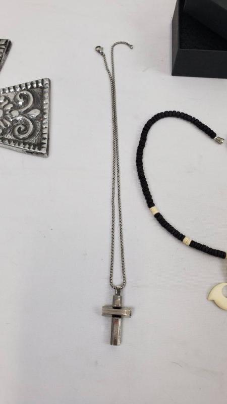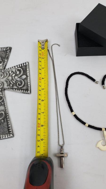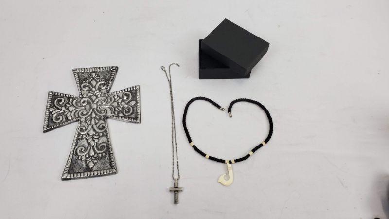 Cross Wall Hanging, Cross Necklace & Puka Shell Necklace