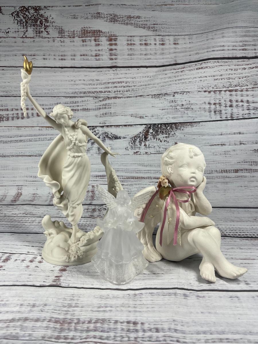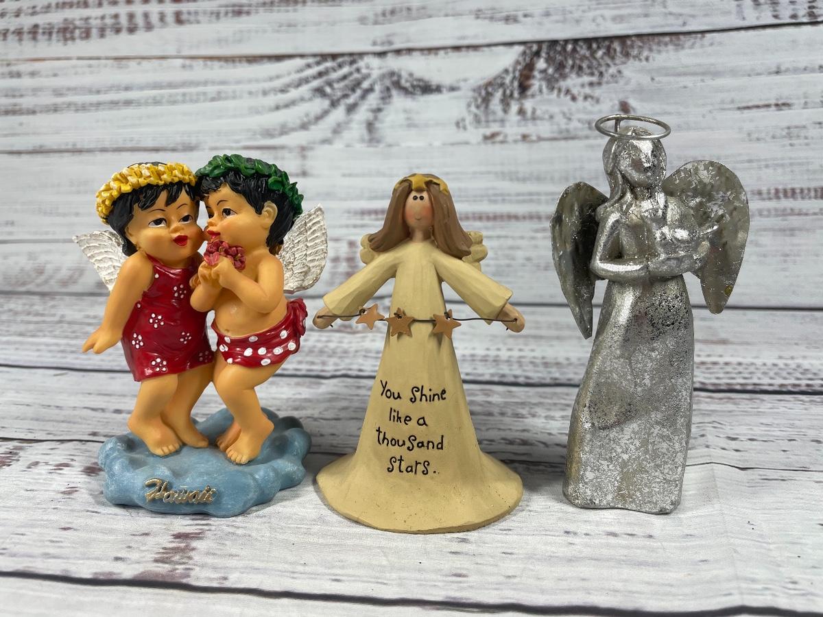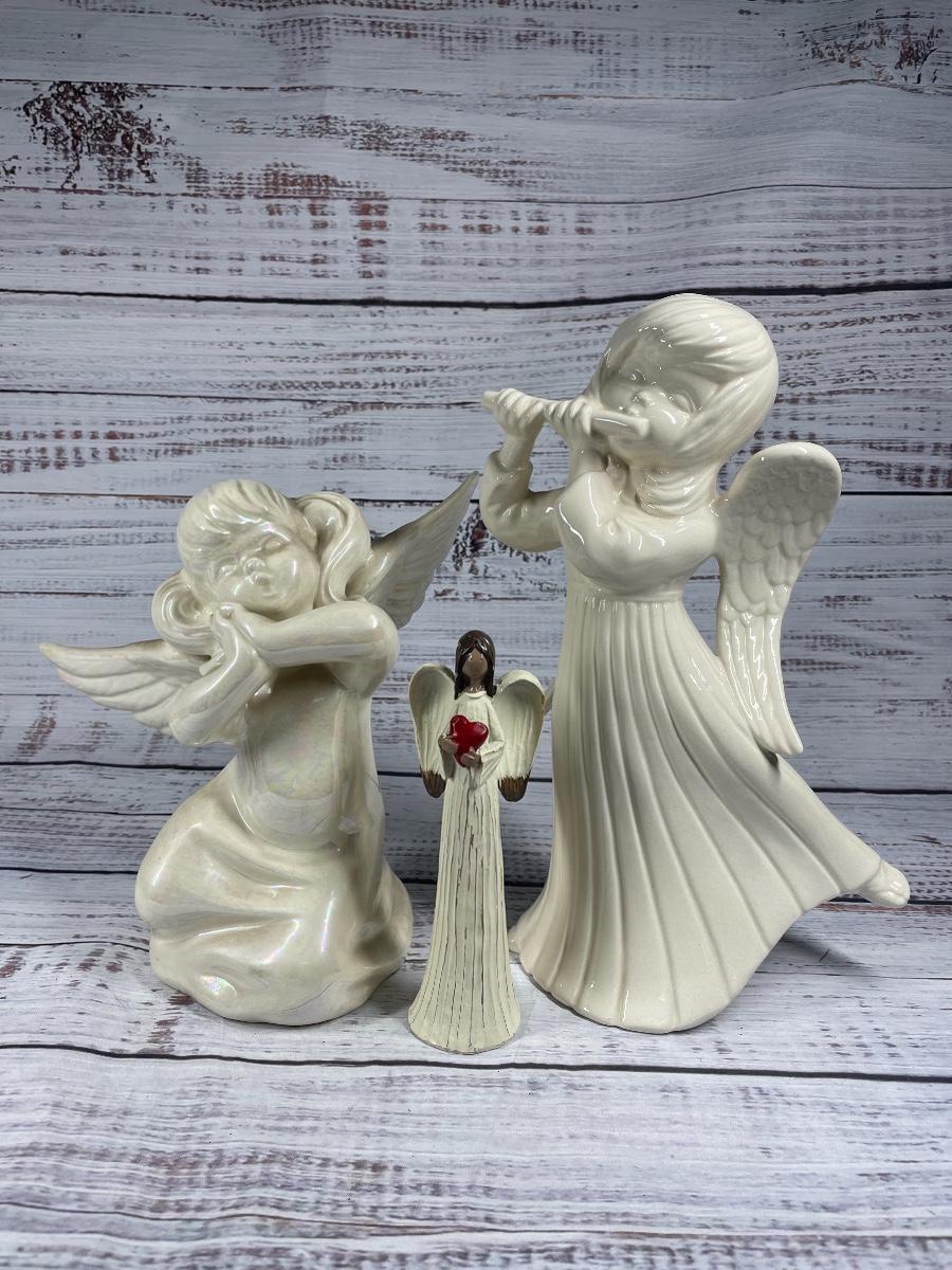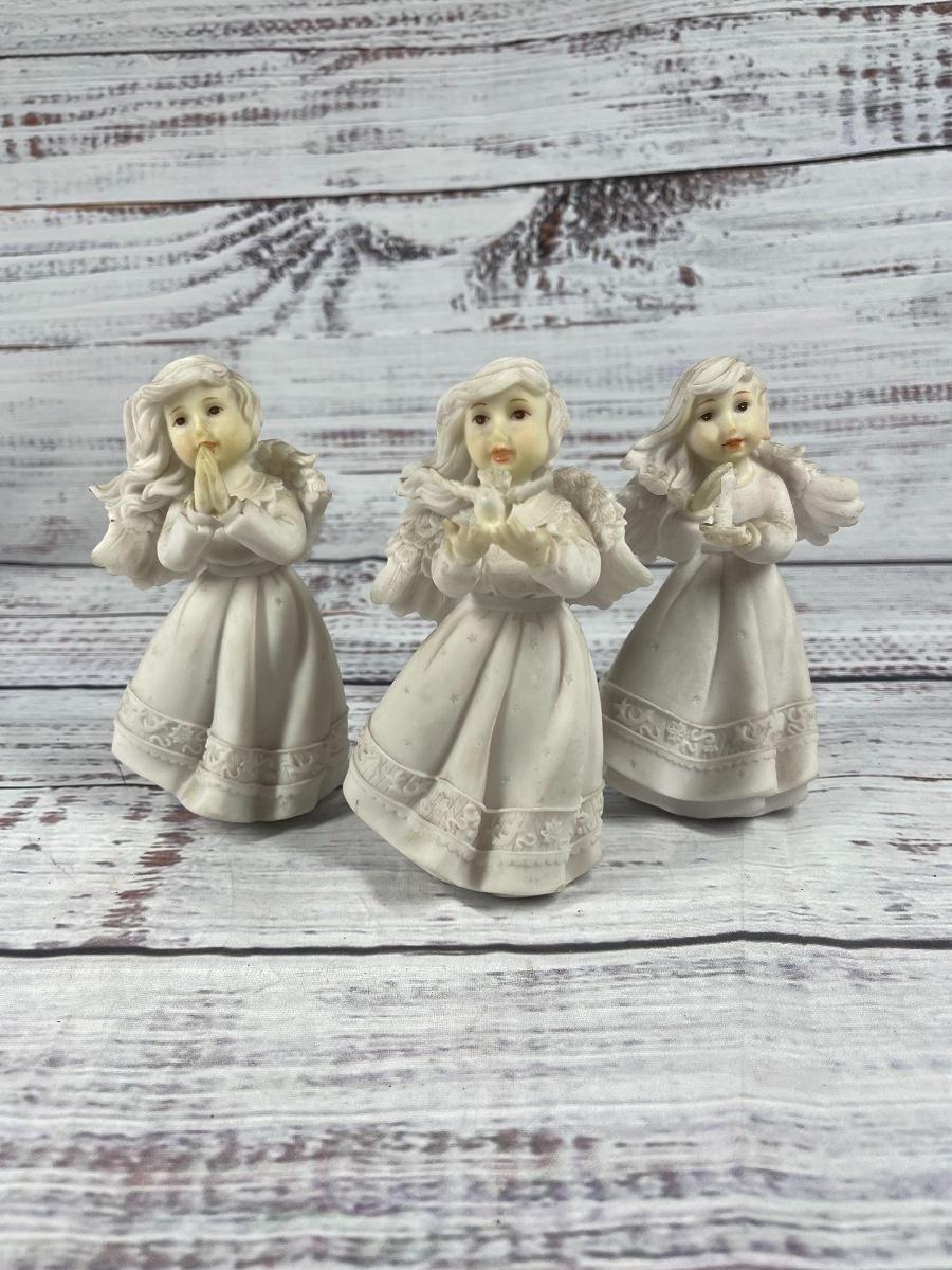 All of these items are in great condition. There are no chips in any of the angels. The angle music box has some discoloration.