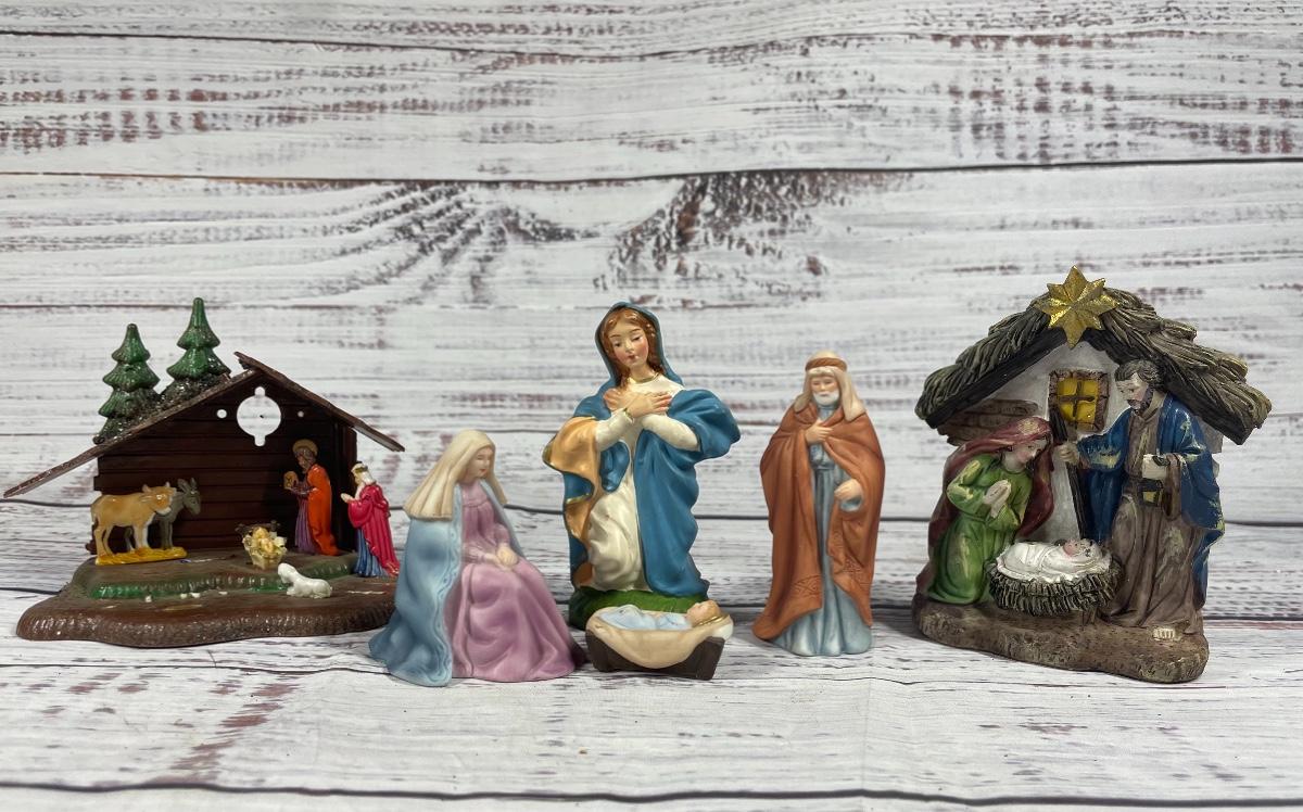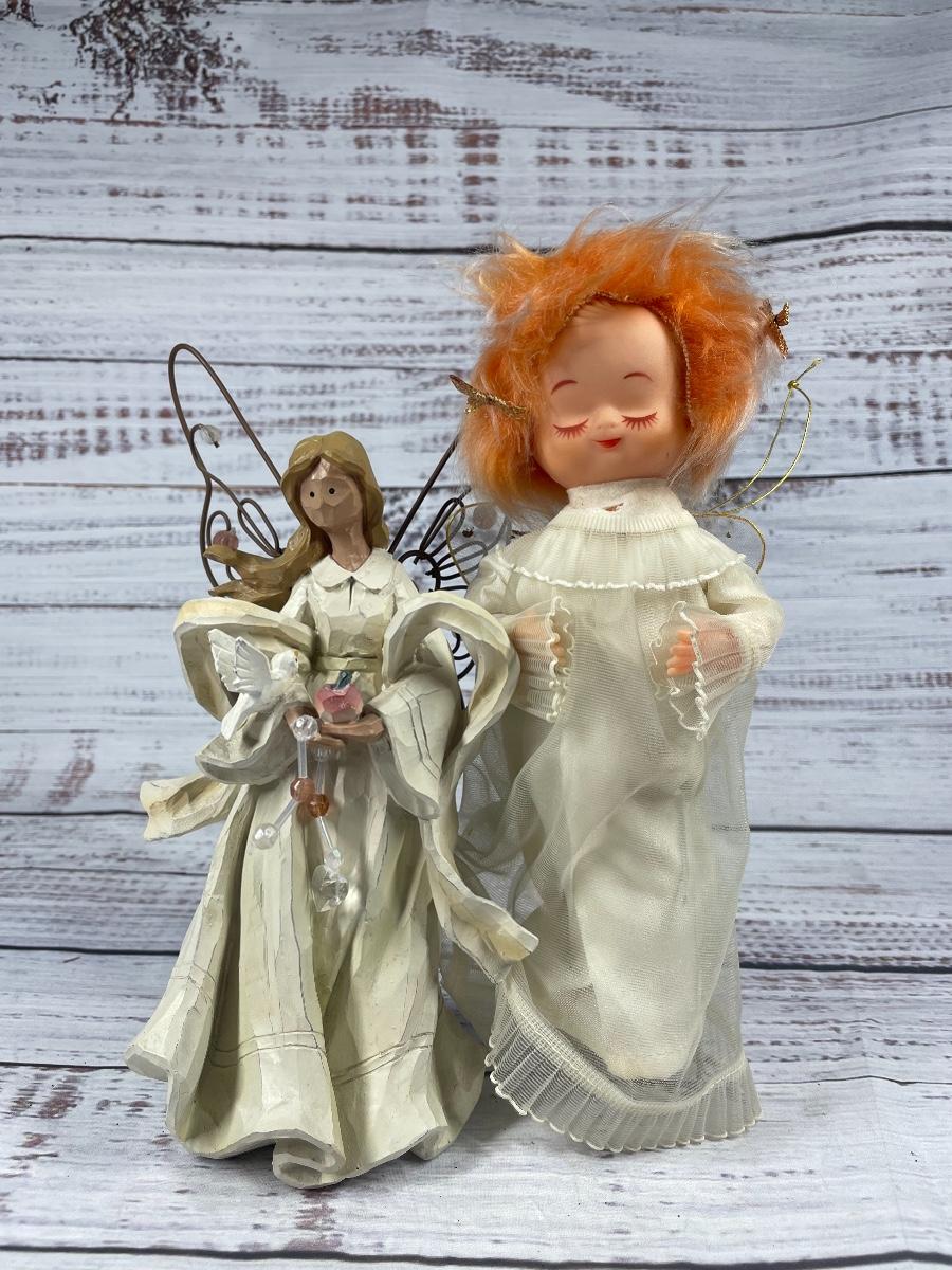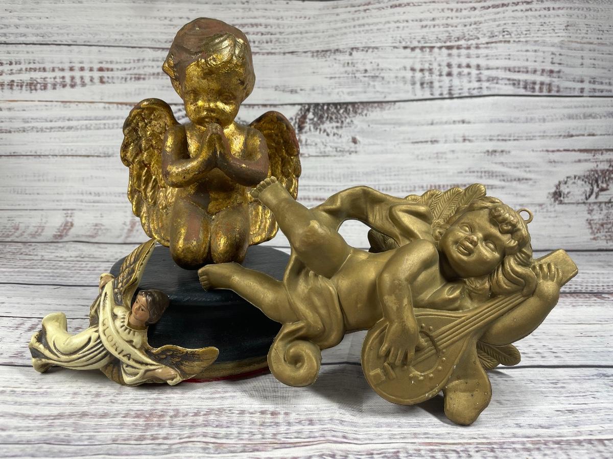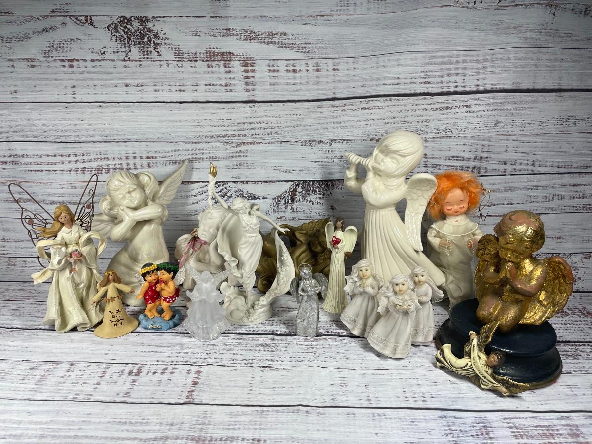 All of these items are in great condition. There are no chips in any of the angels. The angle music box has some discoloration.