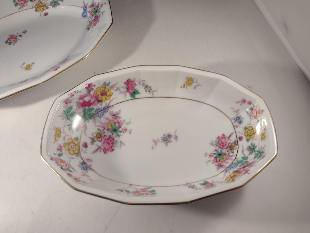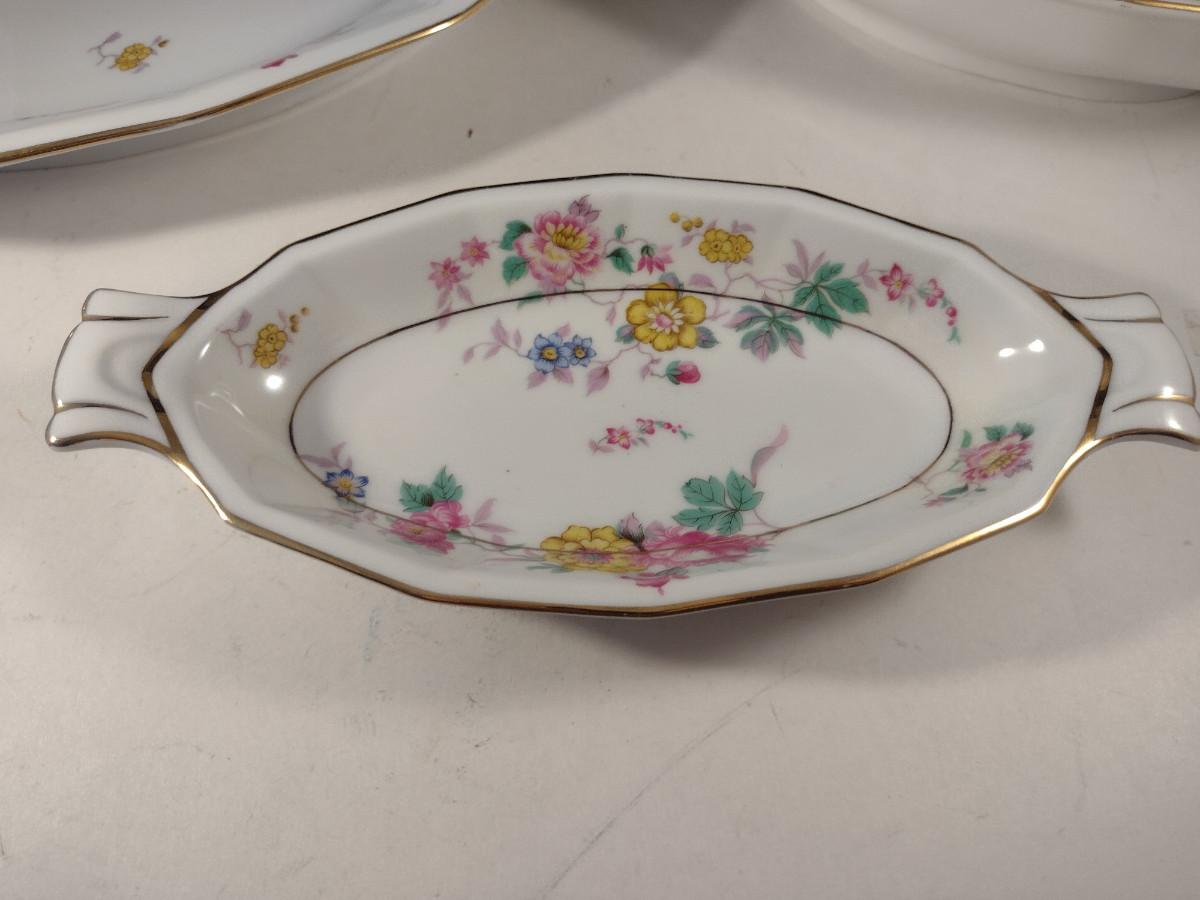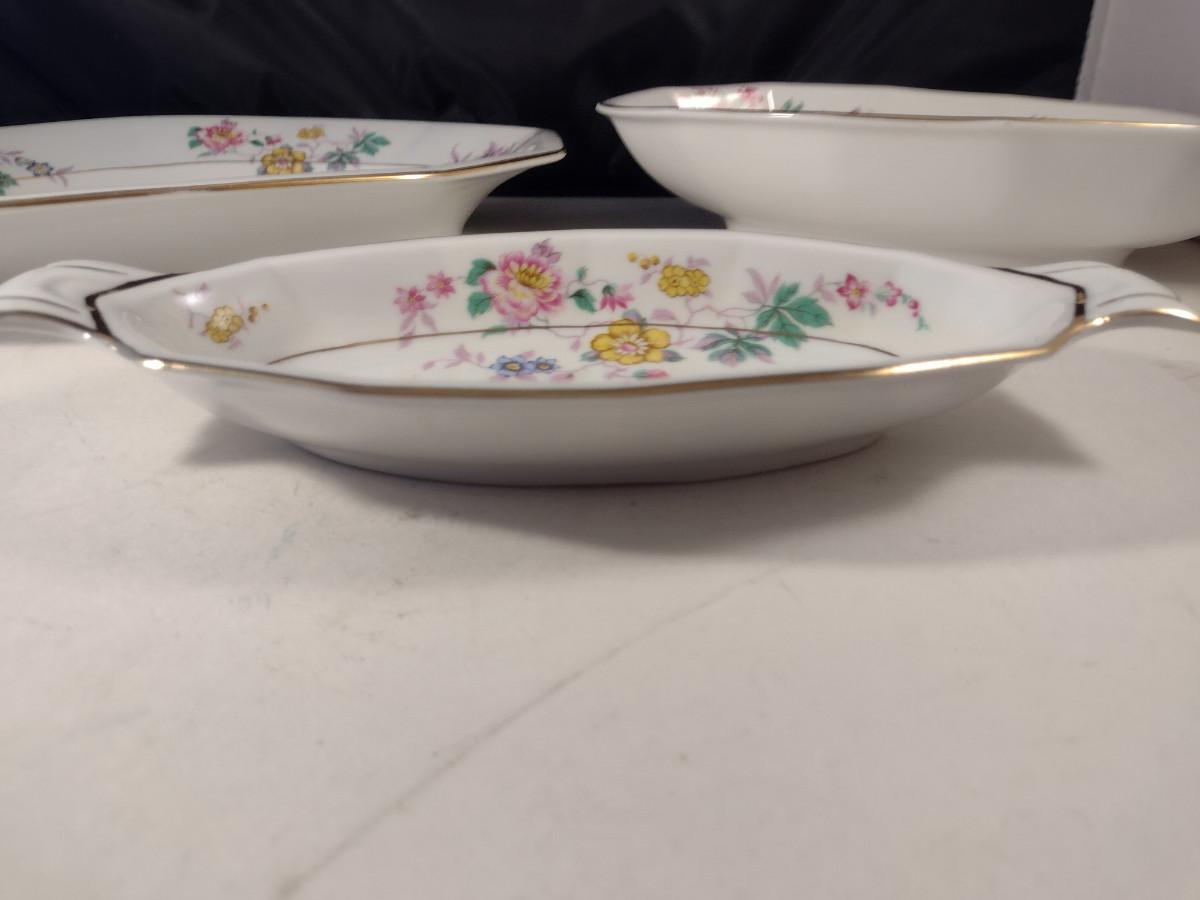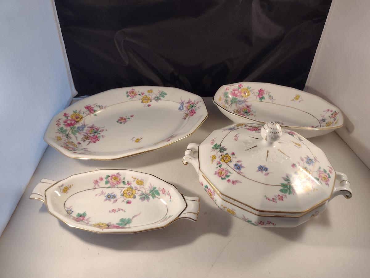 Crown Imperial Czechoslovakia Serving Pieces. Oval bowl, oval bowl with handles, platter, and round covered vegetable bowl.