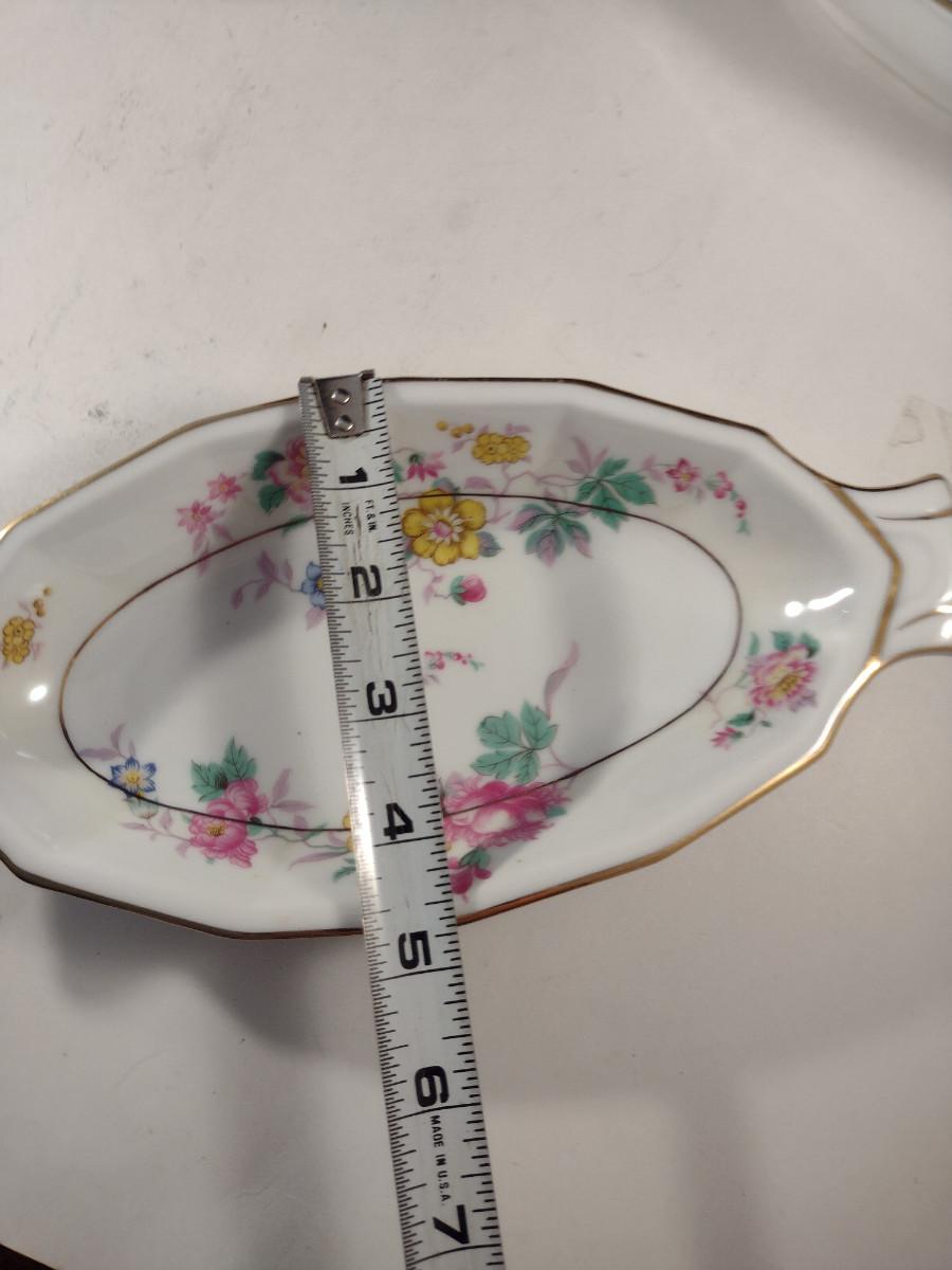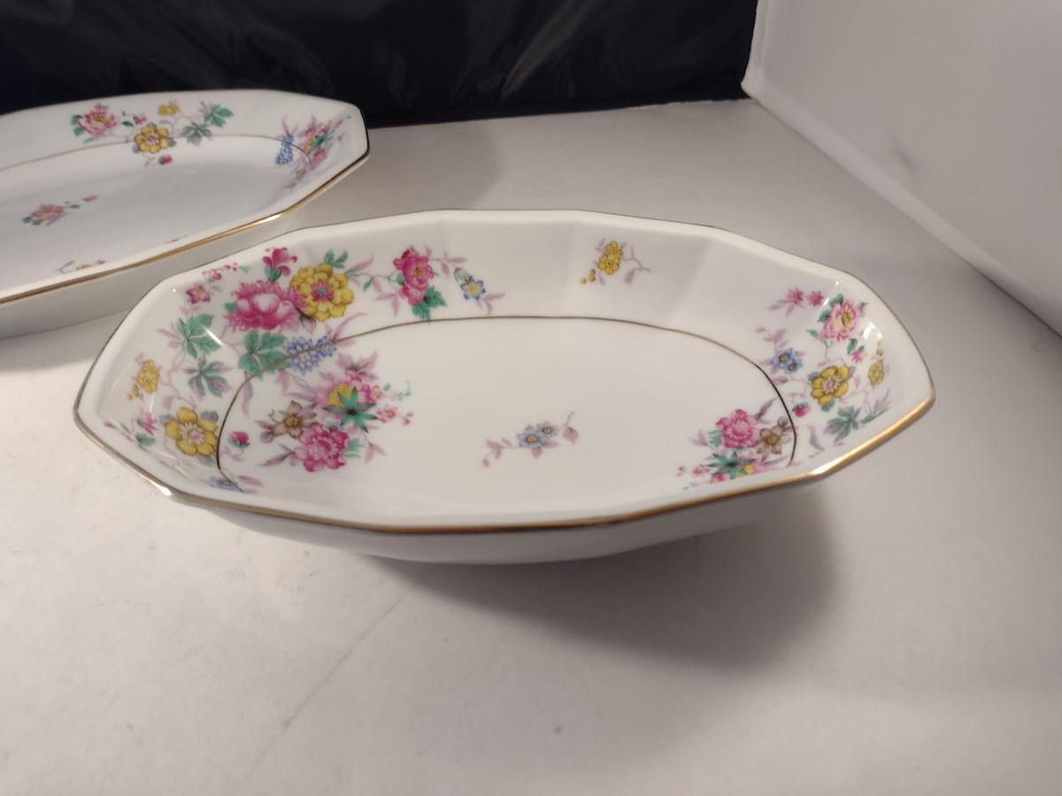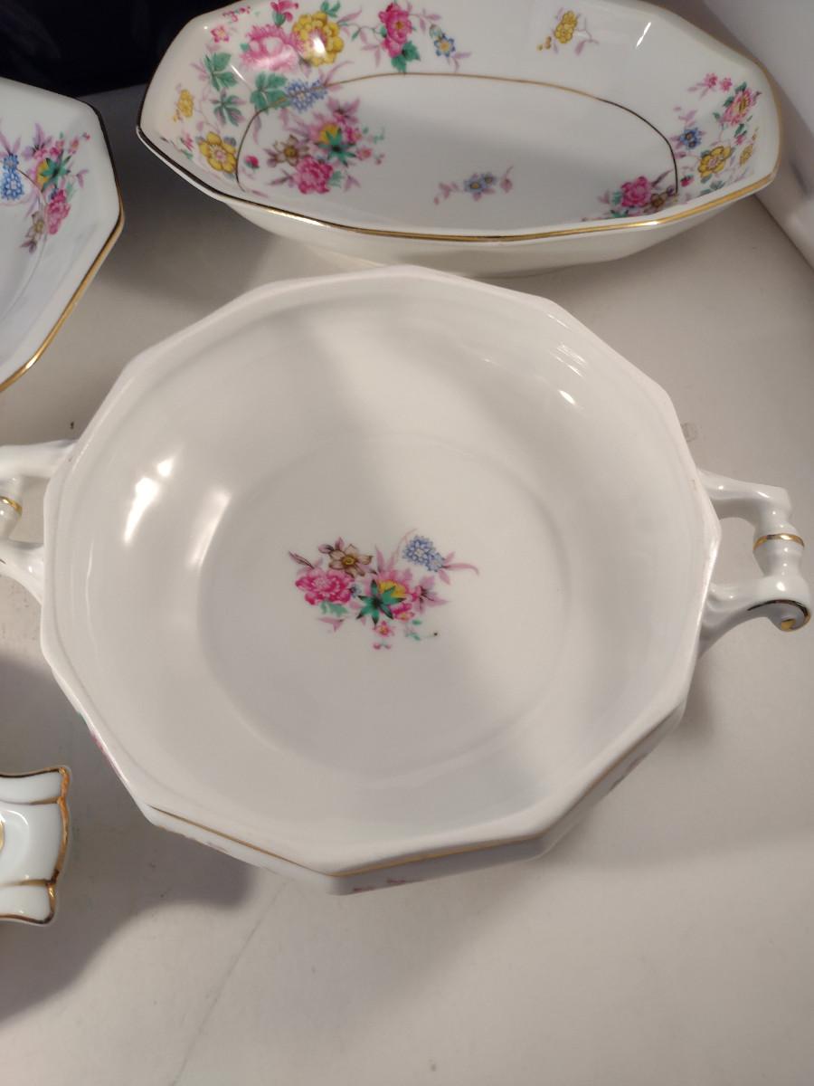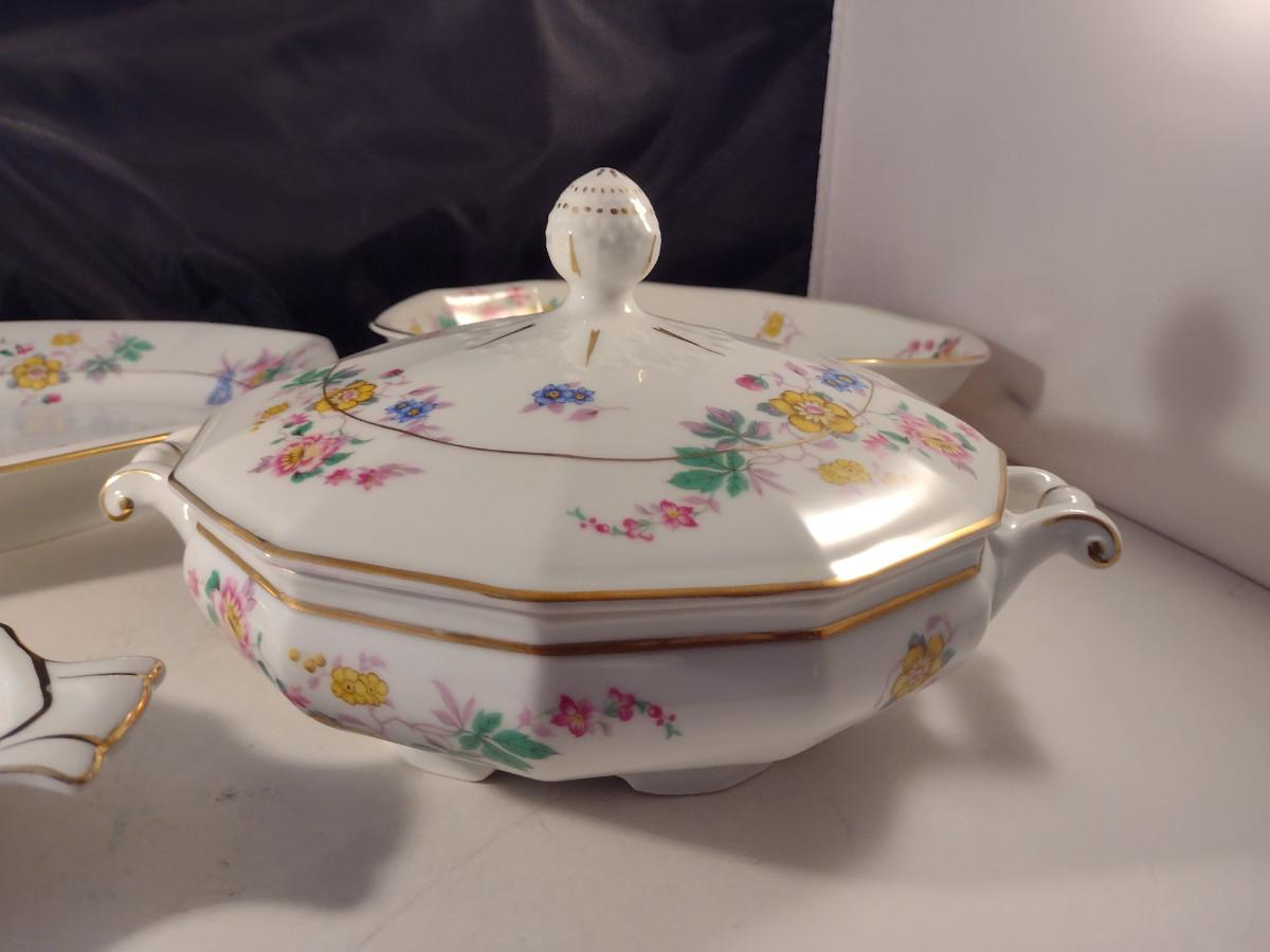 Crown Imperial Czechoslovakia Serving Pieces. Oval bowl, oval bowl with handles, platter, and round covered vegetable bowl.