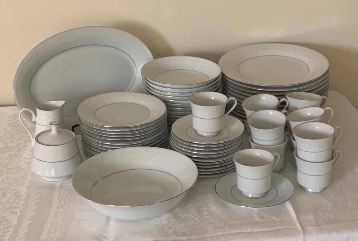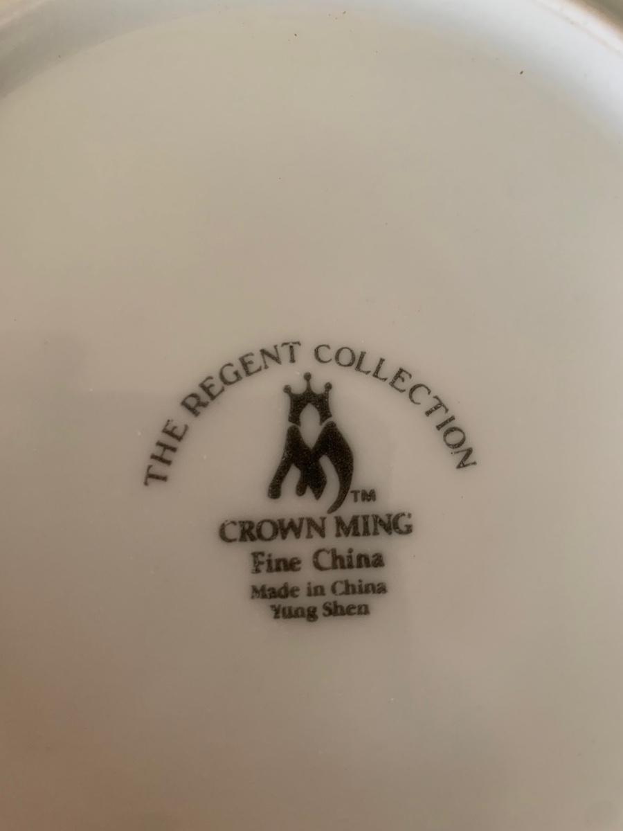The Regent Collection -- Crown Ming China set 52 piece service for 12: Dinner plates/Salad Plates/Soup Bowls/Cups & Saucers. One each creamer, sugar, serving bowl, large oval platter