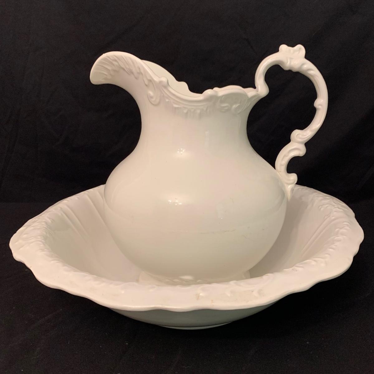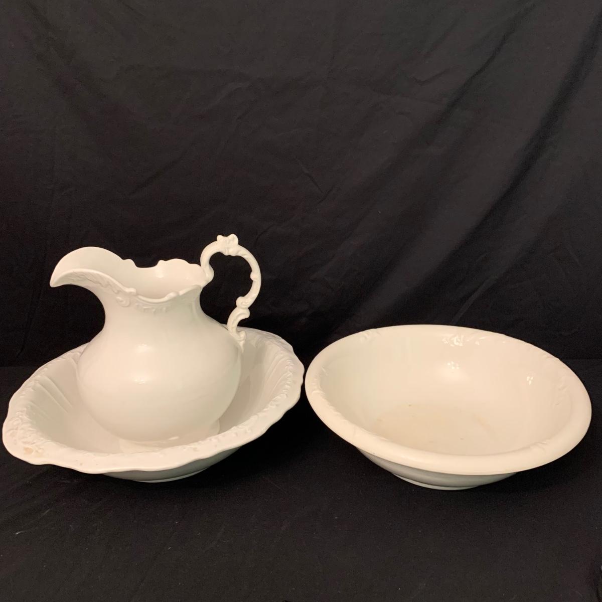 Vintage Crown Pottery Co. Porcelain Pitcher w/ Wash Basins (H-HS)