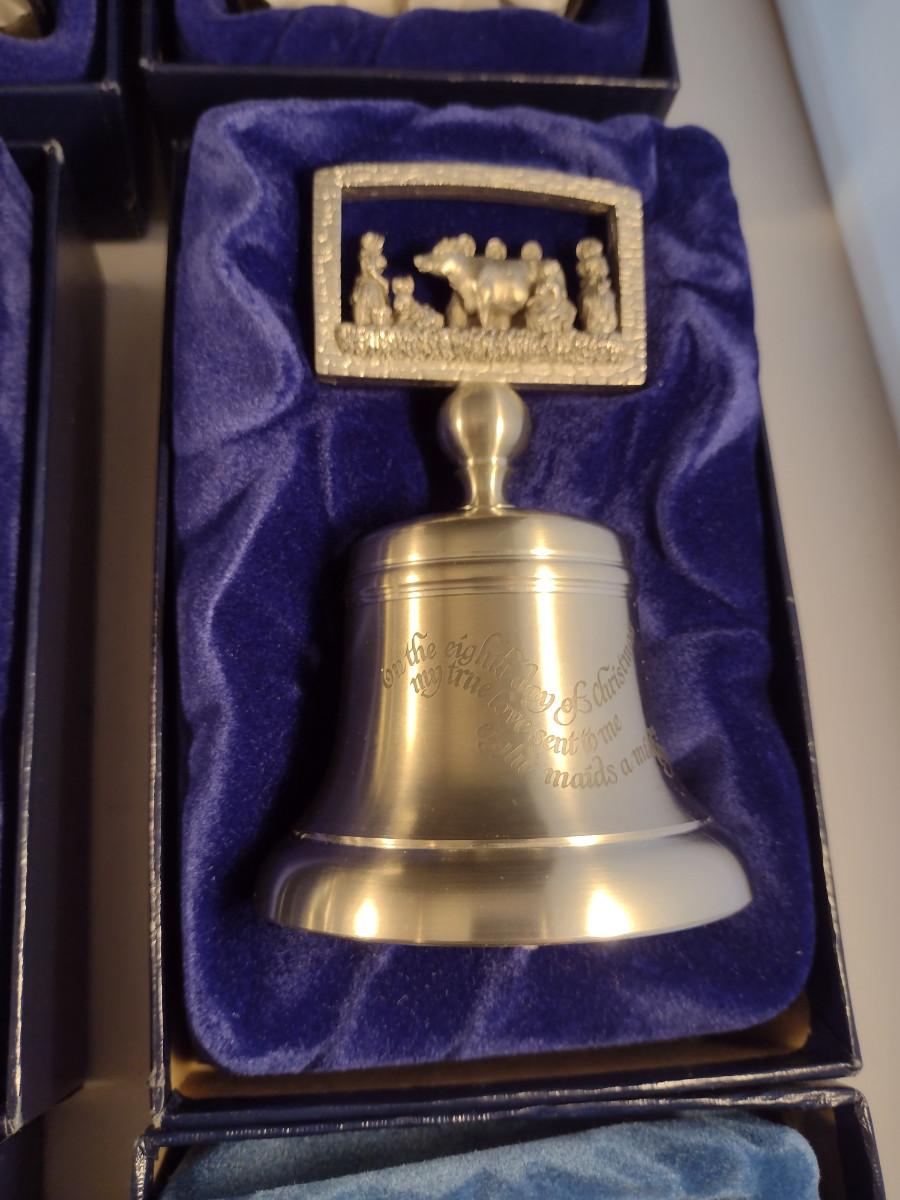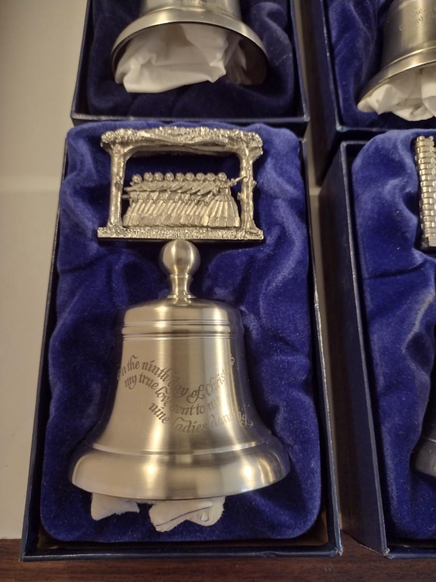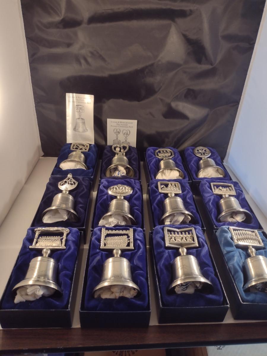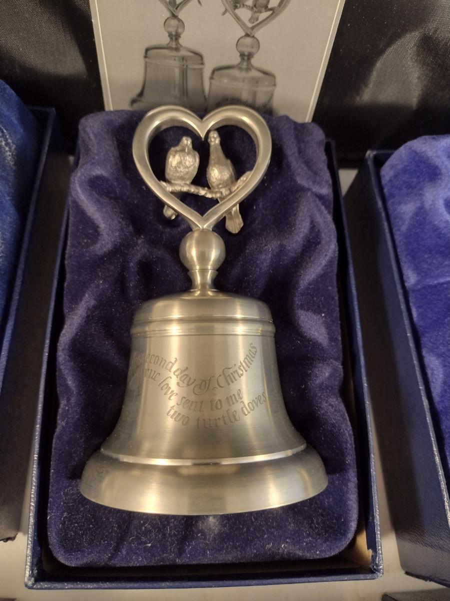 Crown & Rose Pewter 12 Days of Christmas Bells- Complete Set with Boxes