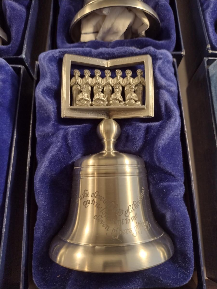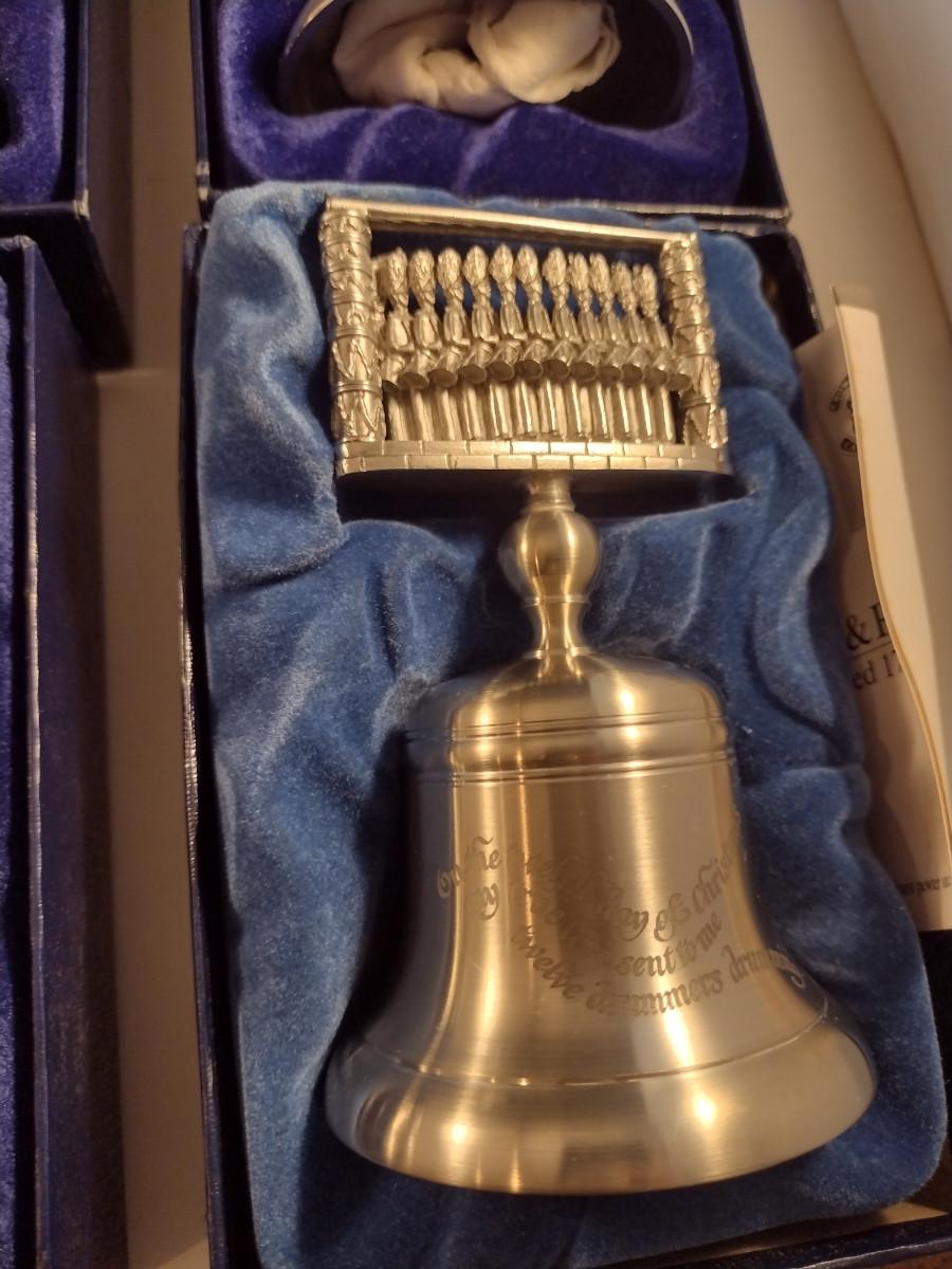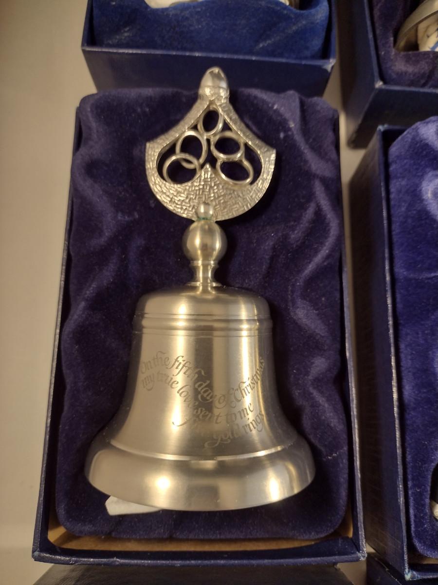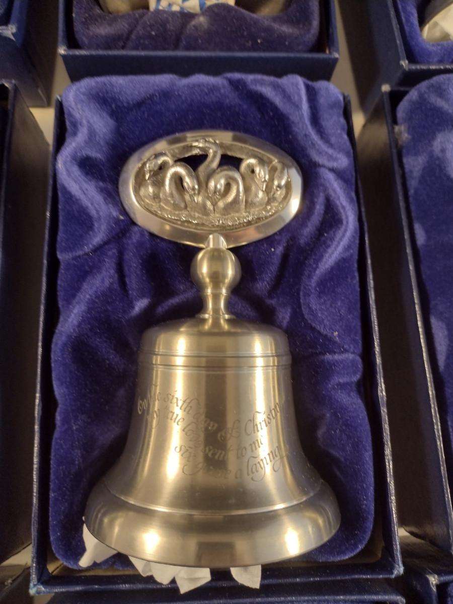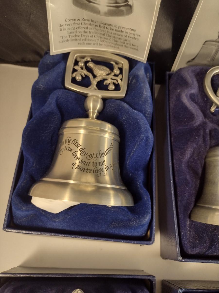Crown & Rose Pewter 12 Days of Christmas Bells- Complete Set with Boxes