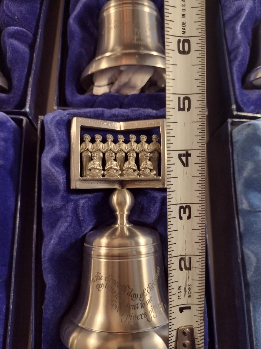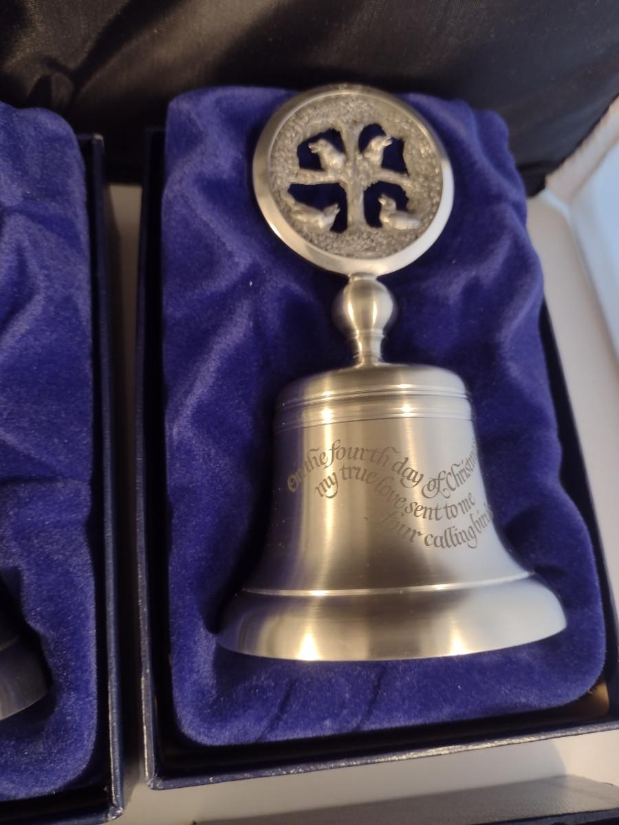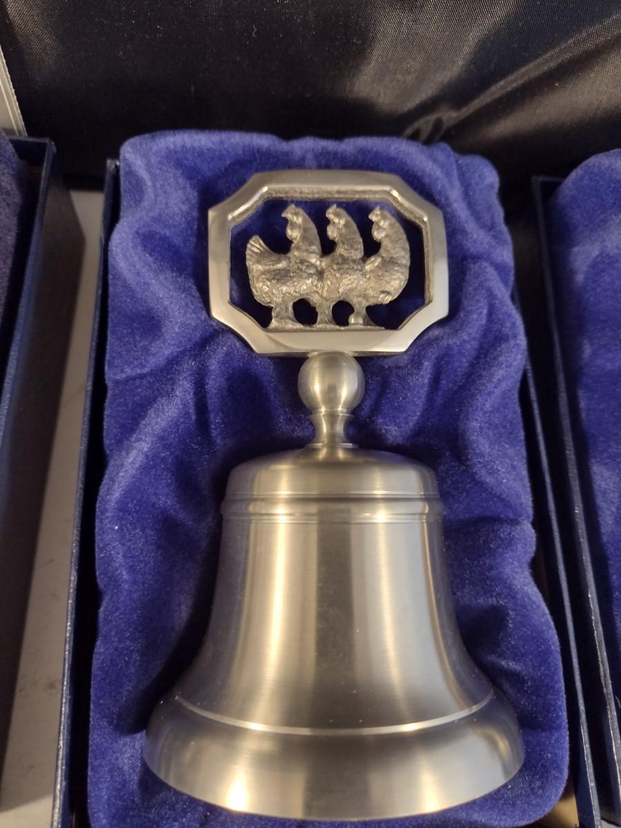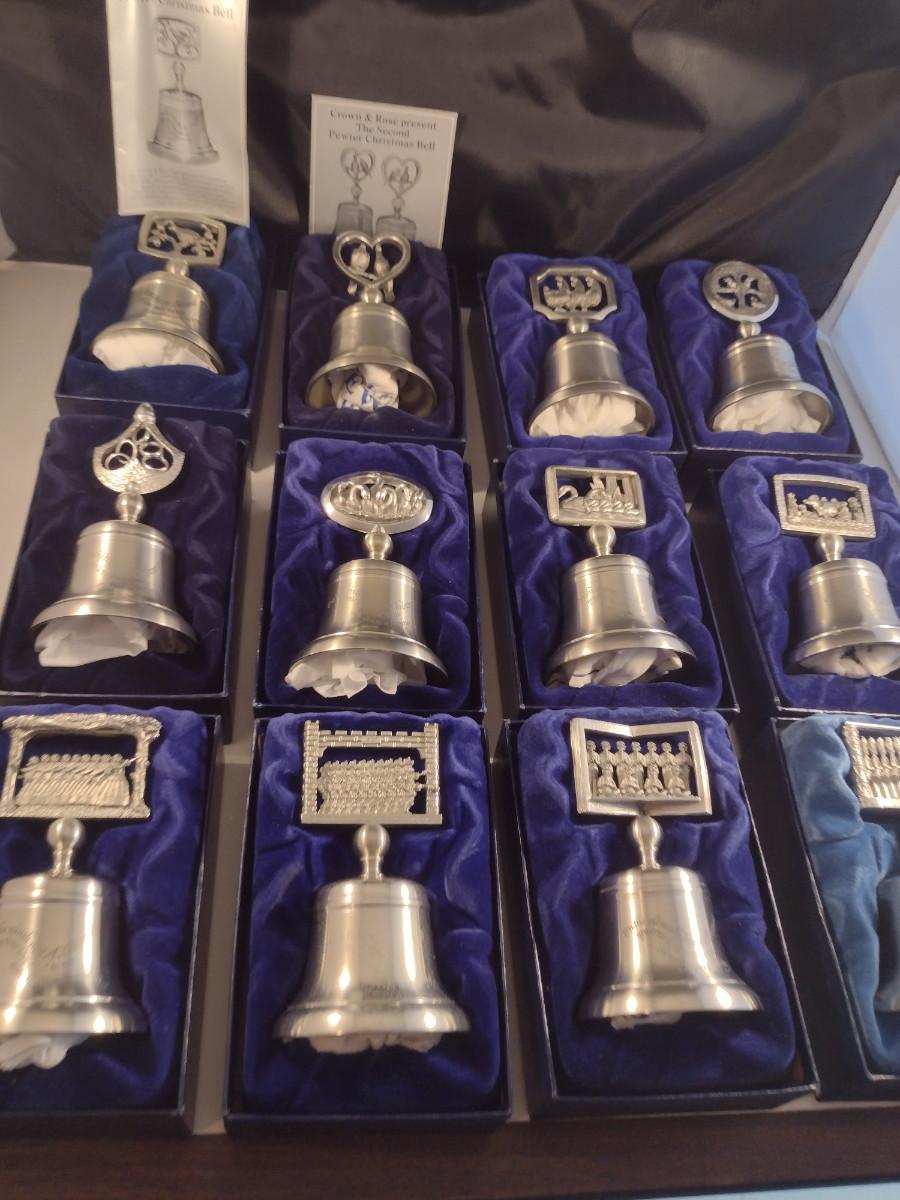 Crown & Rose Pewter 12 Days of Christmas Bells- Complete Set with Boxes