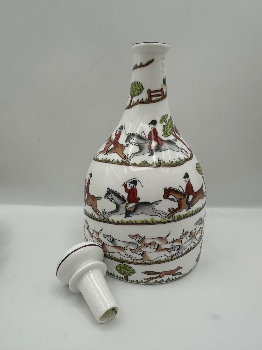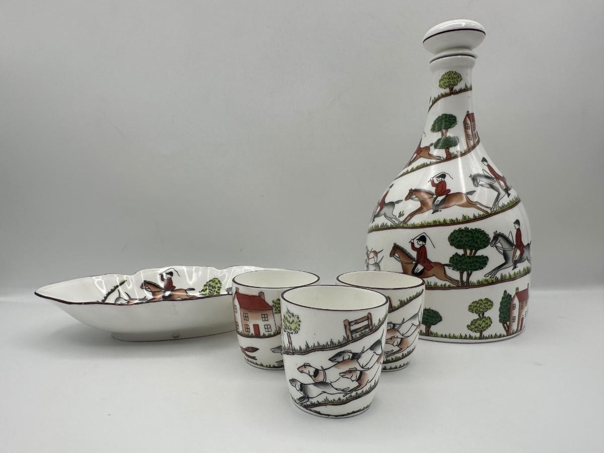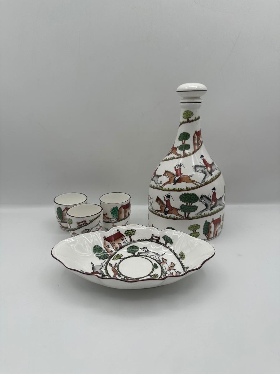 Crown Staffordshire Hunting Scene Bone China Decanter Set, England, 5 Pieces