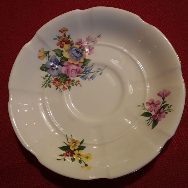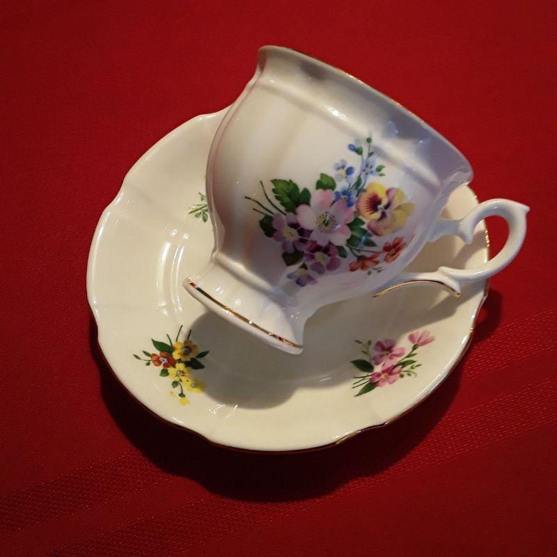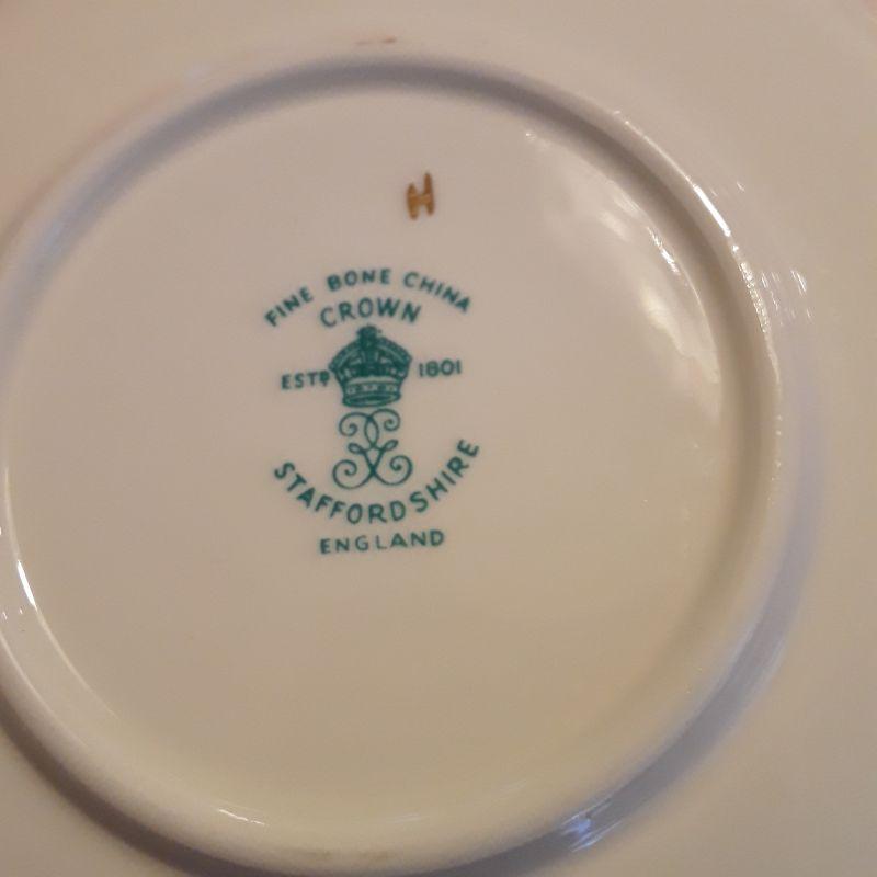 Crown Staffordshire Tea cup and saucer - high footed teacup with gold trim no chips or bites