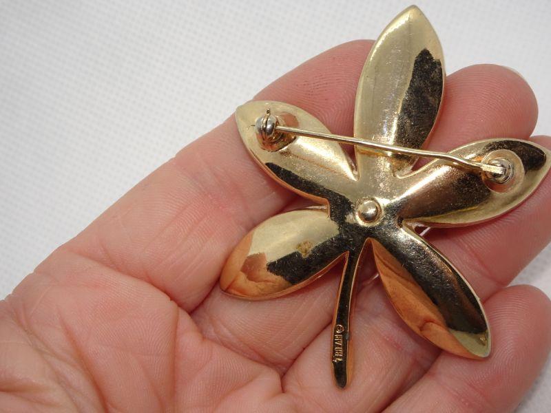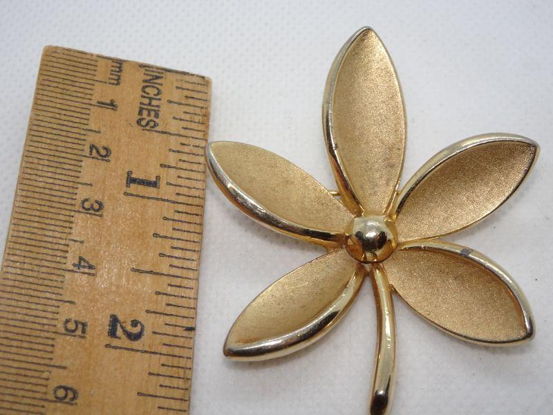 Gold Tone Star Pattern Flower Brooch, Signed Trifari